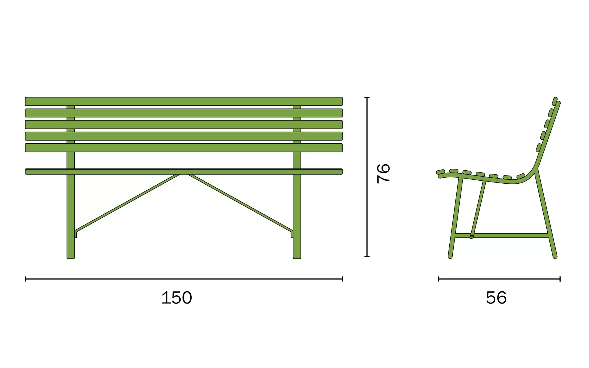 GALLIPOLI 150×60 Ławka ogrodowa ze stali – ivory / antracyt / oliwkowa zieleń