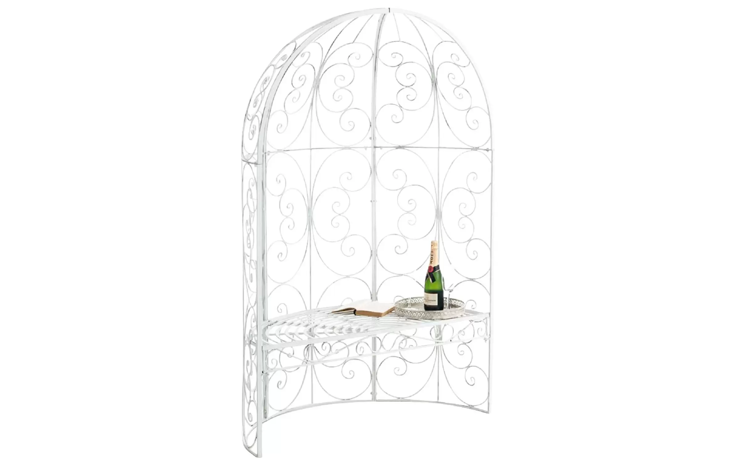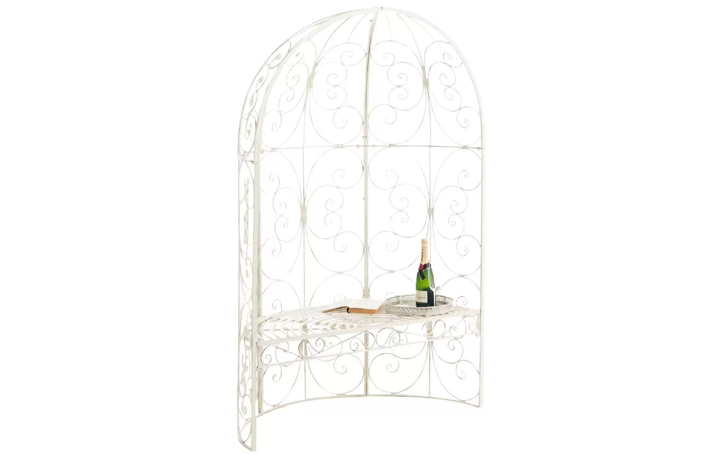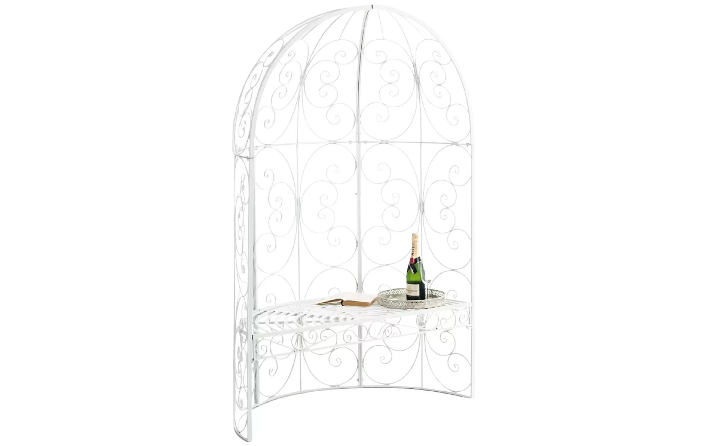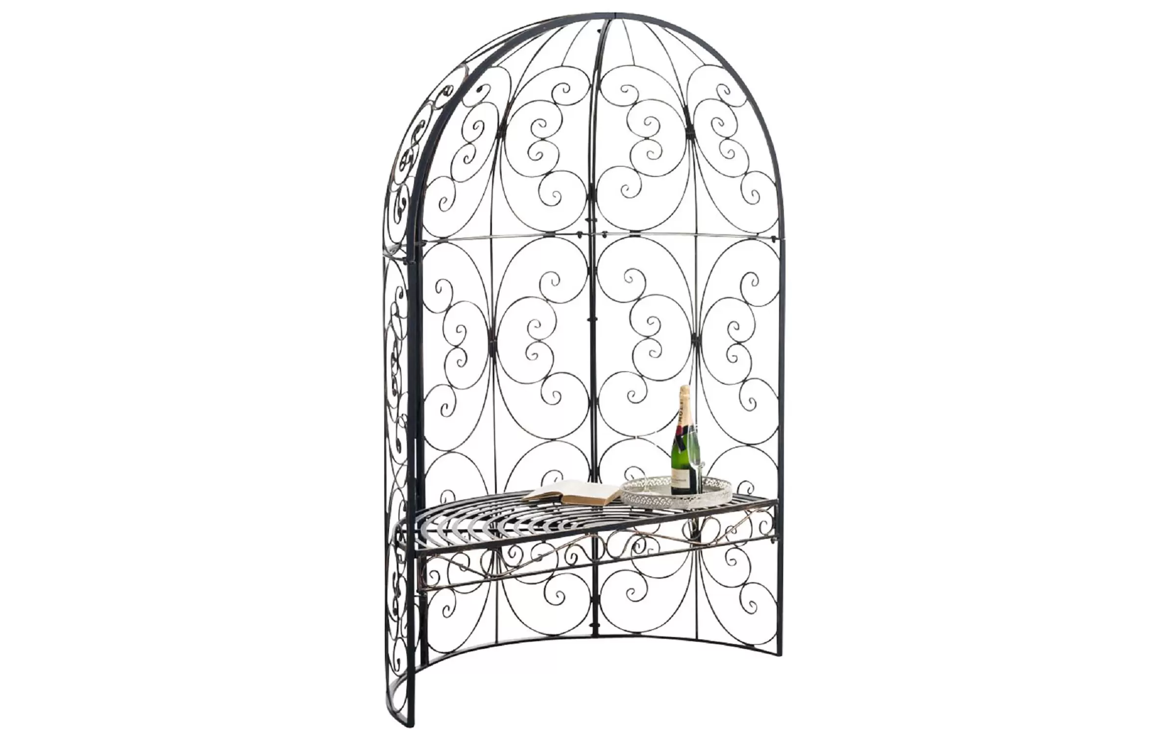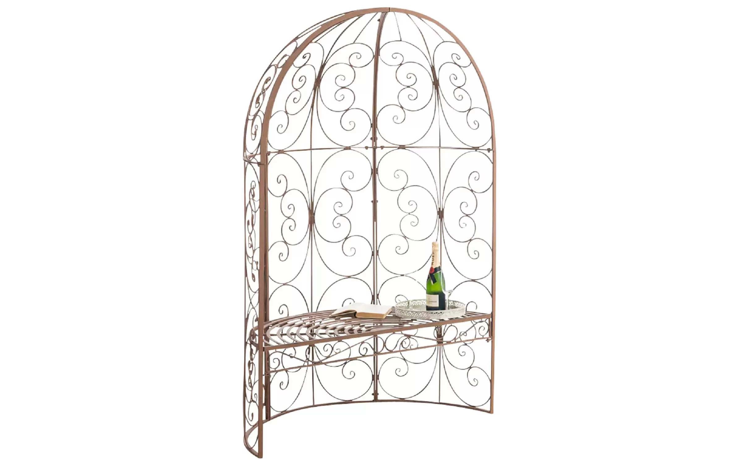 Elementy konstrukcyjne oraz zdobienia wykonane z ręcznie giętych rurek stalowych. Całość malowana proszkowo - gwarancja trwałości powłoki bez względu na warunki atmosferyczne. Produkt jest oryginalnie zapakowany i łatwy w montażu.