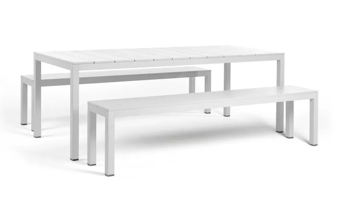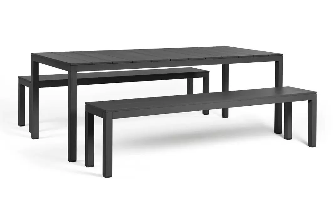 RIO ALU Ławka to solidna i elegancka ławka ogrodowa włoskiej marki Nardi, wykonana z aluminium malowanego proszkowo. Minimalistyczna forma oraz charakterystyczne listwowe siedzisko nadają jej nowoczesny wygląd, a jednocześnie zapewniają wygodę i trwałość.