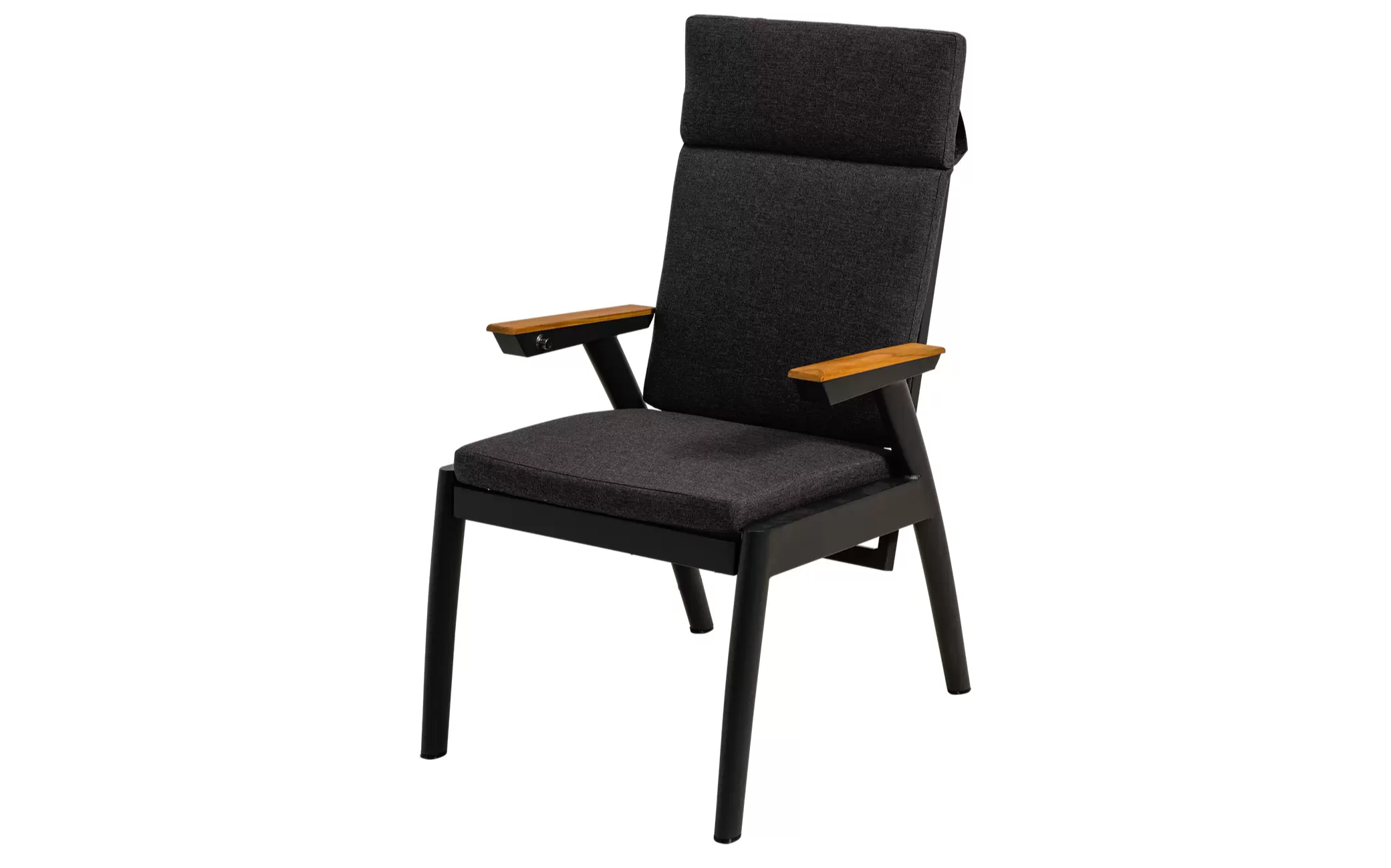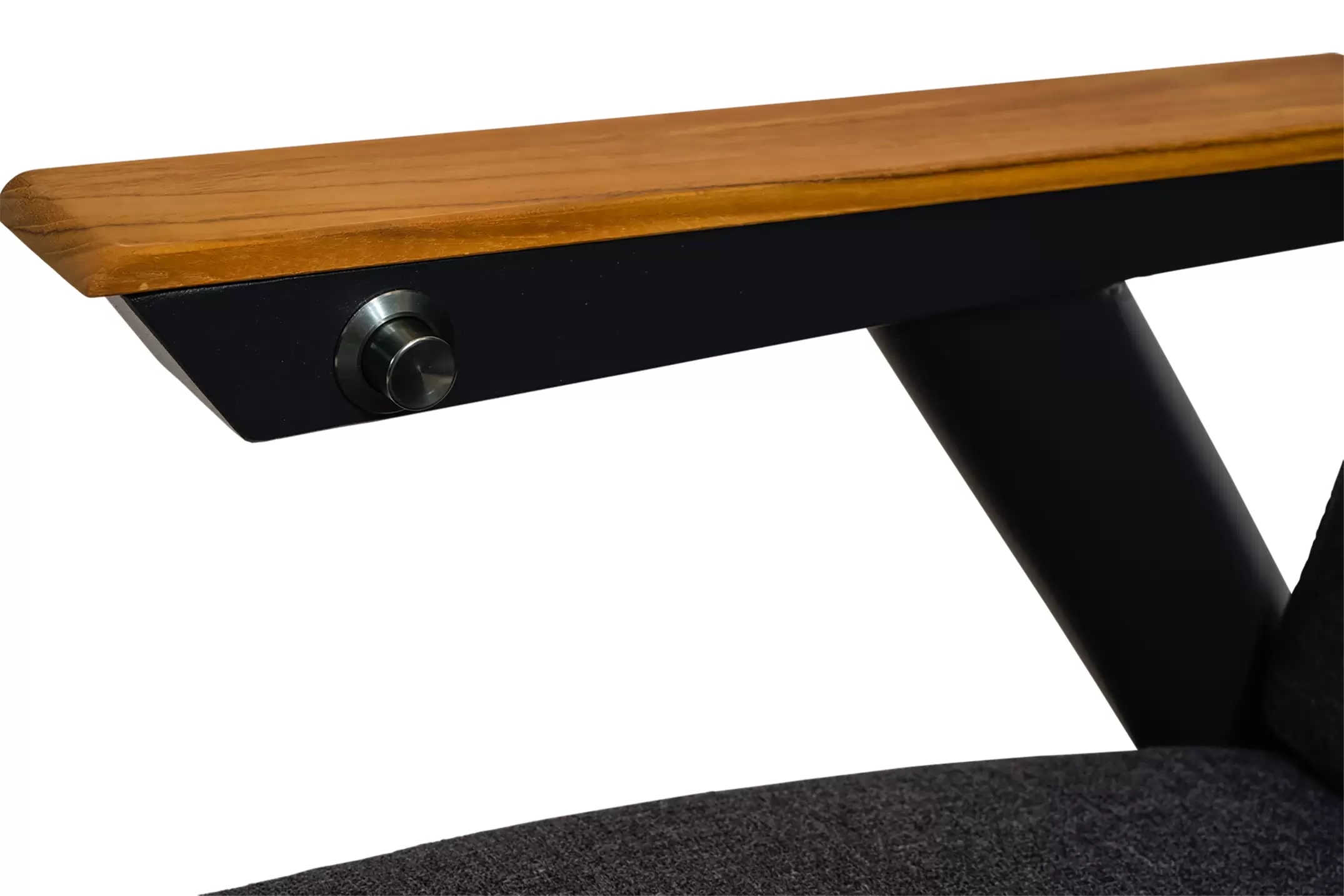 Aluminiowa konstrukcja malowana proszkowo w kolorze ciemnoszarym. Pochylanie oparć bezstopniowe za pomocą siłownika gazowego.
