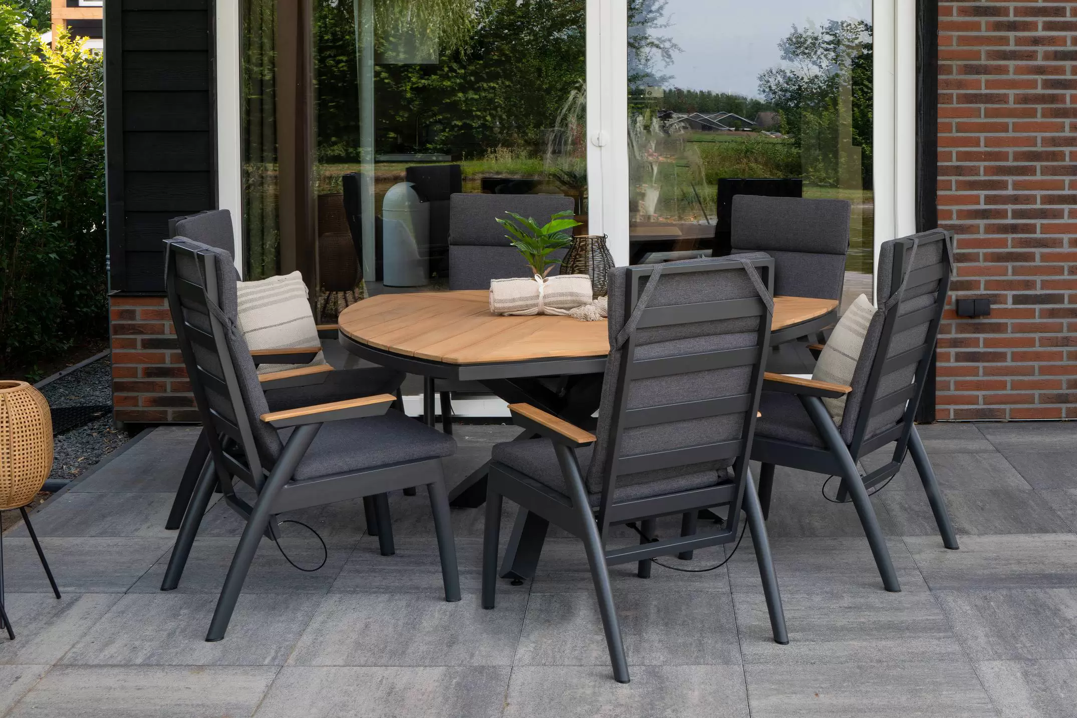 Aluminiowe krzesło ogrodowe stołowe jest nie tylko praktyczne, ale i piękne w swej prostocie. Zostało wykonane z najwyższej jakości aluminium, co zapewnia mu trwałość i odporność na warunki atmosferyczne. Wysokie oparcie i poduszki z poszewkami z olefiny gwarantują wygodę i komfort podczas wypoczynku na świeżym powietrzu.