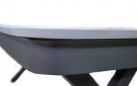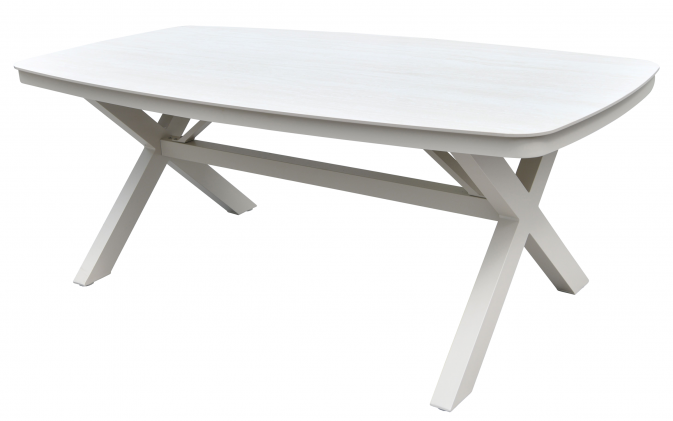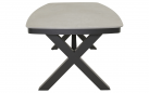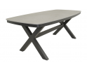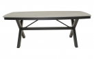 Solidna konstrukcja stołu opiera się na ramie wykonanej z aluminium malowanego proszkowo, co zapewnia jej całkowitą odporność na rdzę, wilgoć i ekstremalne warunki atmosferyczne. Charakterystyczna, krzyżowa forma nóg nie tylko gwarantuje wyjątkową stabilność, ale również akcentuje surowy, nowoczesny charakter mebla.