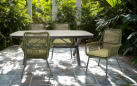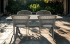 Jego prostokątny format o lekko zaokrąglonym kształcie  został zaprojektowany z myślą o wspólnych posiłkach i spotkaniach w większym gronie. Z optymalną wysokością 75 cm i prześwitem pod blatem wynoszącym 72 cm, zapewnia komfort siedzenia i swobodę dla nóg. Stół DAVOS doskonale sprawdza się nie tylko w ogrodzie i na tarasie, ale również jako stylowy akcent w wewnętrznej jadalni, natychmiast podnosząc prestiż każdej przestrzeni.