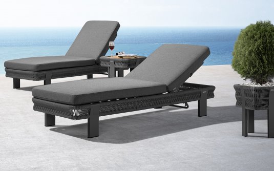 2x OTAVIO Leżak ogrodowy z materacem grafitowy