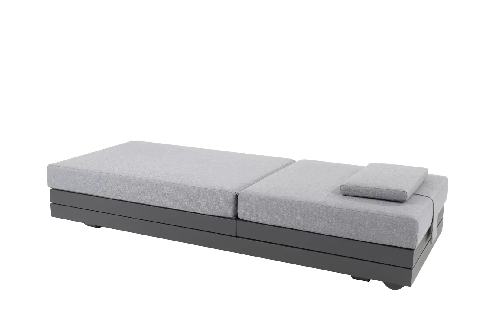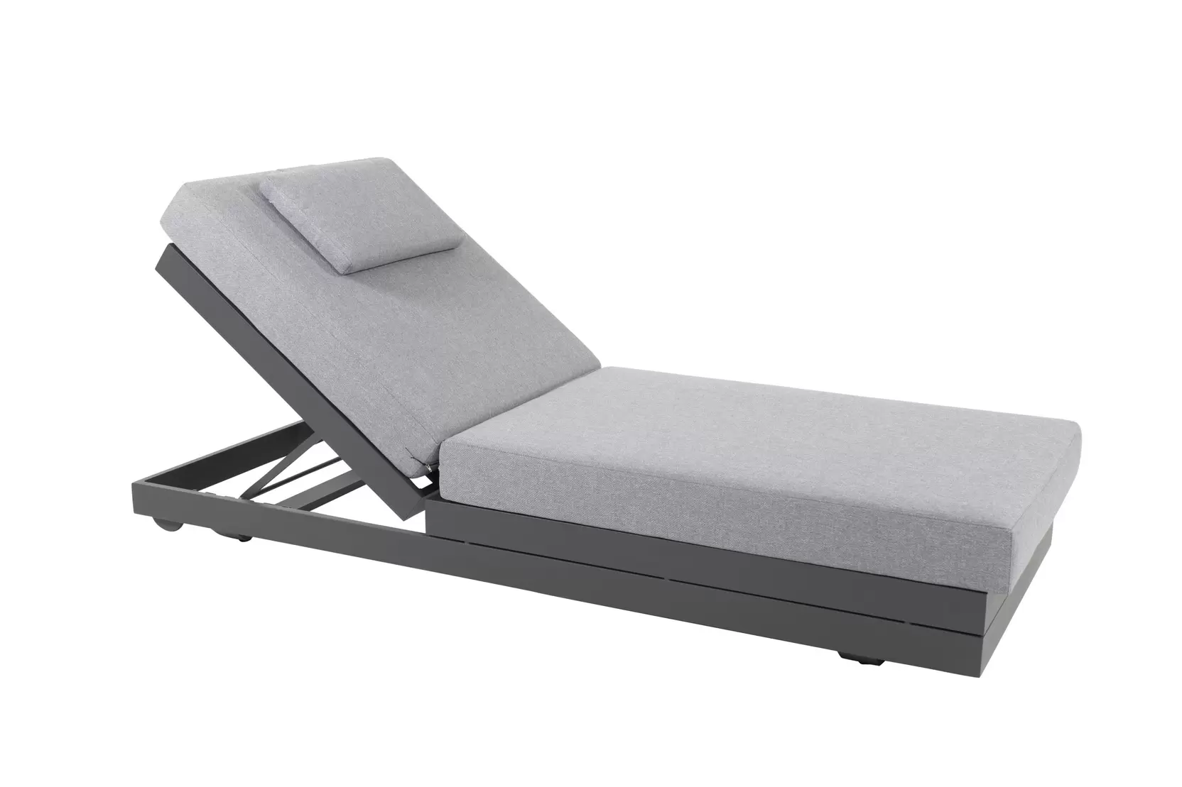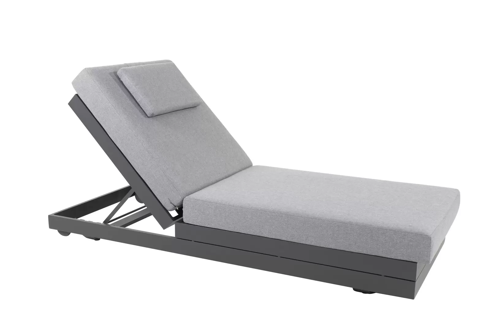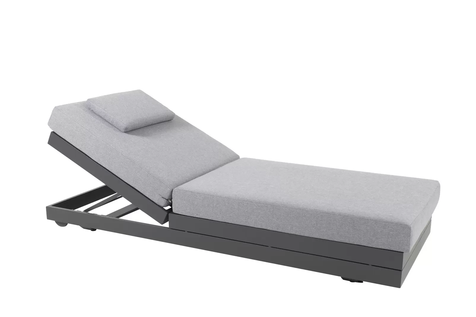 Leżak Cali od Taste 4SO to produkt, który pozwala optymalnie się zrelaksować. Oparcie leżaka można ustawić w pięciu różnych pozycjach, z których jedna jest całkowicie płaska, dzięki czemu można również położyć się na brzuchu. Leżak Cali zawiera poduszkę i zagłówek, aby zapewnić Ci maksymalny komfort. Dzięki aluminiowej ramie doskonale nadaje się do przebywania na zewnątrz przez cały rok. Leżak Cali jest dostępny w kolorze antracytowym i białym. Na poduszkę do leżenia i zagłówek użyto tkaniny outdoorowej, dzięki czemu wytrzyma deszcz, ale też nie odbarwi się na słońcu.