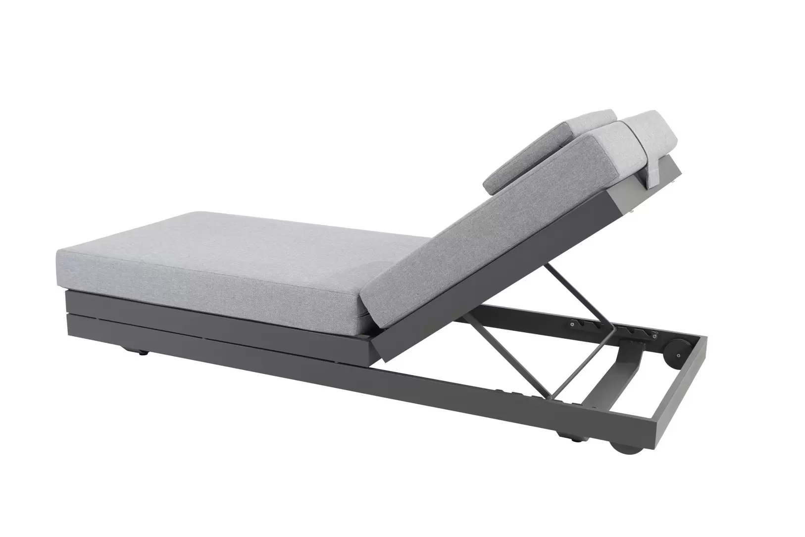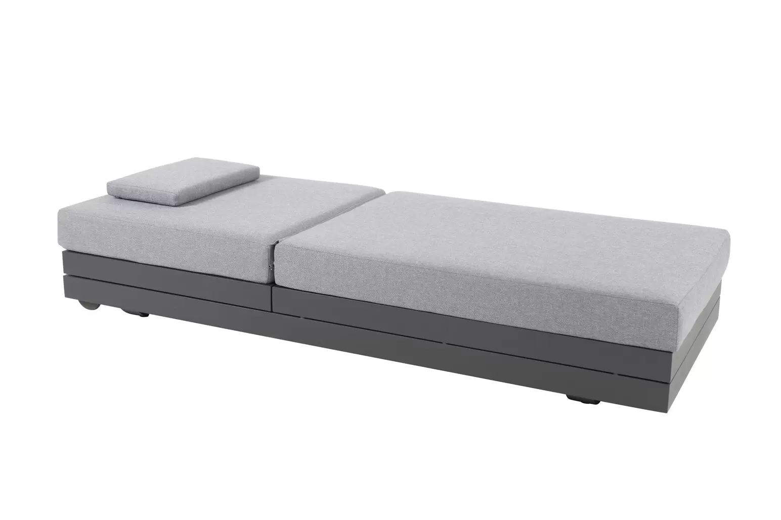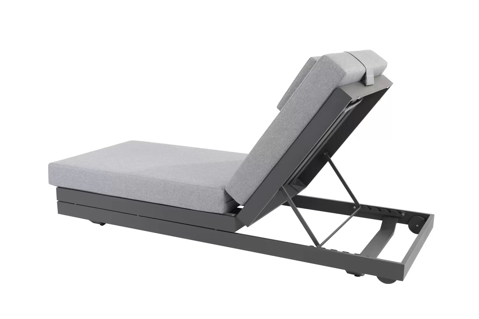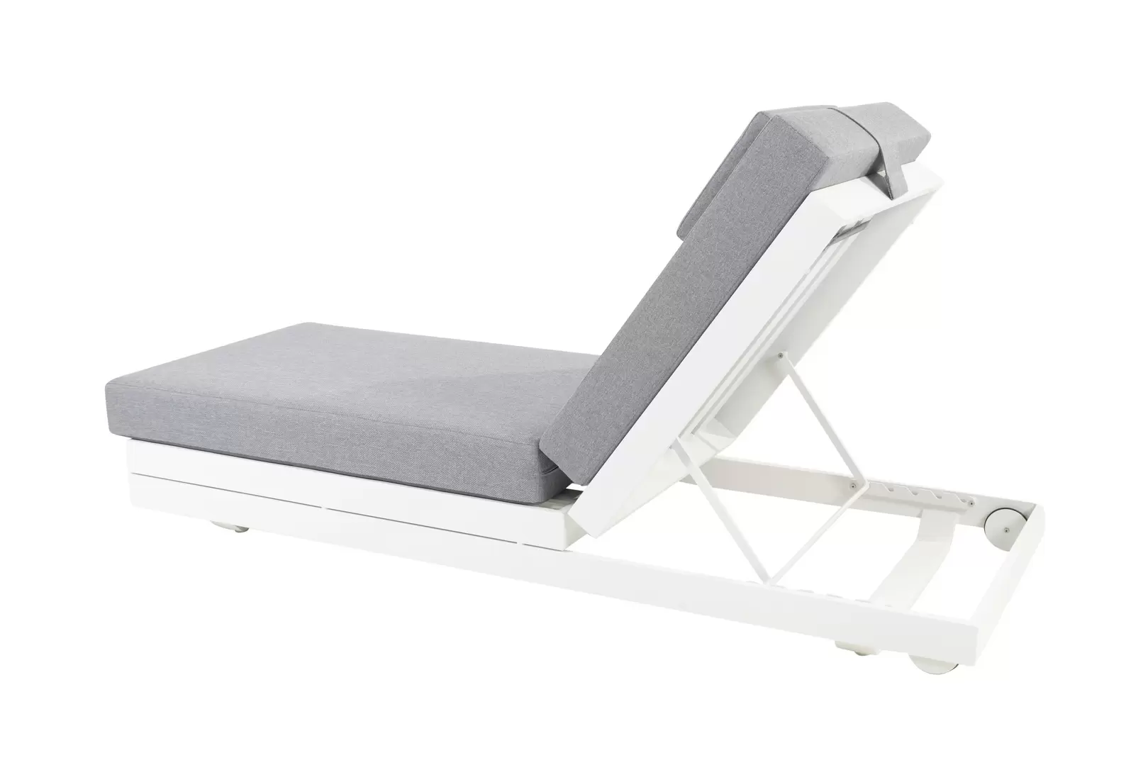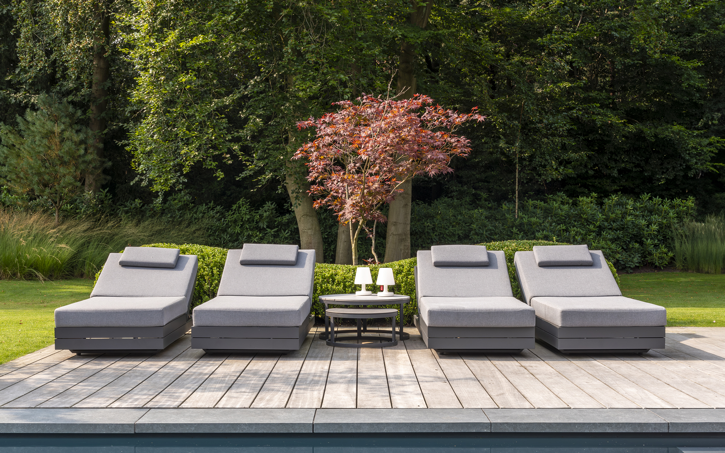 Leżak Cali od Taste 4SO to produkt, który pozwala optymalnie się zrelaksować. Oparcie leżaka można ustawić w pięciu różnych pozycjach, z których jedna jest całkowicie płaska, dzięki czemu można również położyć się na brzuchu. Leżak Cali zawiera poduszkę i zagłówek, aby zapewnić Ci maksymalny komfort. Dzięki aluminiowej ramie doskonale nadaje się do przebywania na zewnątrz przez cały rok. Leżak Cali jest dostępny w kolorze antracytowym i białym. Na poduszkę do leżenia i zagłówek użyto tkaniny outdoorowej, dzięki czemu wytrzyma deszcz, ale też nie odbarwi się na słońcu.
