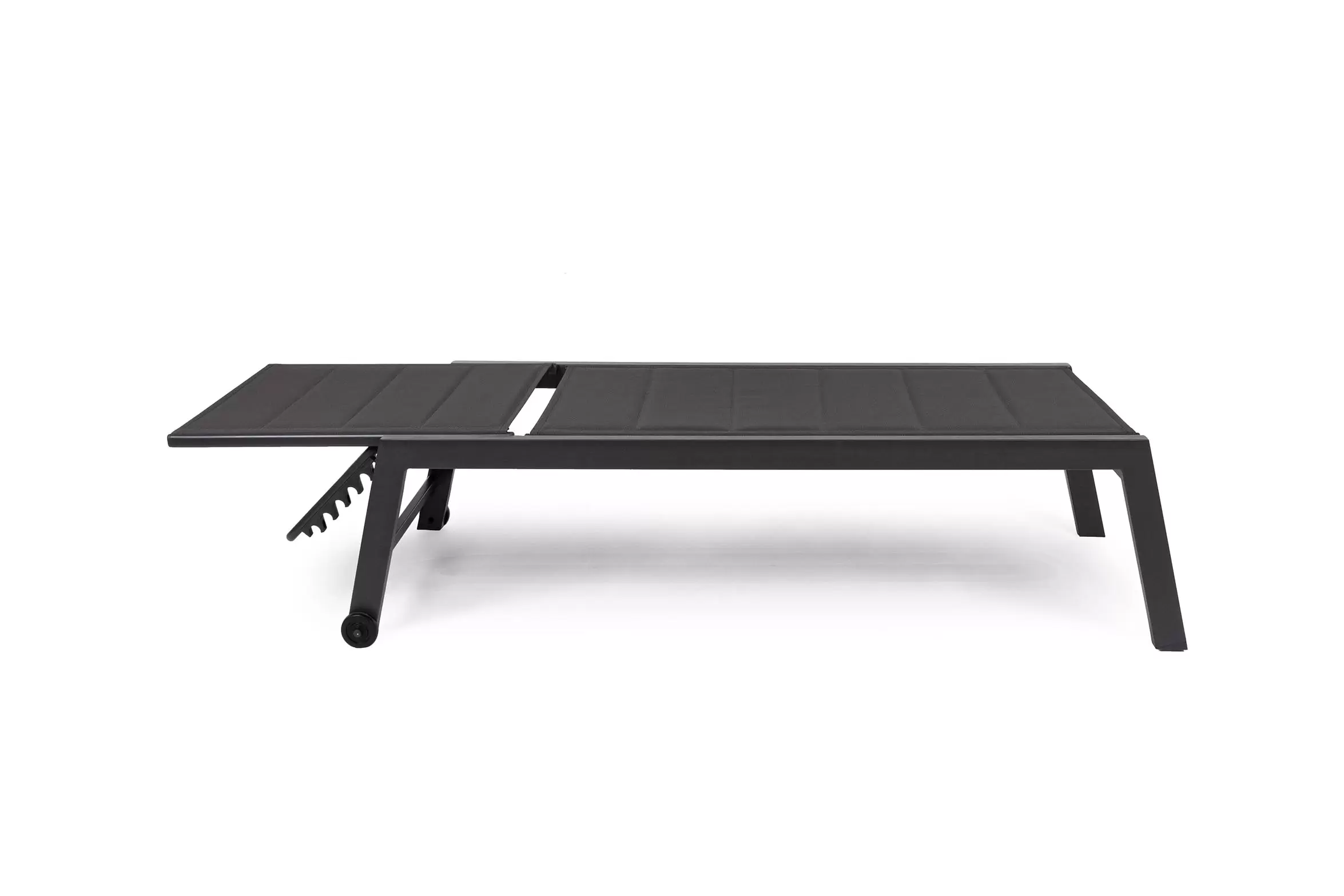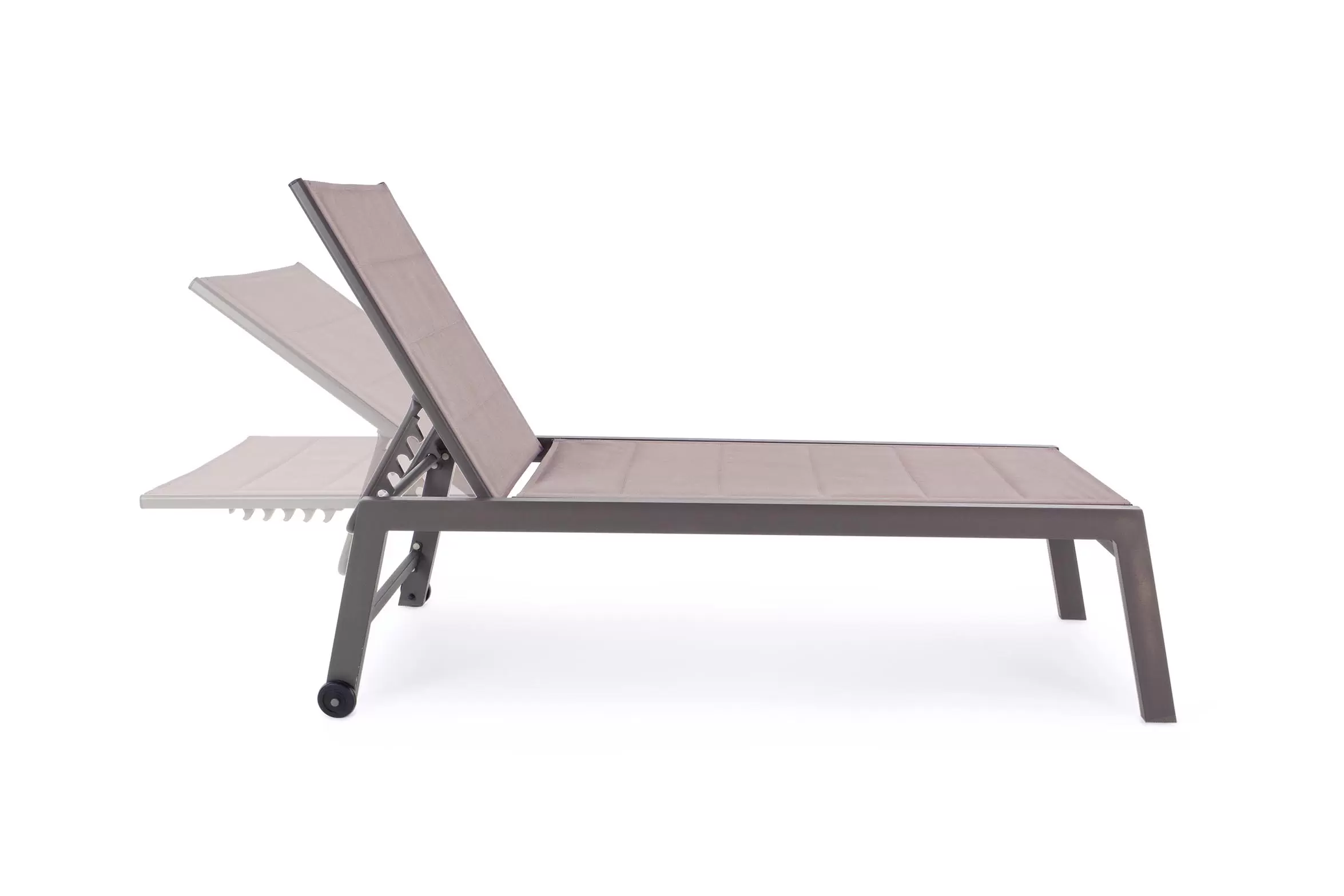 Lekki leżak ogrodowy wypoczynkowy o aluminiowej konstrukcji i malowanej proszkowo. Oparcie regulowane 5-stopnowo.
