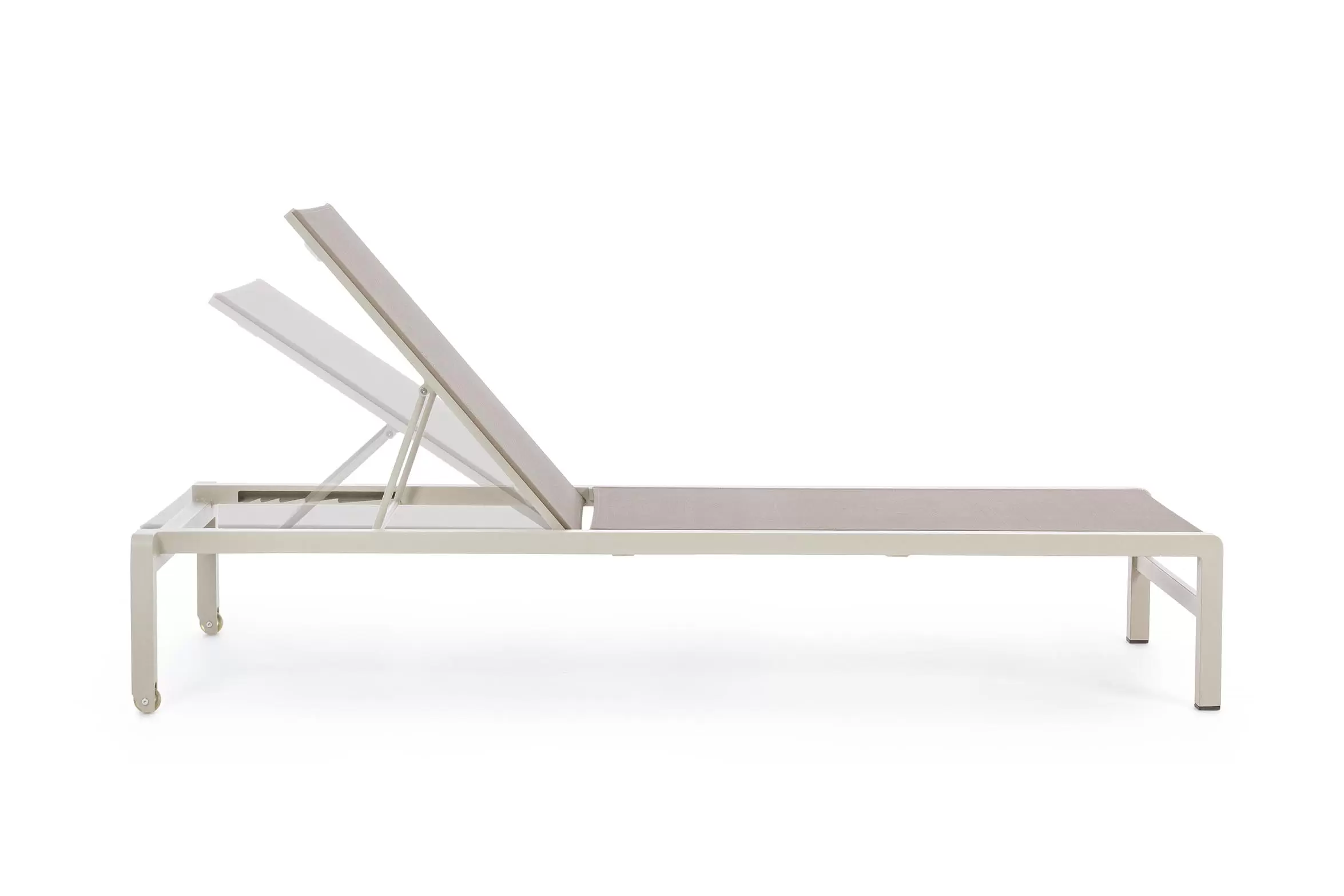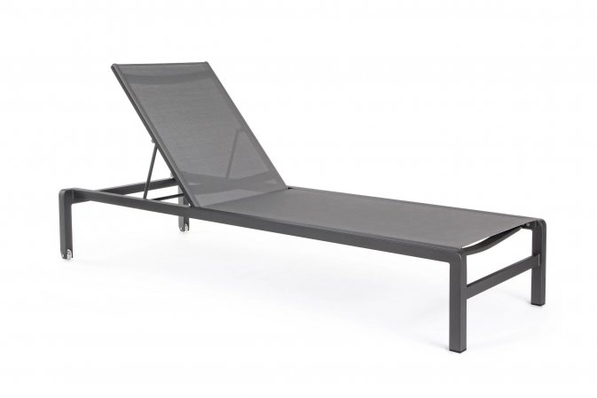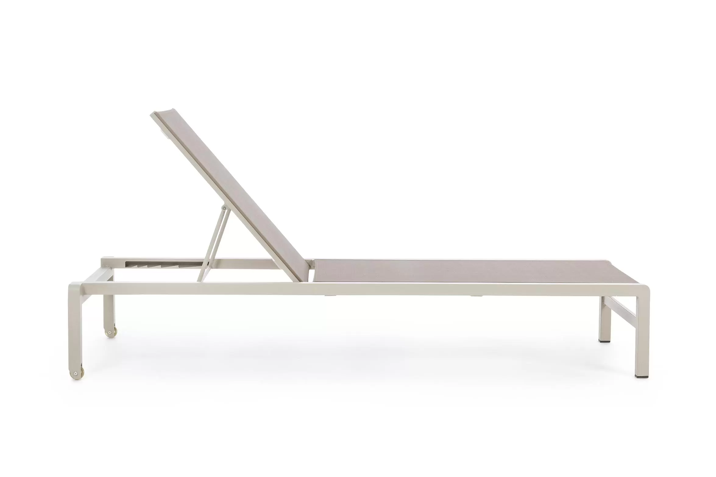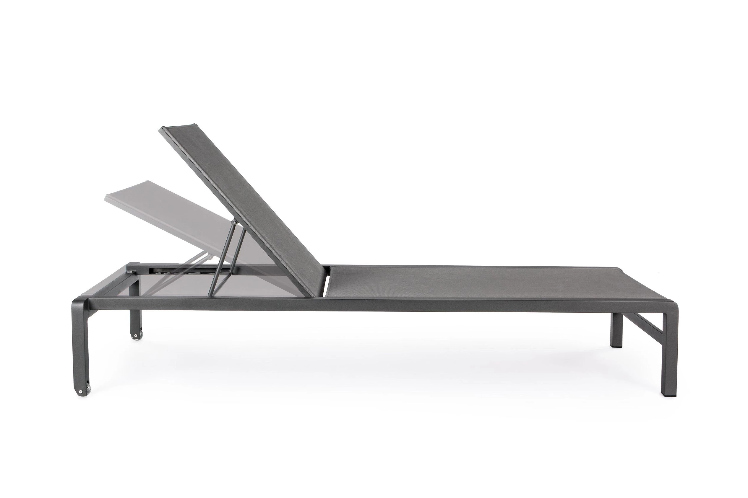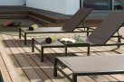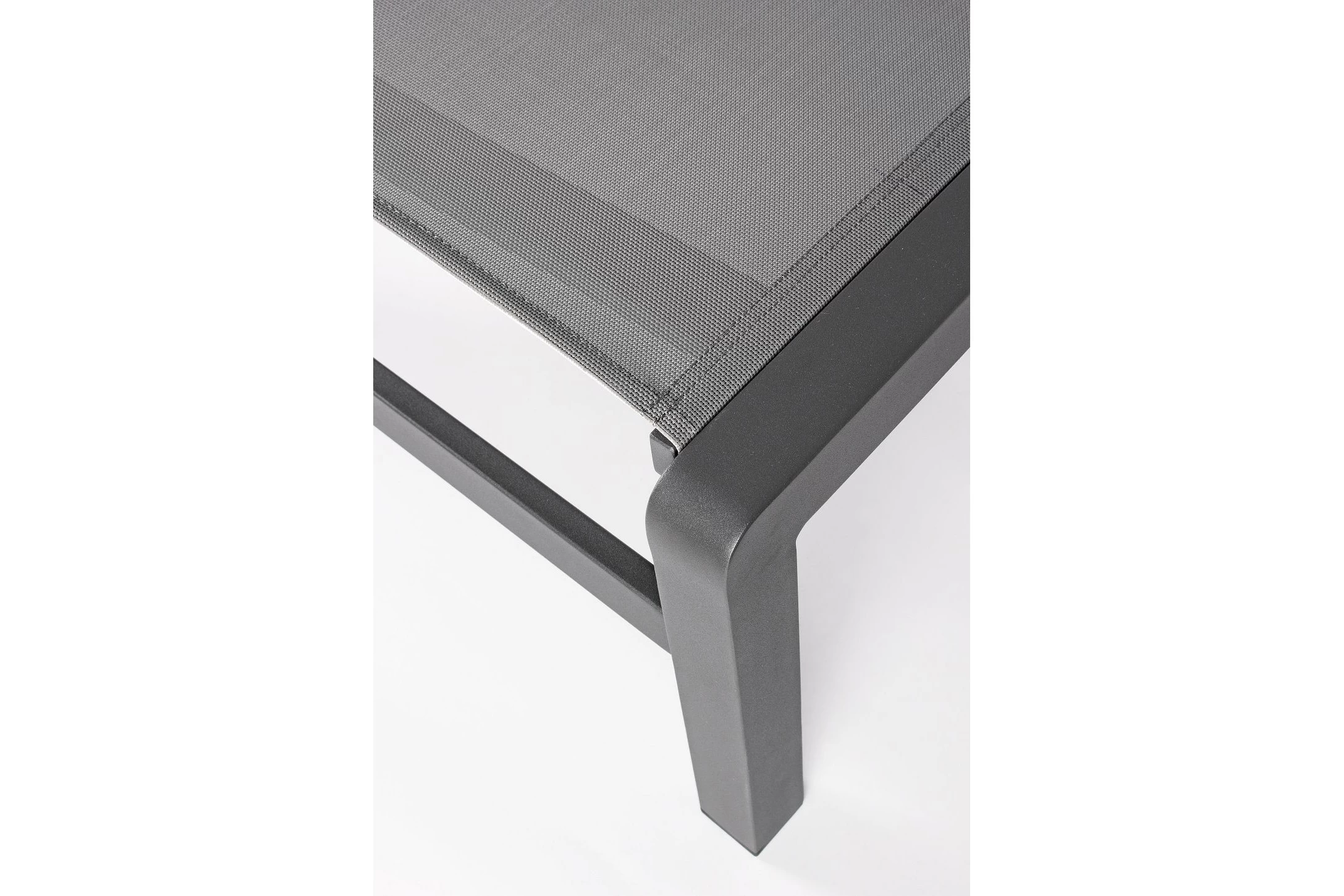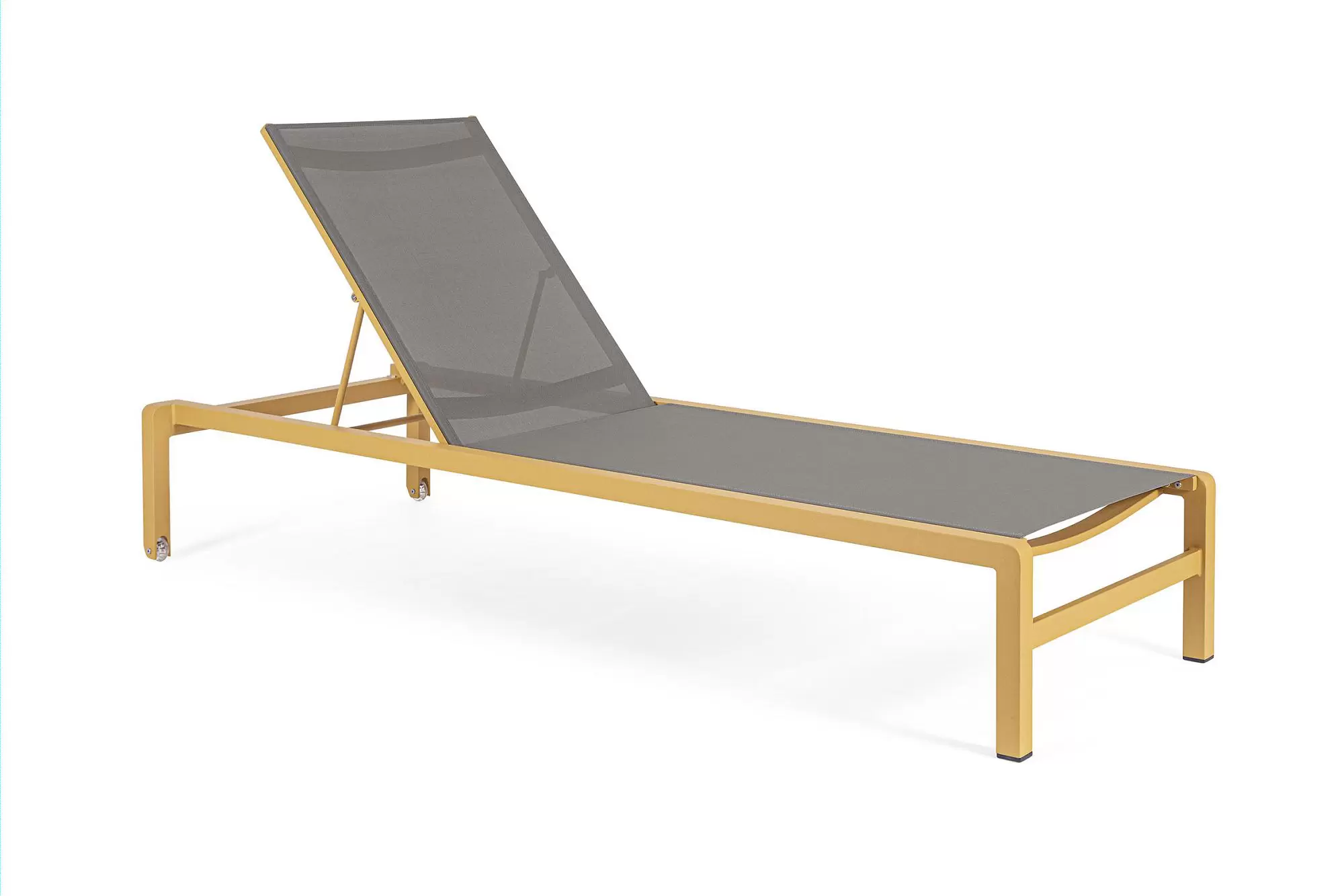 Leżak na taras aluminiowy do nowoczesnego tarasu. Siedzisko z tekstyliny. Oparcie z 6 stopniami pochylenia. Można sztaplować.