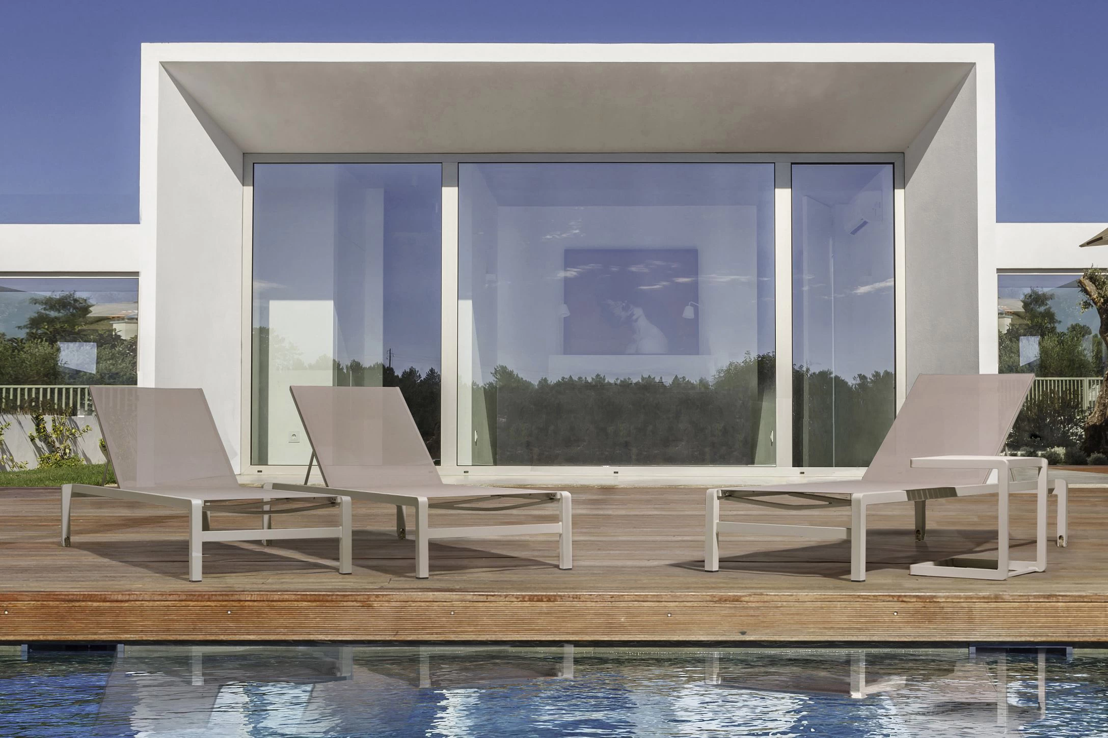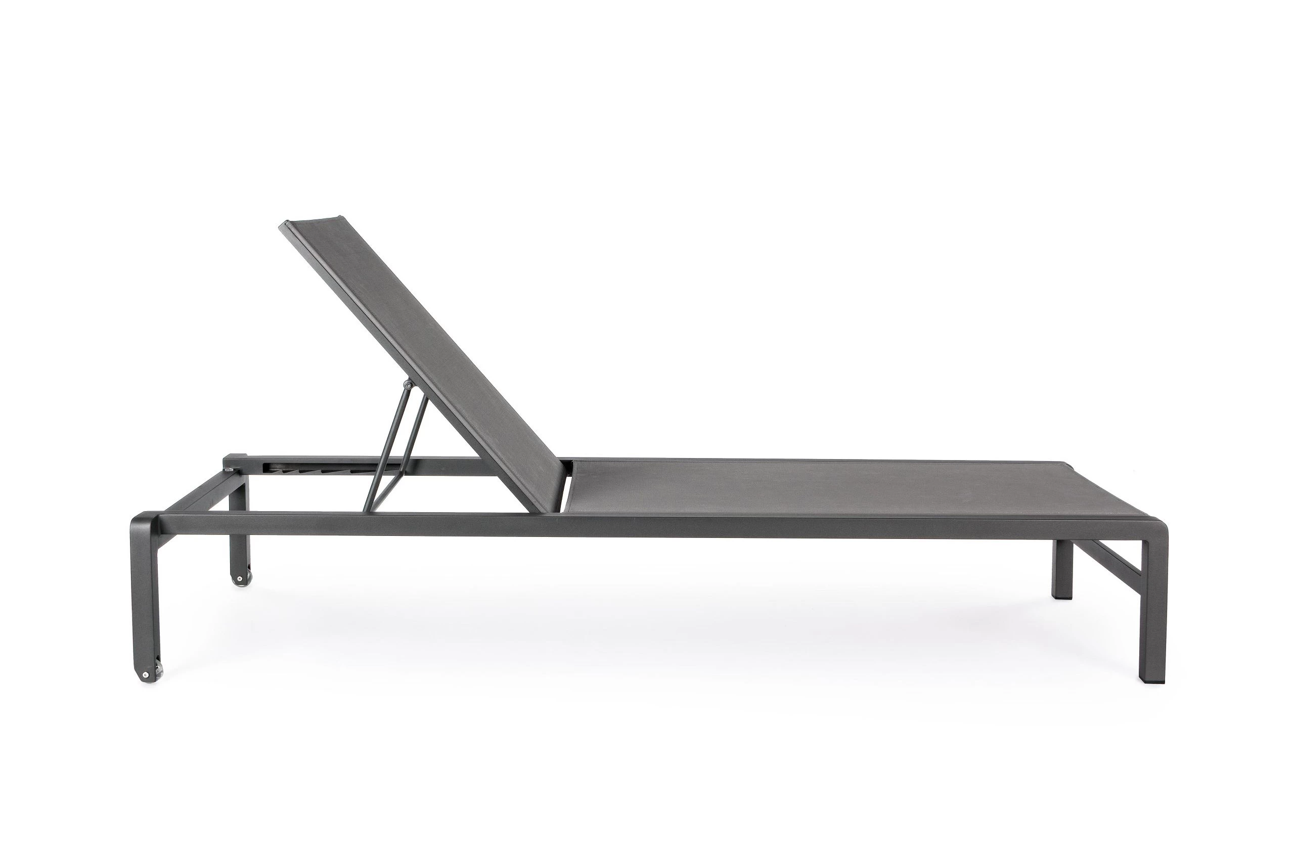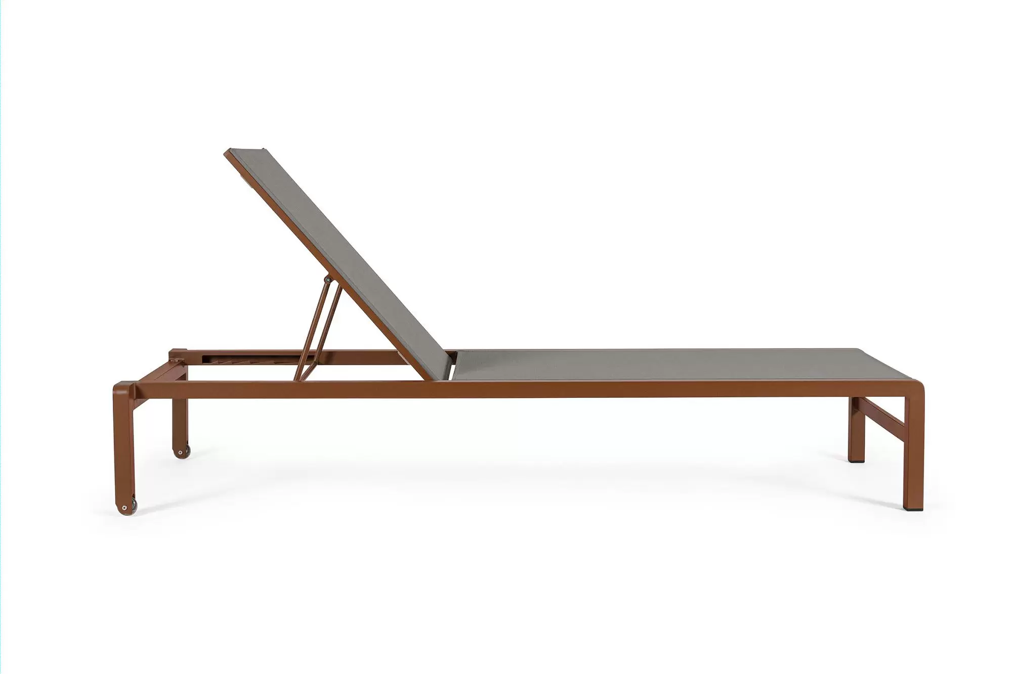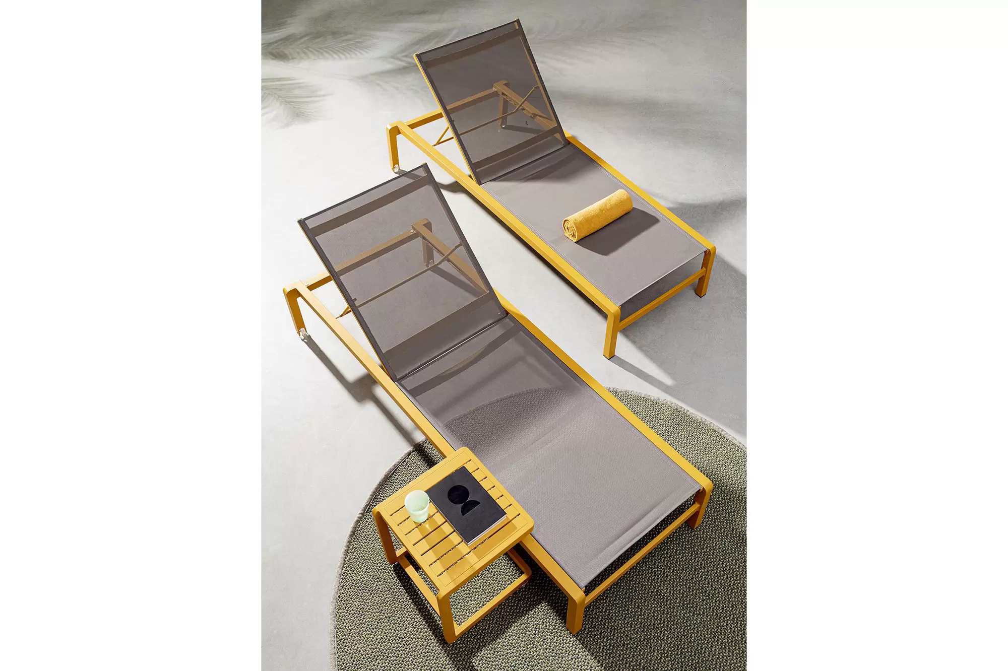 Leżak na taras aluminiowy do nowoczesnego tarasu. Siedzisko z tekstyliny. Oparcie z 6 stopniami pochylenia. Można sztaplować.