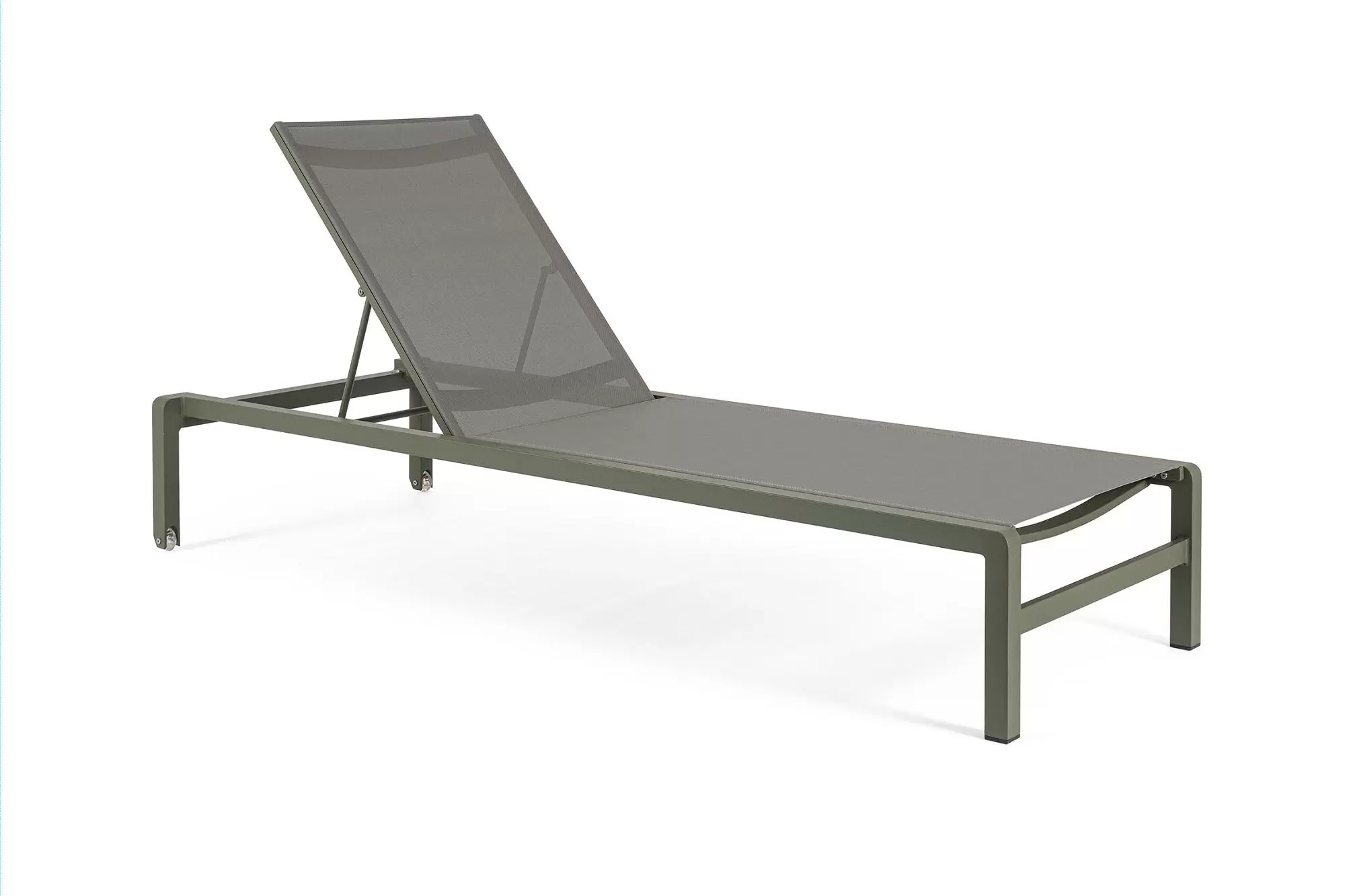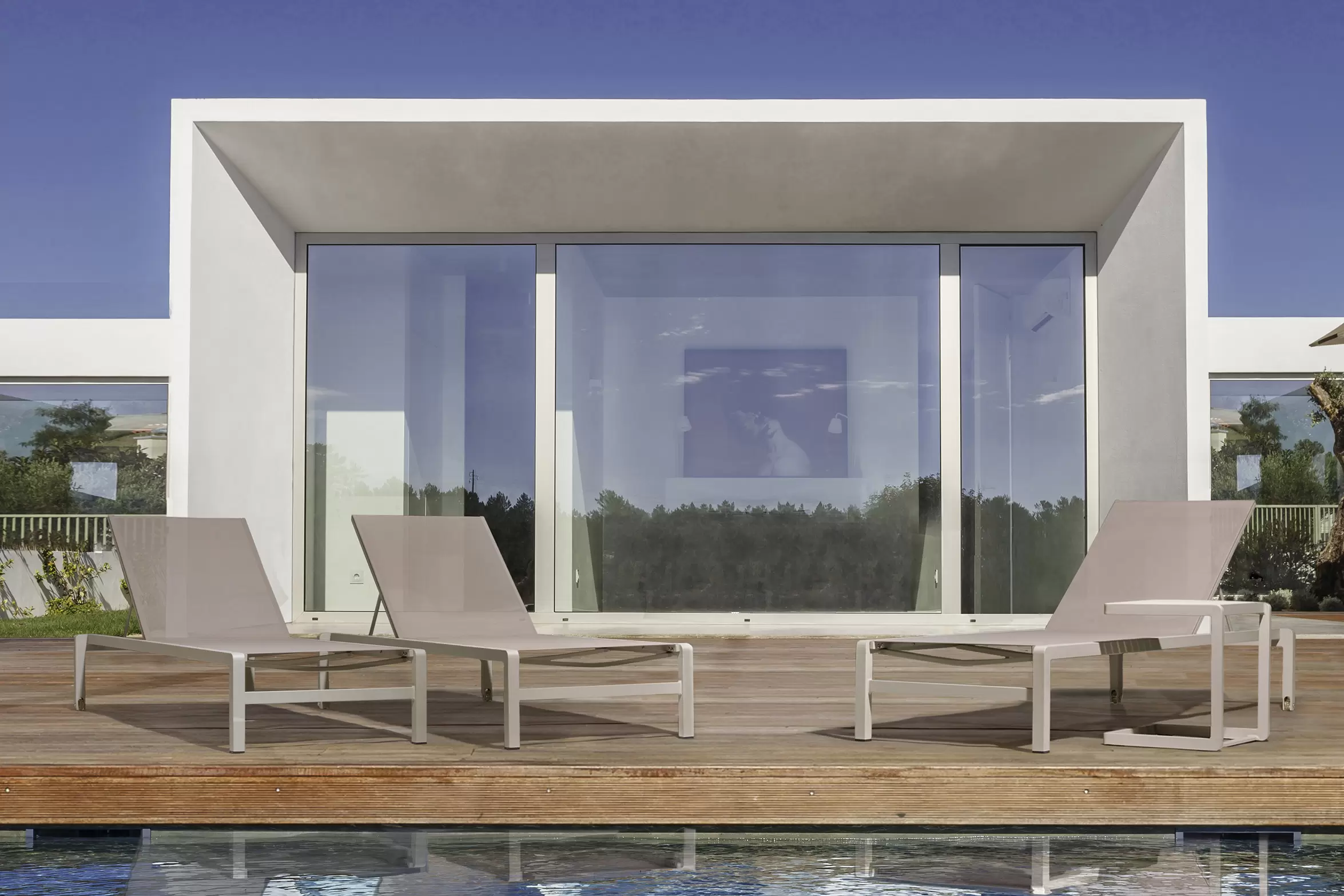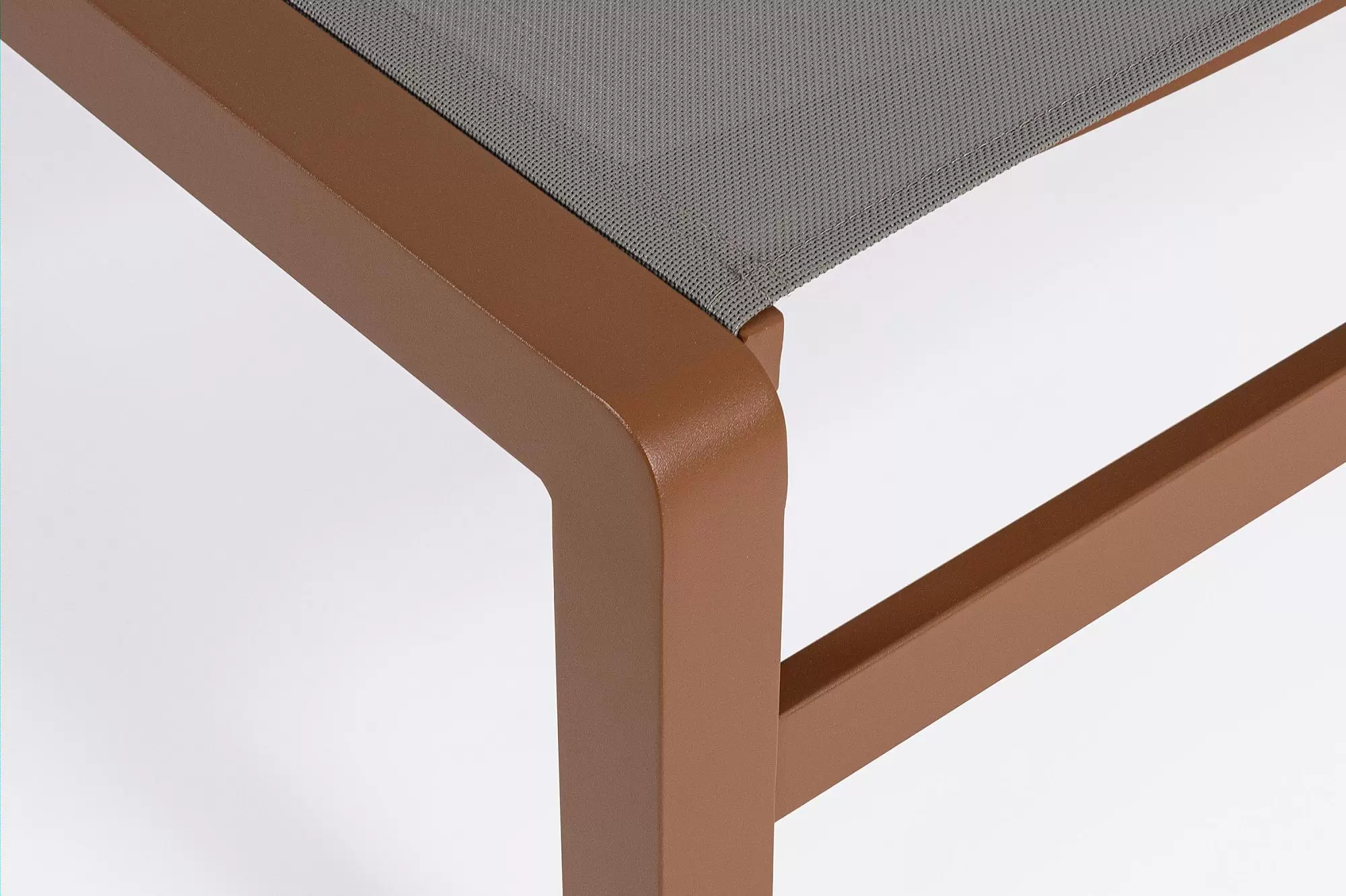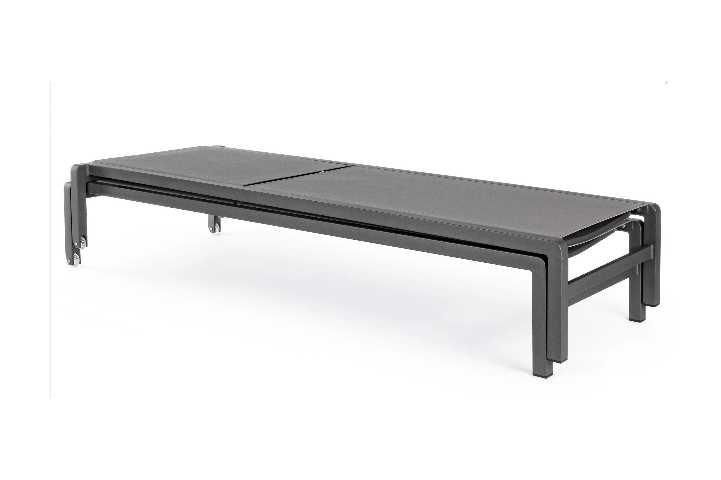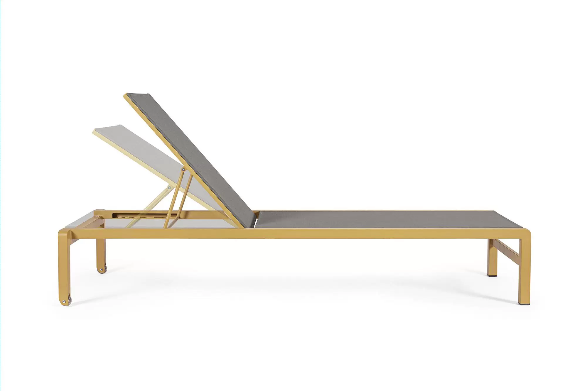 Leżak na taras aluminiowy do nowoczesnego tarasu. Siedzisko z tekstyliny. Oparcie z 6 stopniami pochylenia. Można sztaplować.