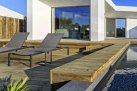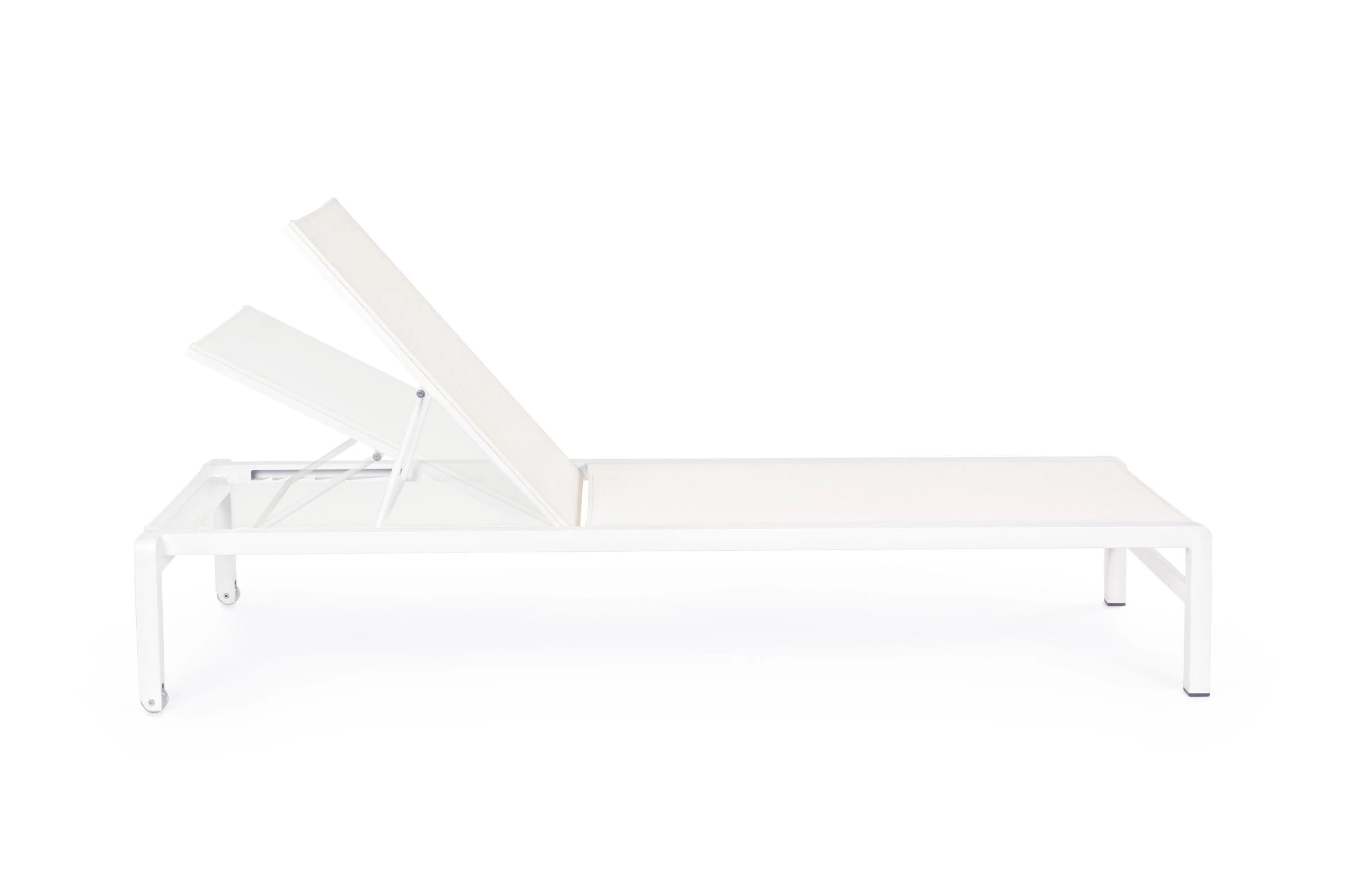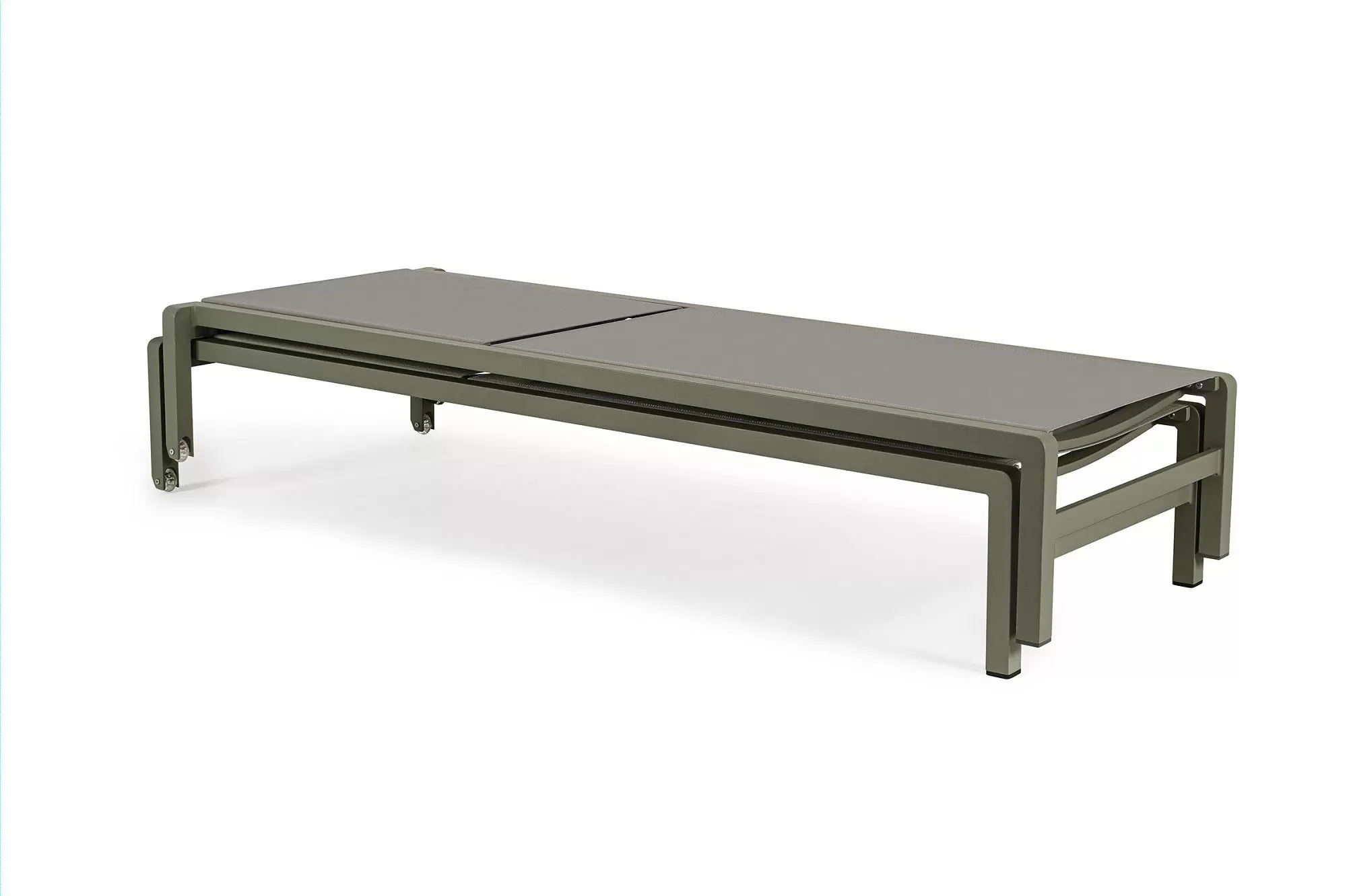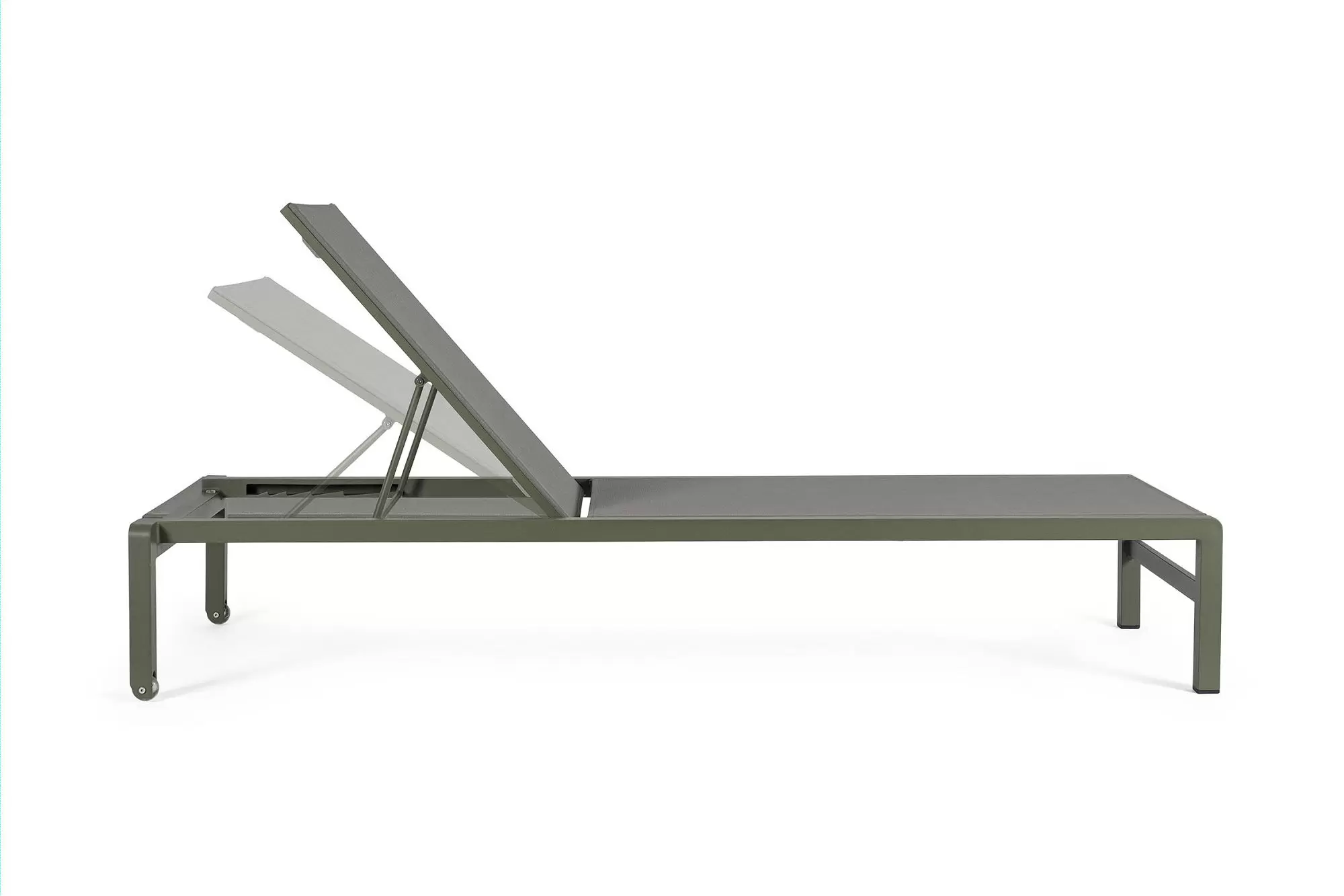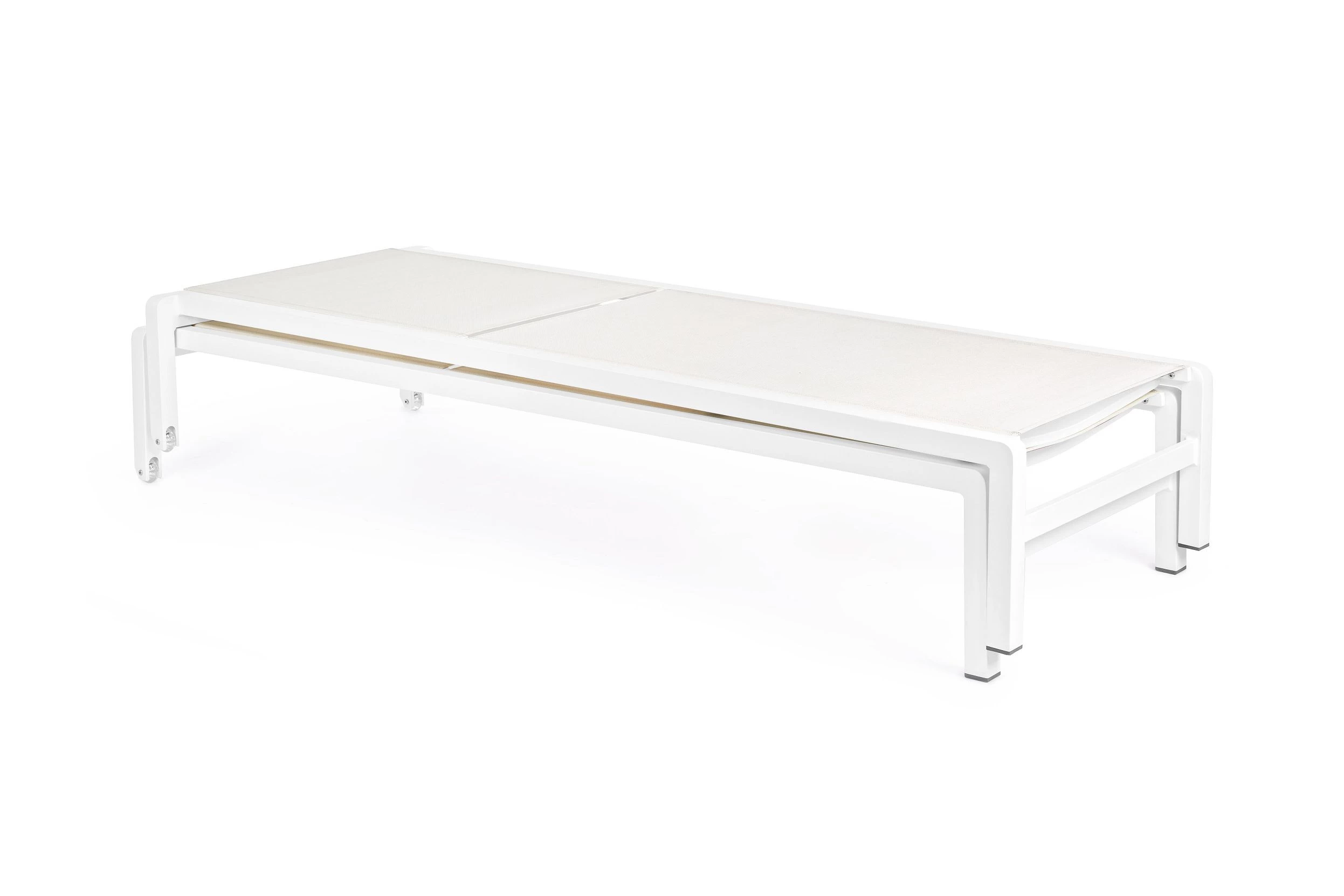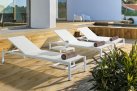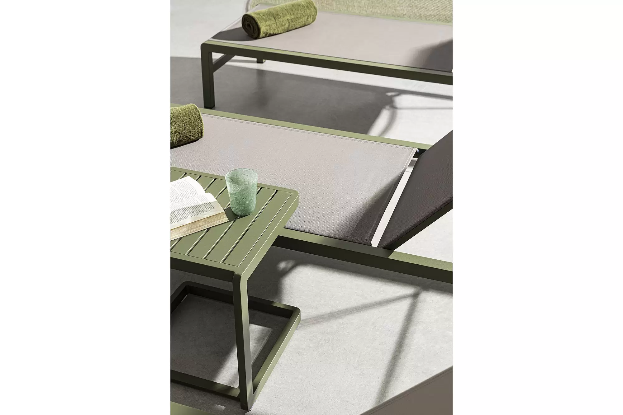 Leżak na taras aluminiowy do nowoczesnego tarasu. Siedzisko z tekstyliny. Oparcie z 6 stopniami pochylenia. Można sztaplować.