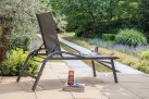 Lekki leżak aluminiowy ciemnoszary z siedziskiem z tekstyliny.