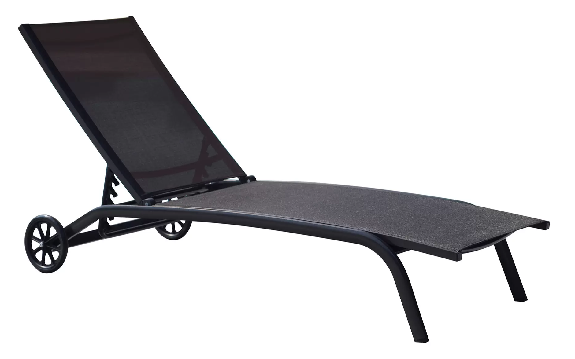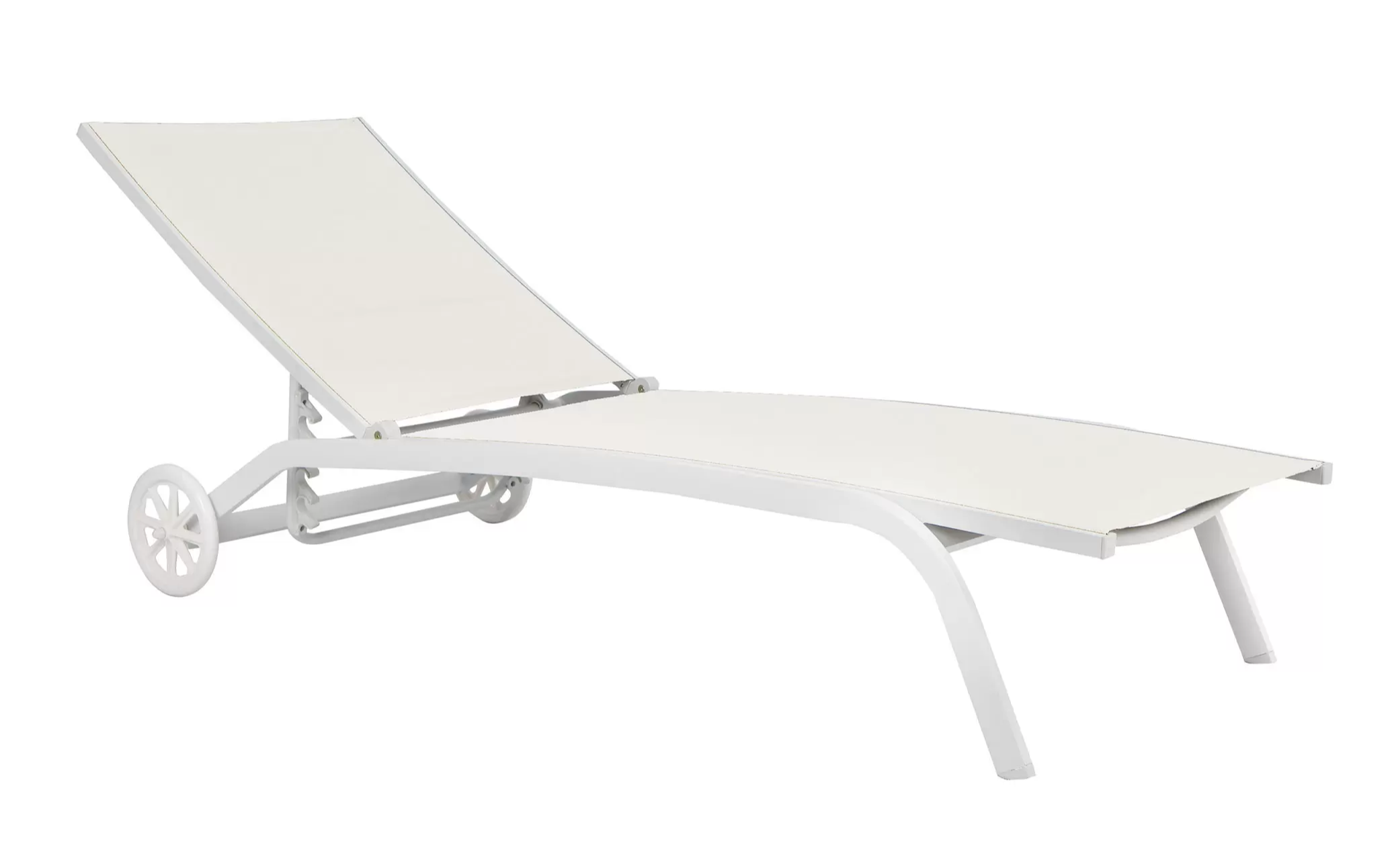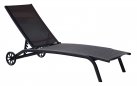Leżak o konstrukcji aluminiowej z kółkami. Profile 40 x 22 mm / siedzisko z tekstyliny o gramaturze 600 g. Kilkustopniowa regulacja pochylenia.