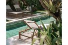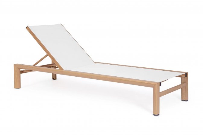 Lekki leżak ogrodowy wypoczynkowy o aluminiowej konstrukcji malowanej proszkowo i pokrytej sublimacyjne powłoką imitująca naturalne drewno.