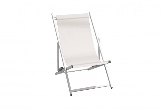 Leżak aluminiowy malowany na biało z tekstyliną na siedzisku o gramaturze 650 g w 2 kolorach. Leżak jest składany do łatwiejszego transportu i przechowywania. Zestaw 4 szt.