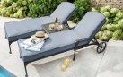Konstrukcja z odlewanego aluminium malowanego proszkowo — lekka, stabilna i odporna na korozję. Siedzisko z poprzecznych profili aluminiowych, a materac wykonany z tkaniny odpornej na wilgoć, pleśń i promieniowanie UV.