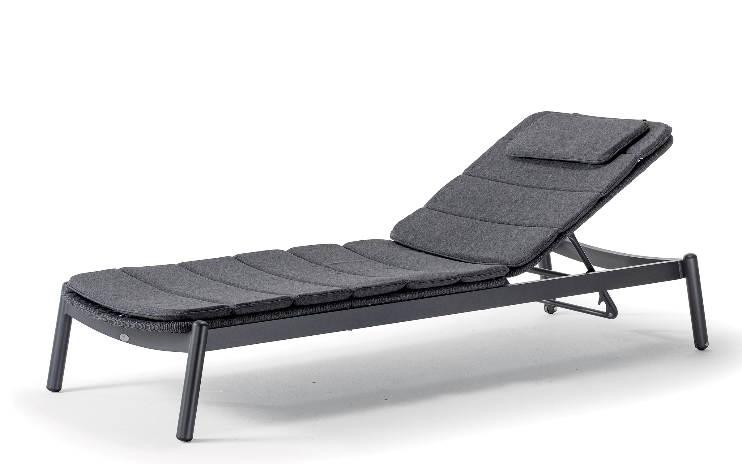 Leżak ATOL został wykonany z aluminium malowanego proszkowo, co zapewnia lekkość i odporność na warunki atmosferyczne. Siedzisko i oparcie oplata lina akrylowa, która nadaje całości nowoczesny wygląd i zwiększa trwałość. Poduszka z tkaniny Olefin jest zdejmowana, odporna na wilgoć i promieniowanie UV, a gumowa rurka w konstrukcji umożliwia odprowadzanie wody.
