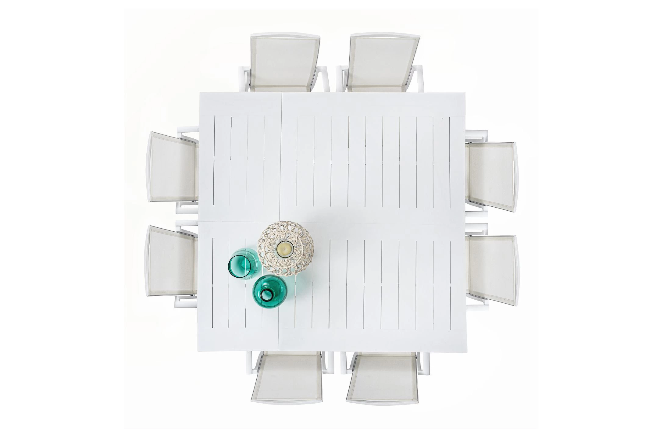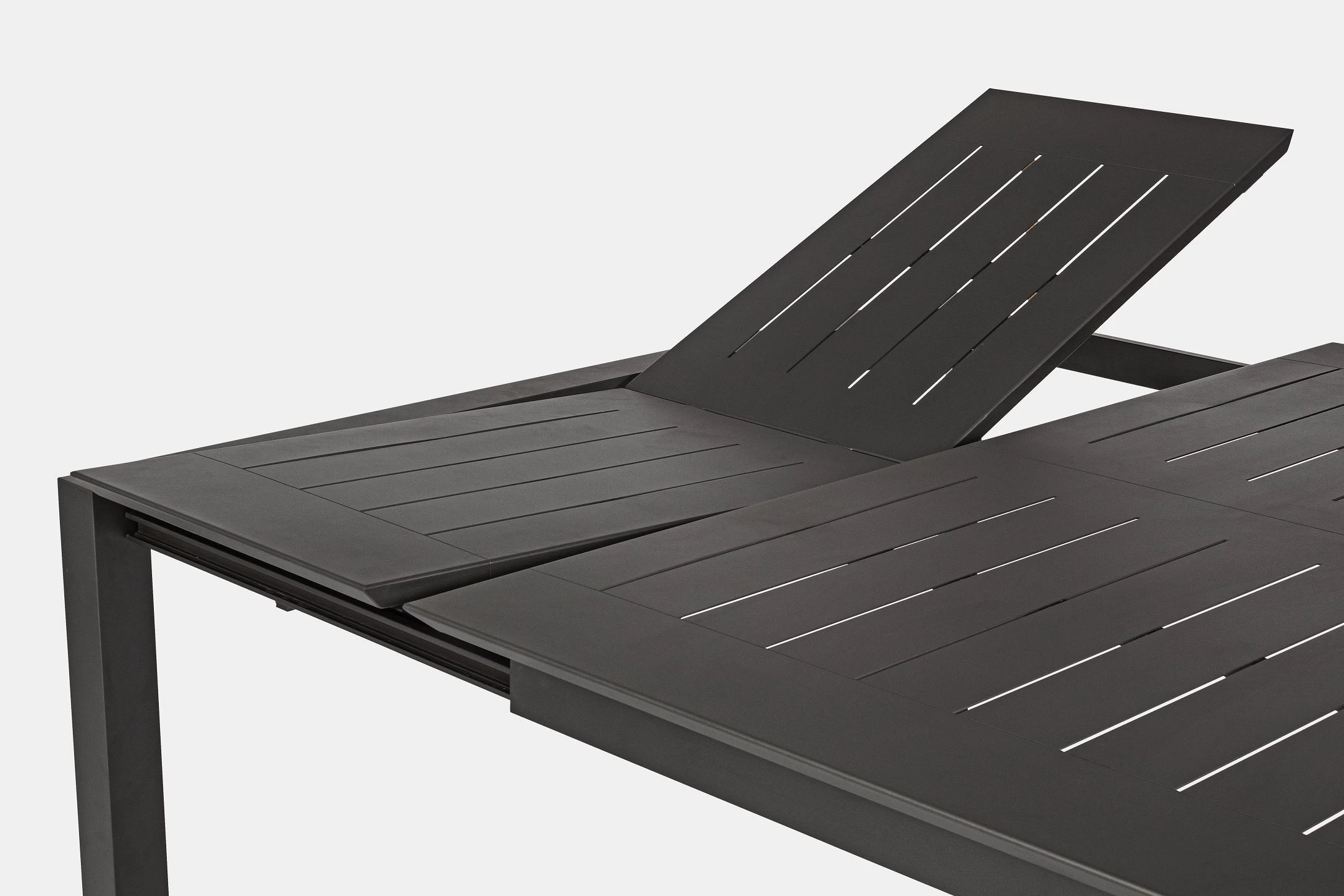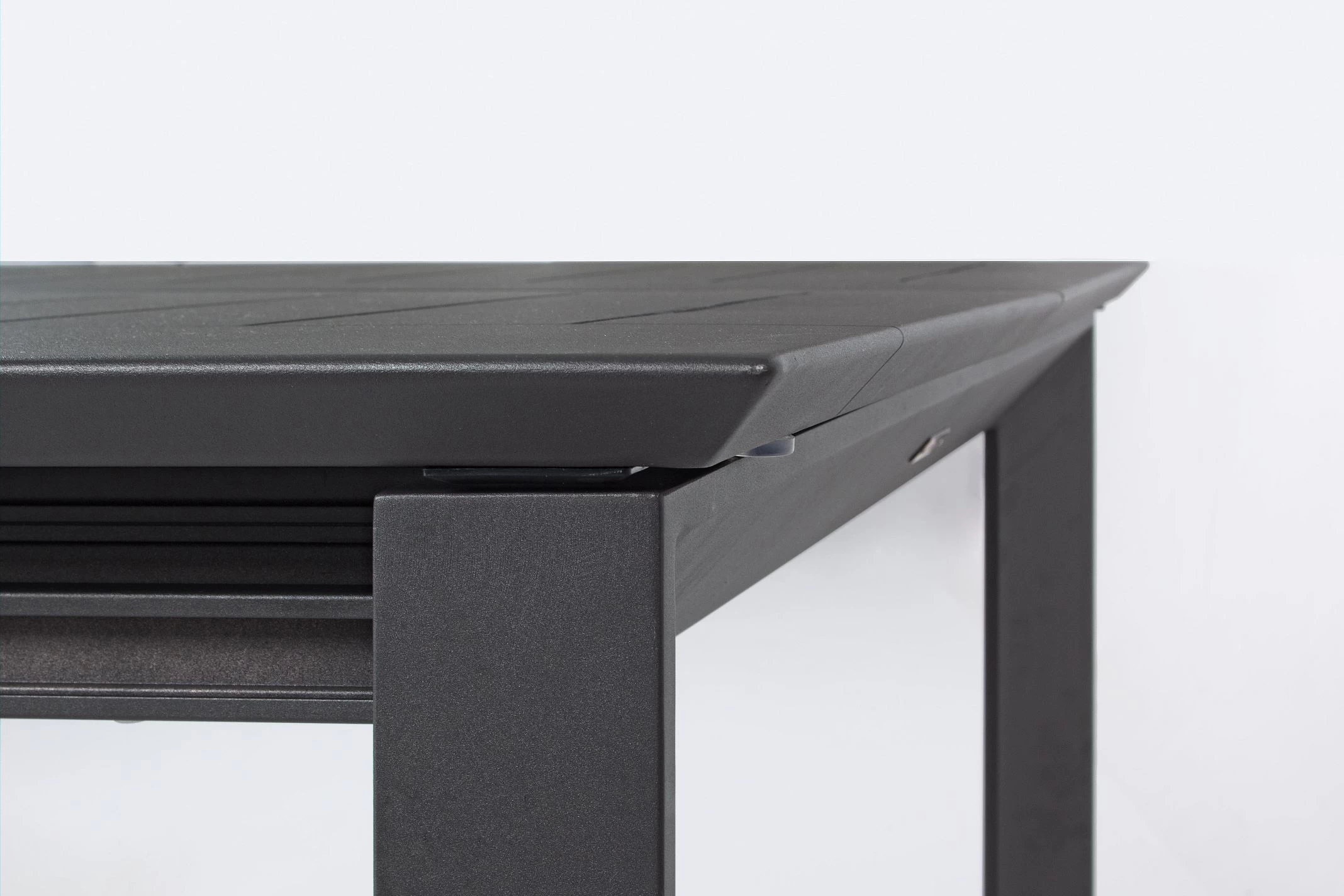 Konstrukcja aluminiowa stołu i mebli malowana proszkowo. System rozkładania teleskopowy.