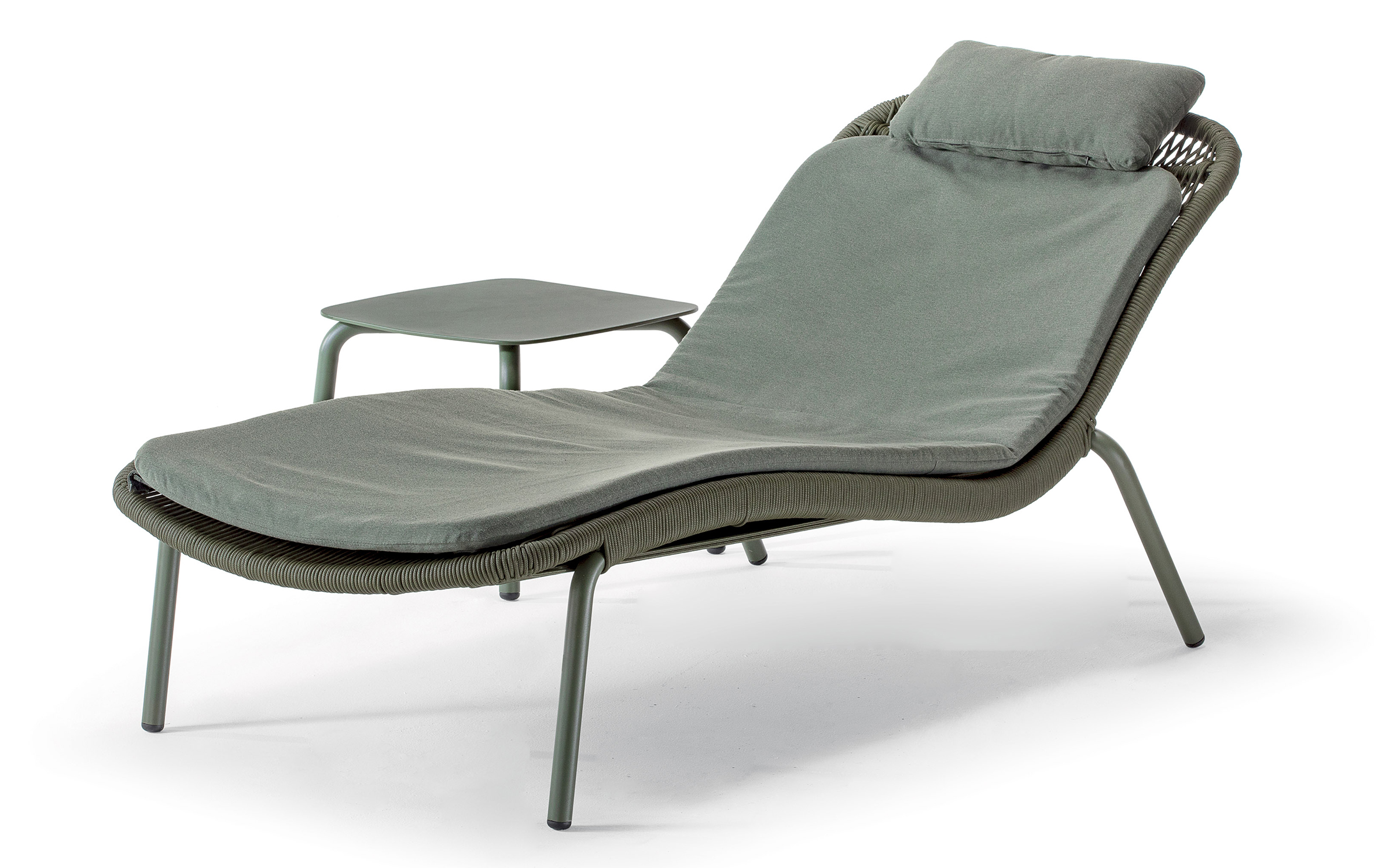 LEAF SUNBED to nowoczesny leżak ogrodowy łączący lekką konstrukcję aluminiową z elegancką plecionką z liny textilene Ø 6 mm. Model został zaprojektowany z myślą o komforcie i trwałości, dzięki czemu doskonale sprawdzi się na tarasie, w ogrodzie oraz w strefach basenowych.