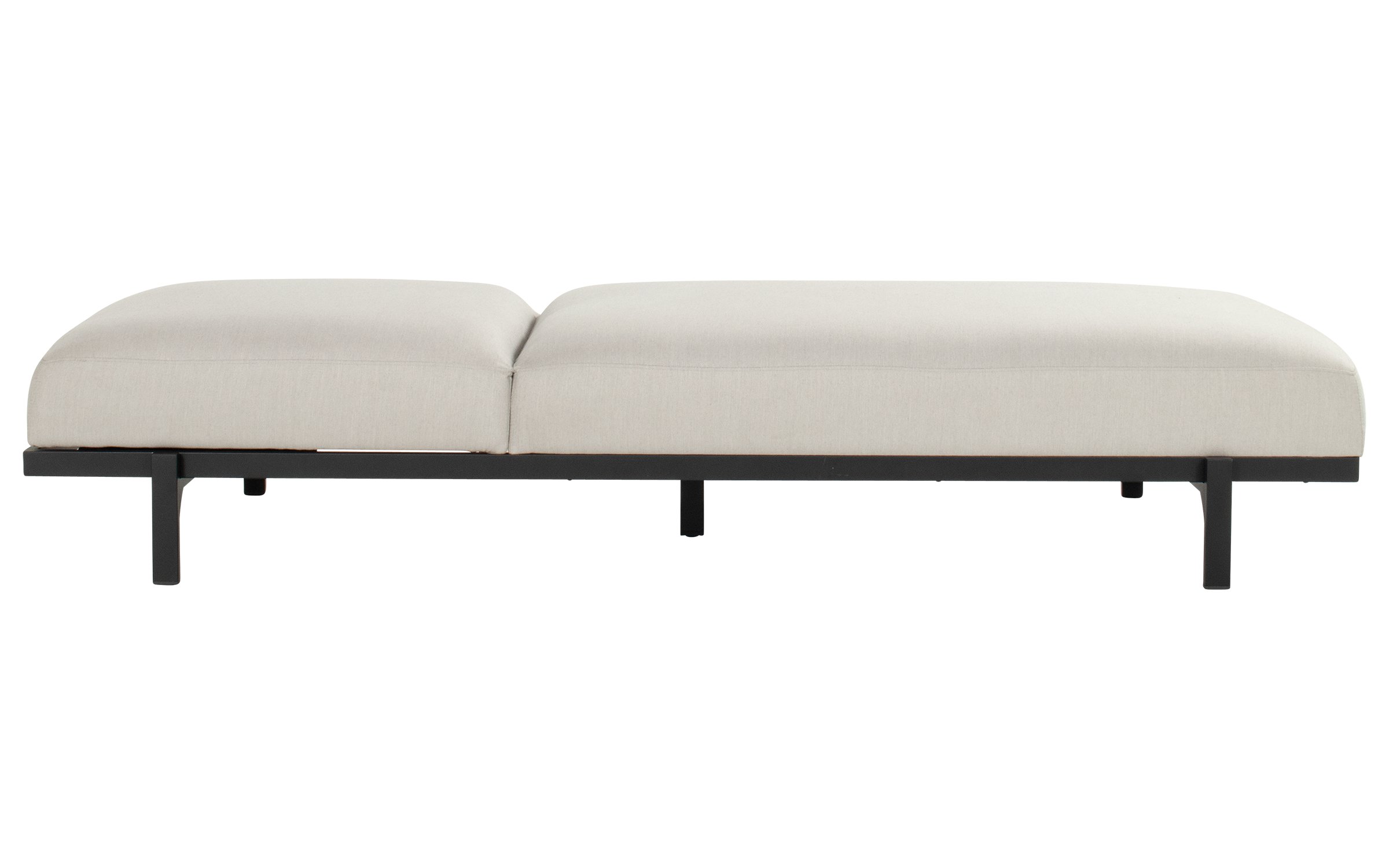 Leżak posiada podstawę wykonaną z malowanego proszkowo aluminium oraz tapicerkę z wysokiej jakości materiału Sunbrella, w kilku kolorach do wyboru. Połączenie tych materiałów zapewnia narożnikowi wyjątkowy i nowoczesny wygląd, jednocześnie pozwalając na pozostawienie narożnika na zewnątrz przez cały rok.