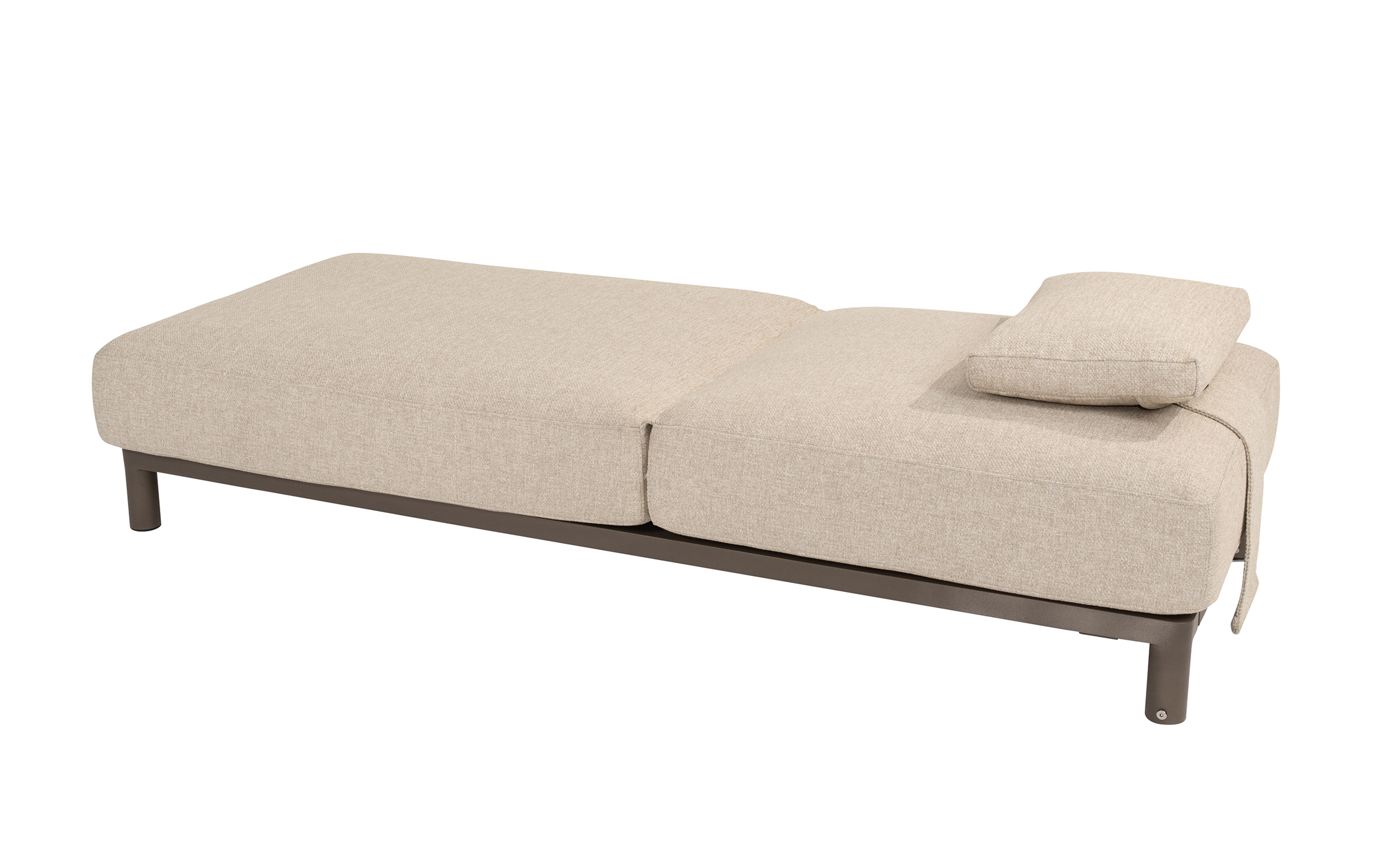 Leżak Madeira to luksusowa leżanka, która łączy w sobie styl i wygodę z solidną aluminiową ramą w eleganckim kolorze terre (ciemny brąz) lub beżowym oraz wyjątkowo okazałymi poduszkami.