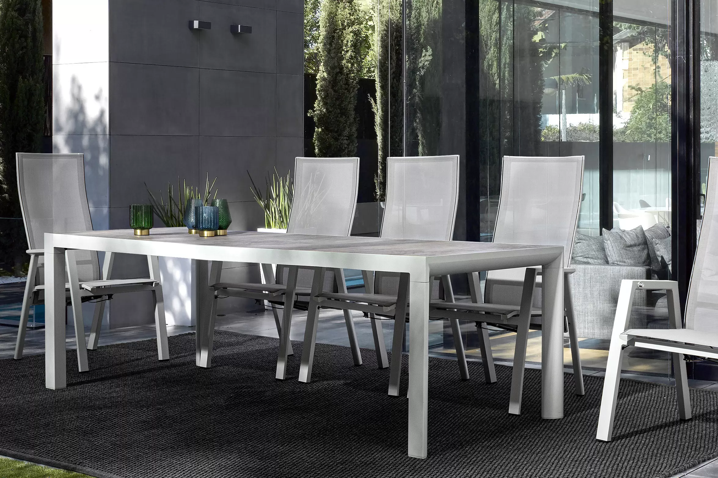 Konstrukcja aluminiowa stołu i mebli malowana proszkowo.