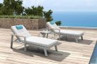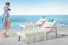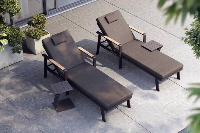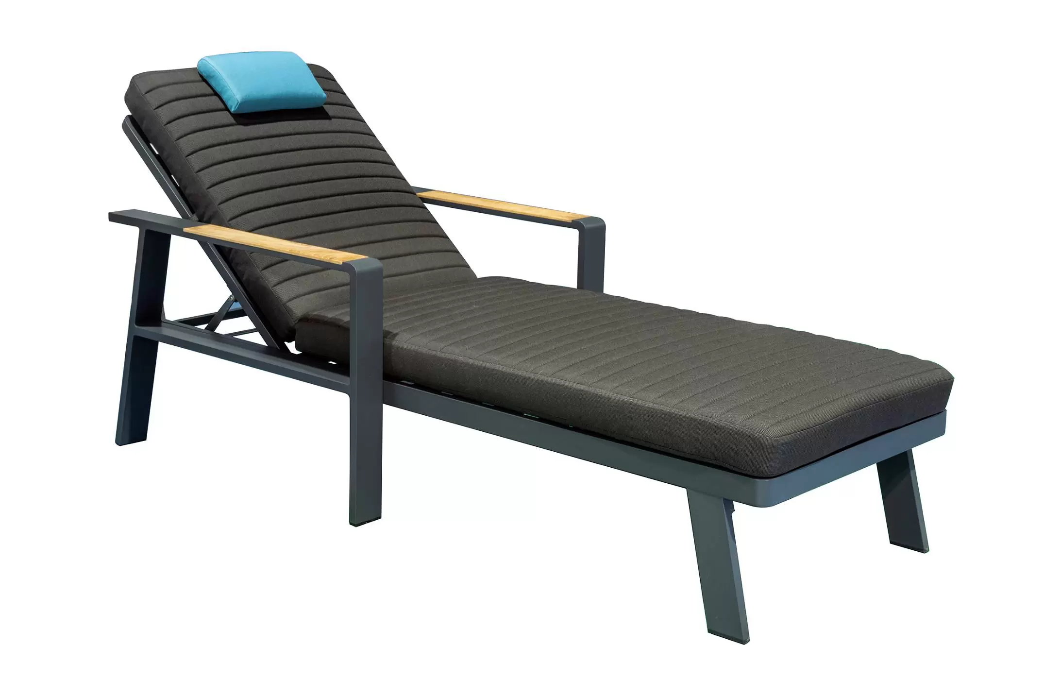 Nowoczesny aluminiowy leżak ogrodowy z materacem z kolekcji NOFI firmy HIGOLD. Konstrukcja opiera się na spawanej ramie aluminiowej malowanej proszkowo, elementach dekoracyjnych z teaku i wygodnym materacu z obiciem z materiału Olefin. Poduszki położone na opinającej ramę tekstylinie.
