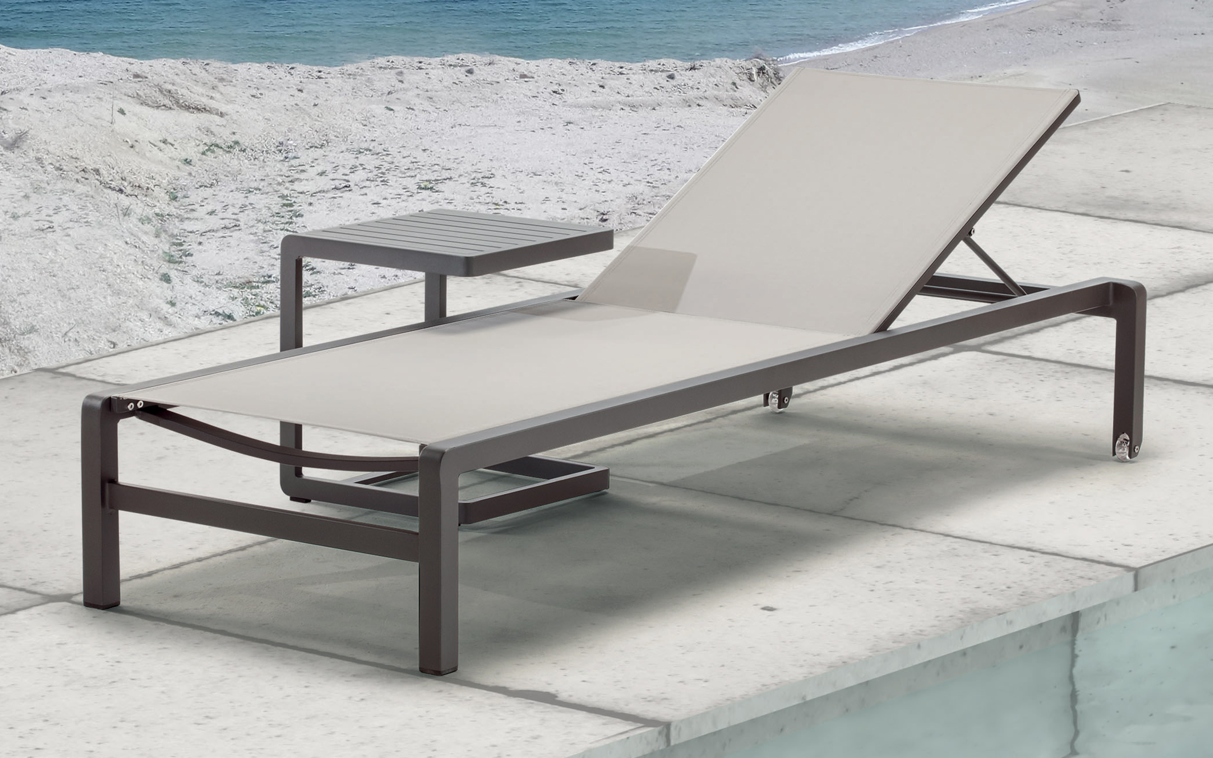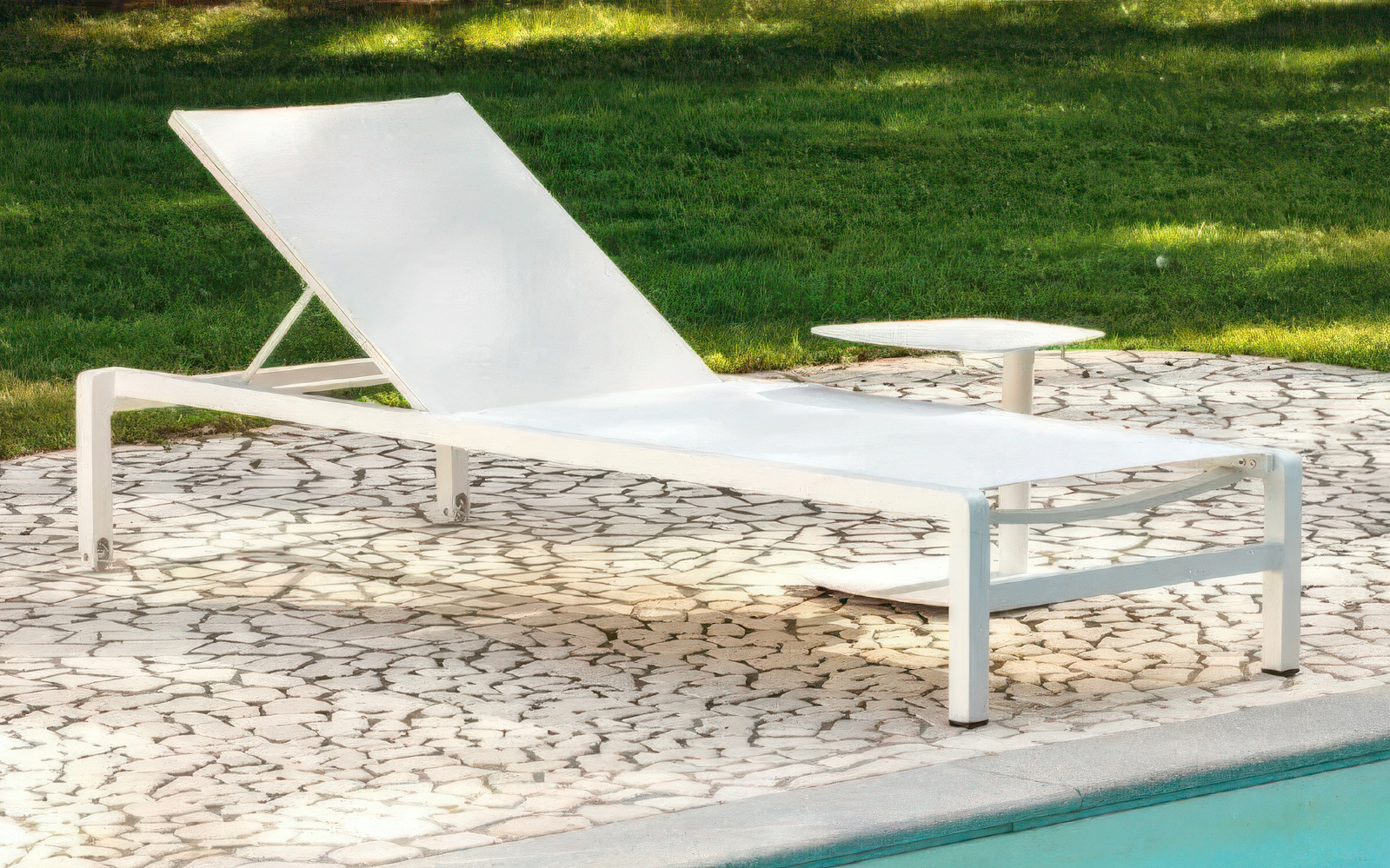Raja to elegancki leżak ogrodowy marki Grattoni, wykonany z aluminium. Siedzisko i oparcie z tekstyliny zapewniają komfort i odporność na warunki atmosferyczne. Lekka konstrukcja ułatwia przenoszenie, a możliwość sztaplowania pozwala na oszczędność miejsca podczas przechowywania. Dostępny w trzech wariantach kolorystycznych: rama antracytowa z jasnoszarym siedziskiem, rama biała z białym siedziskiem oraz rama biała z beżowym siedziskiem. Opcjonalnie można dobrać stolik boczny o wymiarach 40×40 cm z aluminium w kolorze białym.