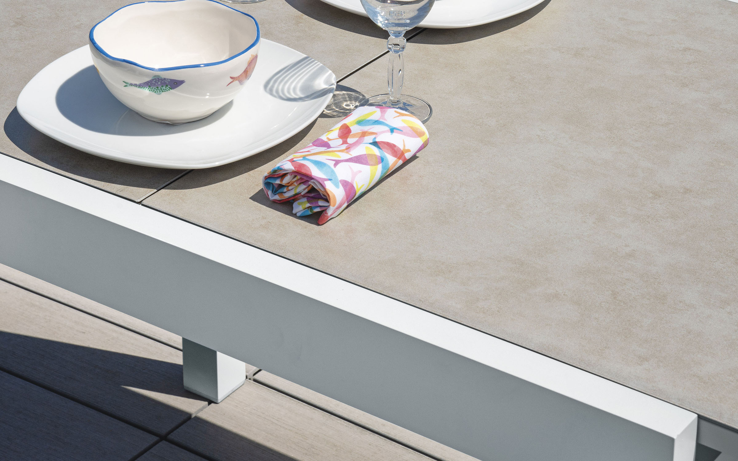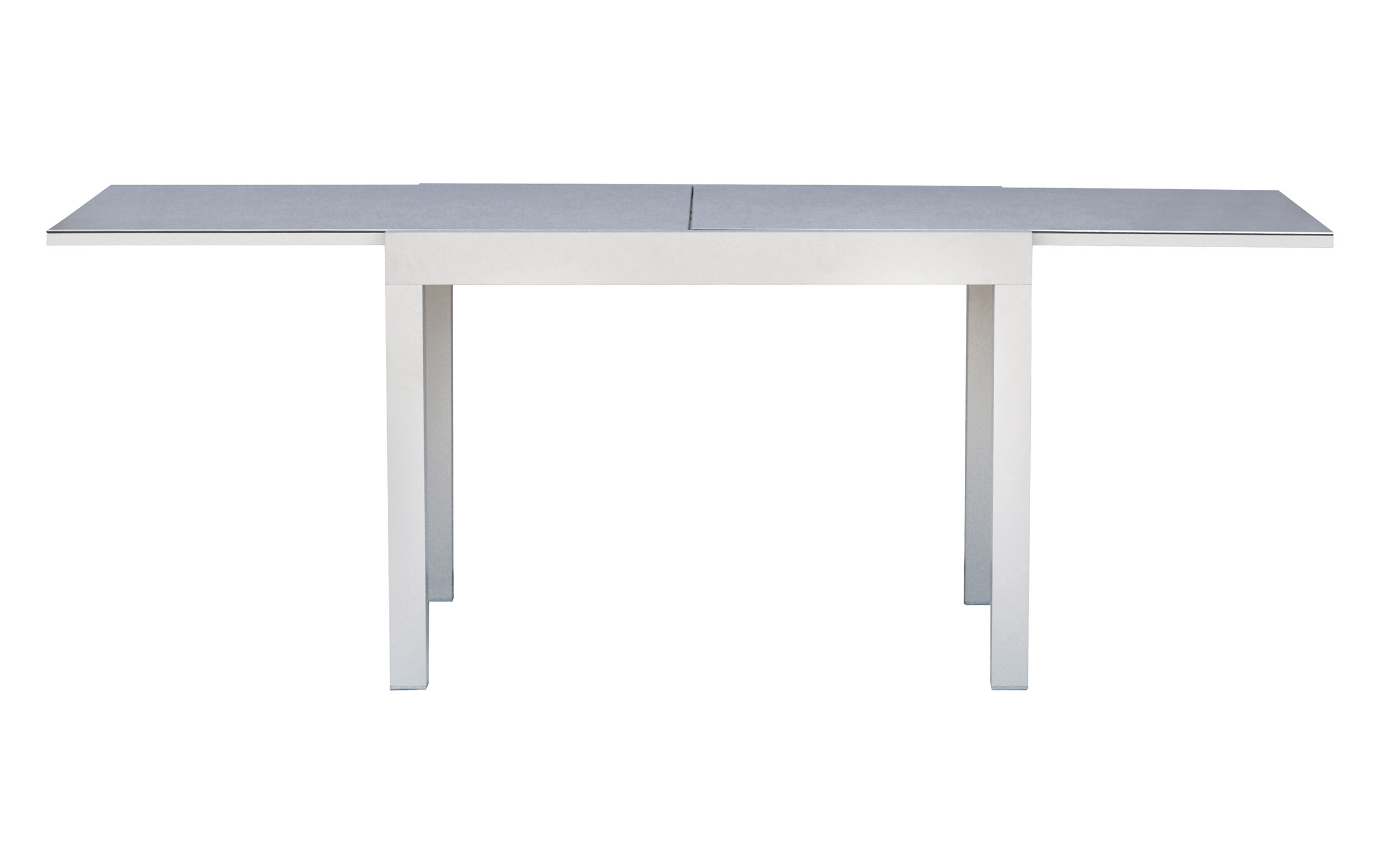 Nowoczesny stół ogrodowy rozkładany z aluminiową konstrukcją malowaną proszkowo. Dzięki systemowi rozsuwania blat można wydłużyć z 104 do 208 cm, co pozwala wygodnie pomieścić od 6 do 8 osób. Idealny na taras, balkon lub do ogrodu. Dostępny w dwóch wersjach kolorystycznych: