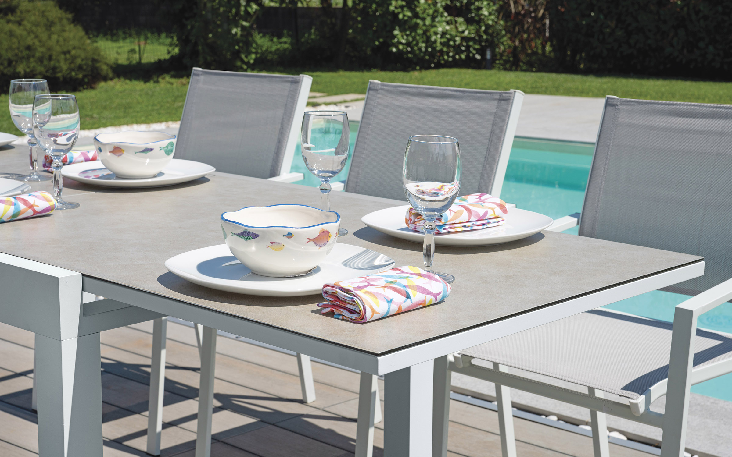 SPALATO 104–208×75 – stół ogrodowy aluminiowy rozkładany dla 6–8 osób