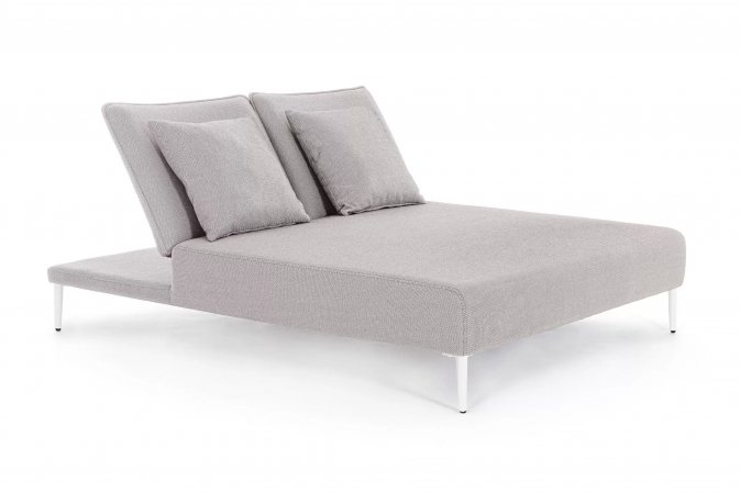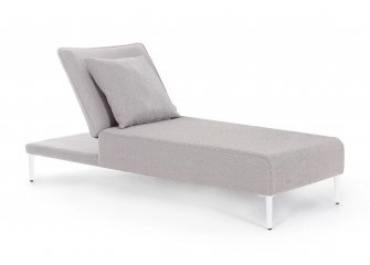 Leżak posiada tapicerkę z szybkoschnącej pianki i obity jest niezdejmowalnym wodoodpornym i odpornym na UV (klasa 7) materiałem Olefin.