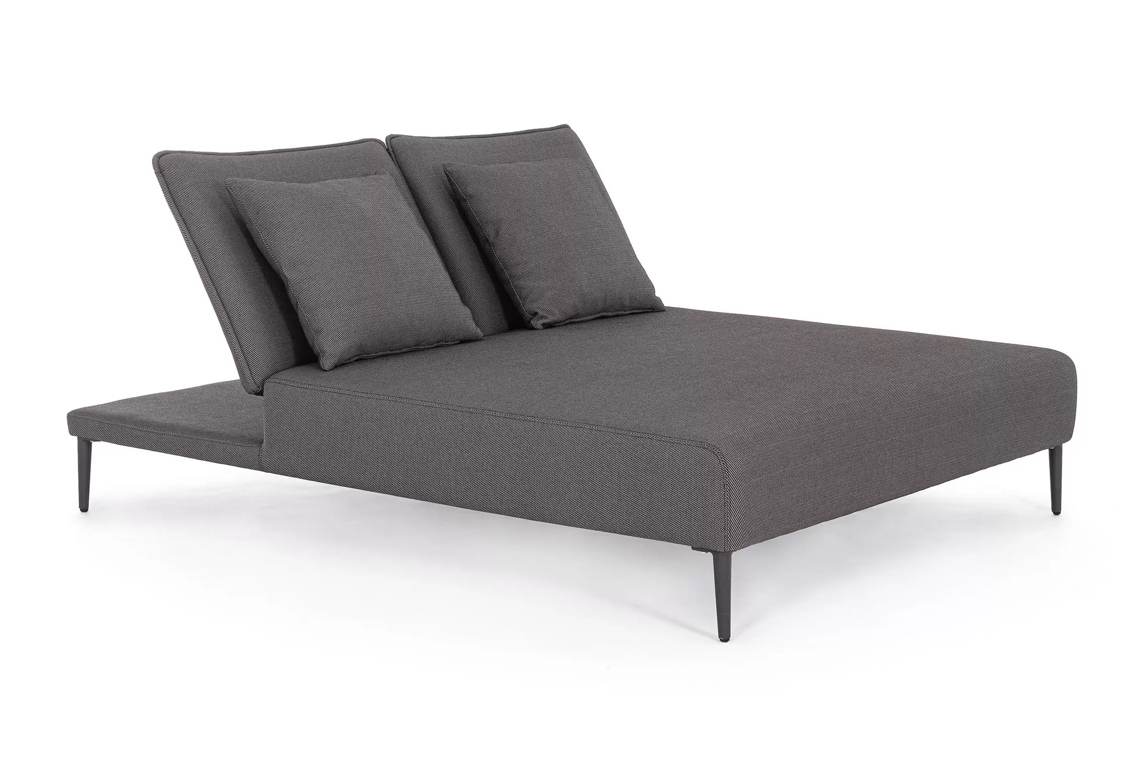 Nowoczesna leżanka ogrodowa wykonana w całości z aluminium z płynnie regulowanym pochyleniem oparcia..