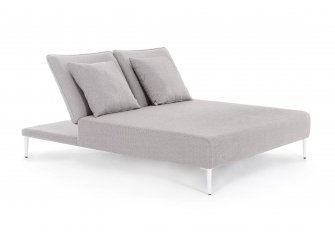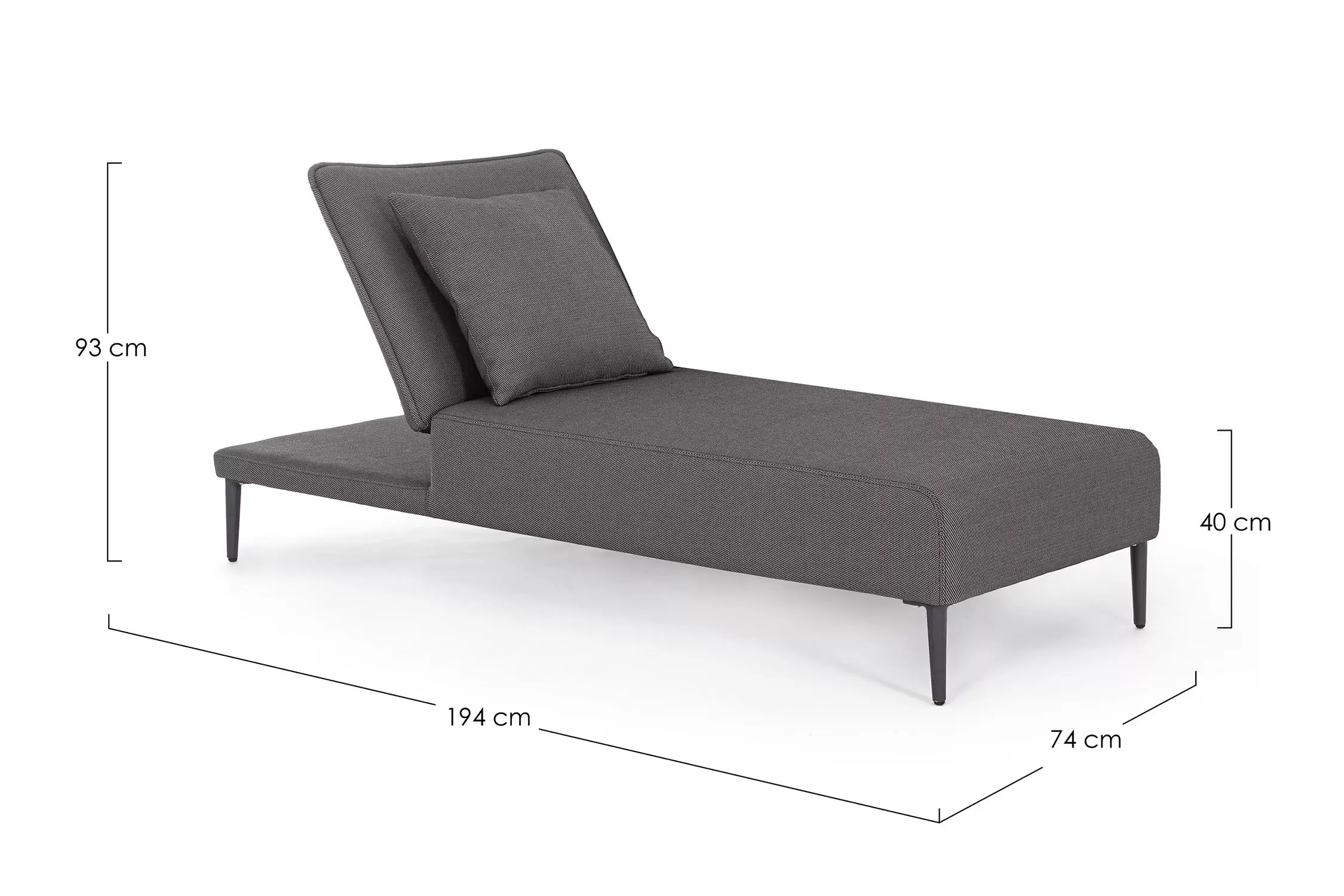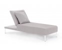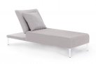 Nowoczesny leżak wykonany w całości z aluminium z regulowanym pochyleniem oparcia.