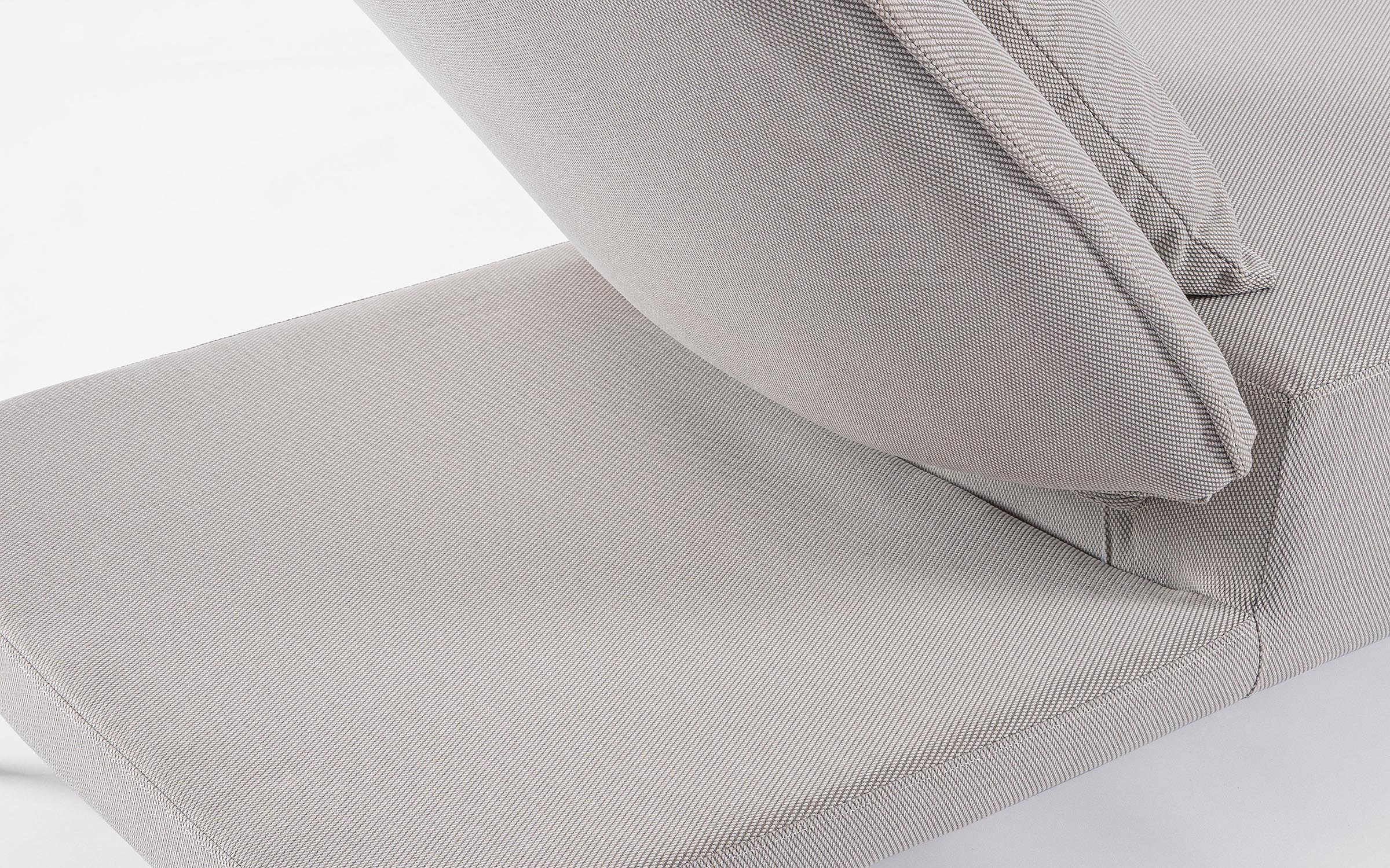 Leżak posiada tapicerkę z szybkoschnącej pianki i obity jest niezdejmowalnym wodoodpornym i odpornym na UV (klasa 7) materiałem Olefin.