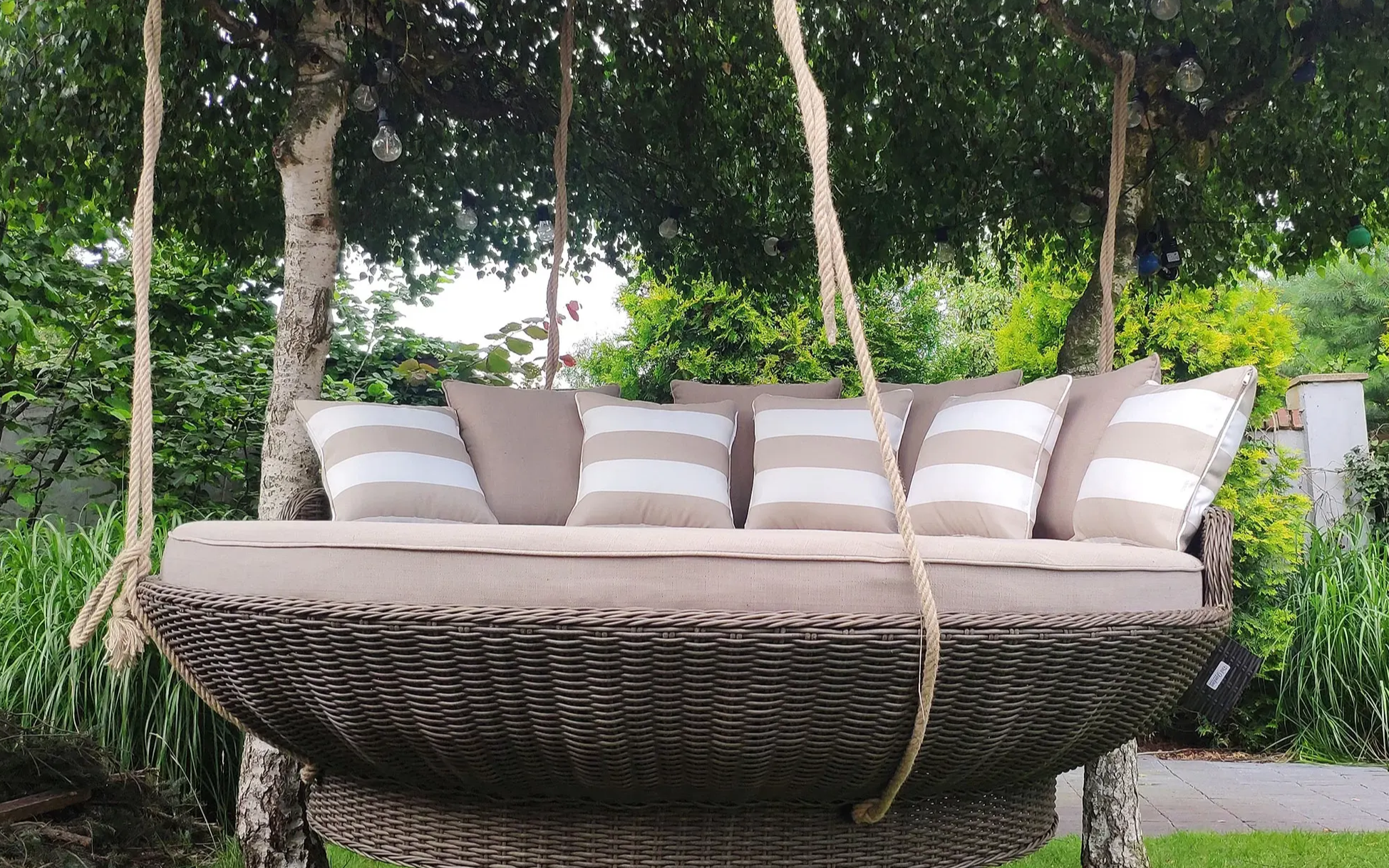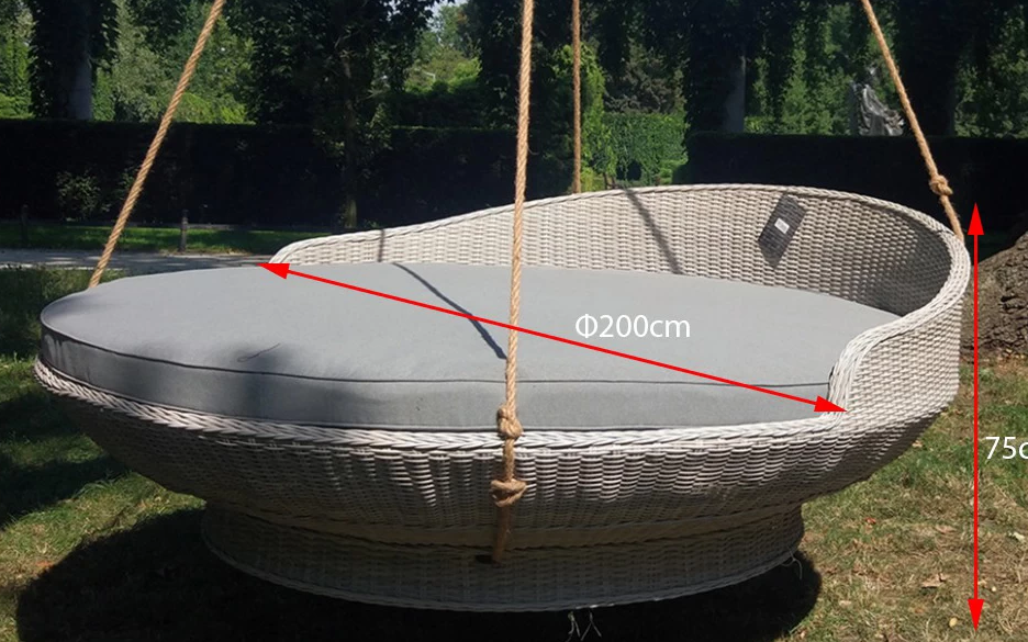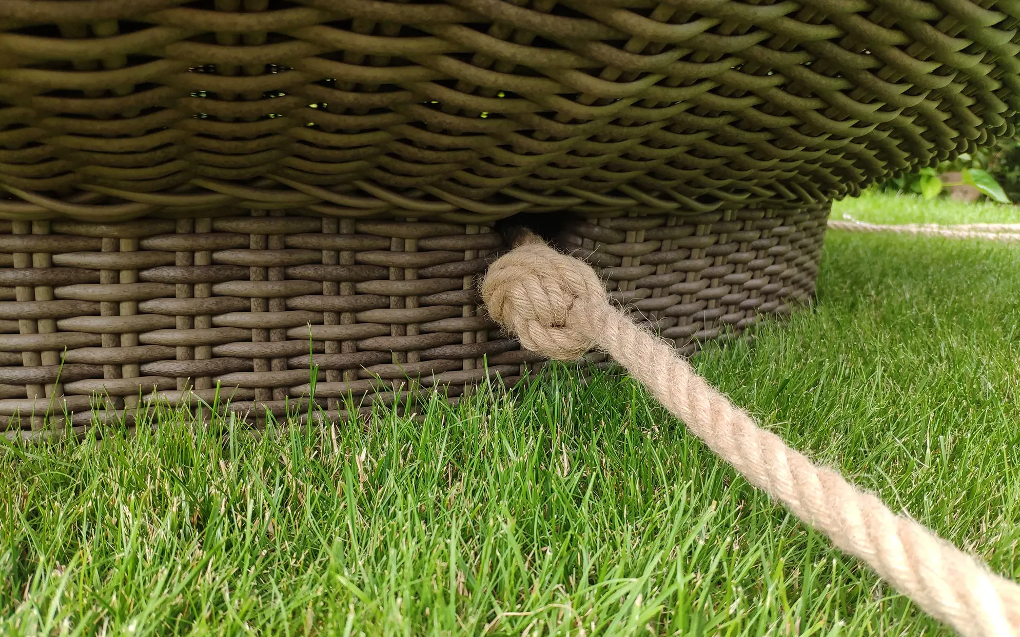 Konstrukcja leżanki została wykonana z wysokiej jakości technorattanu o półokrągłym splocie, który perfekcyjnie imituje naturalny rattan. Materiał ten cechuje się ekstremalną odpornością na warunki atmosferyczne oraz promieniowanie UV, dzięki czemu mebel nie płowieje i zachowuje swoją strukturę przez wiele sezonów. Stabilna rama, solidne podwieszenie na linach oraz zestaw grubych, miękkich poduszek gwarantują bezpieczeństwo i pełen relaks na świeżym powietrzu. Leżanka podwieszana CORSO to synonim nowoczesnego stylu życia, który zamieni Twój ogród w prywatną strefę wypoczynku premium.
