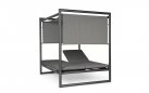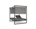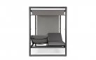 Łóżko podwójne ogrodowe aluminiowe z zadaszeniem. Pochylenie oparcia regulowane 4-stopniowo. Osłona przeciwsłoneczna przesuwana.