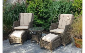 Klasyczne fotele ogrodowe z wysokimi oparciami, tzw. uszaki z grubymi i wygodnymi poduszkami wykonane z technorattanu. Wygodę zapewniają grube przytulne poduszki.