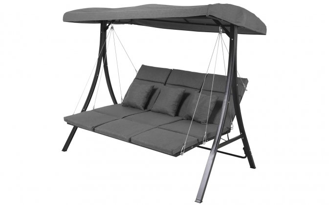 Łóżko huśtawka ogrodowa stalowa ciemnoszara dla 3 osób. Maksymalne obciążenie 250 kg.