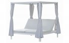 Łóżko posiada dach z tekstyliny lekko prześwitującej w kolorze białym.