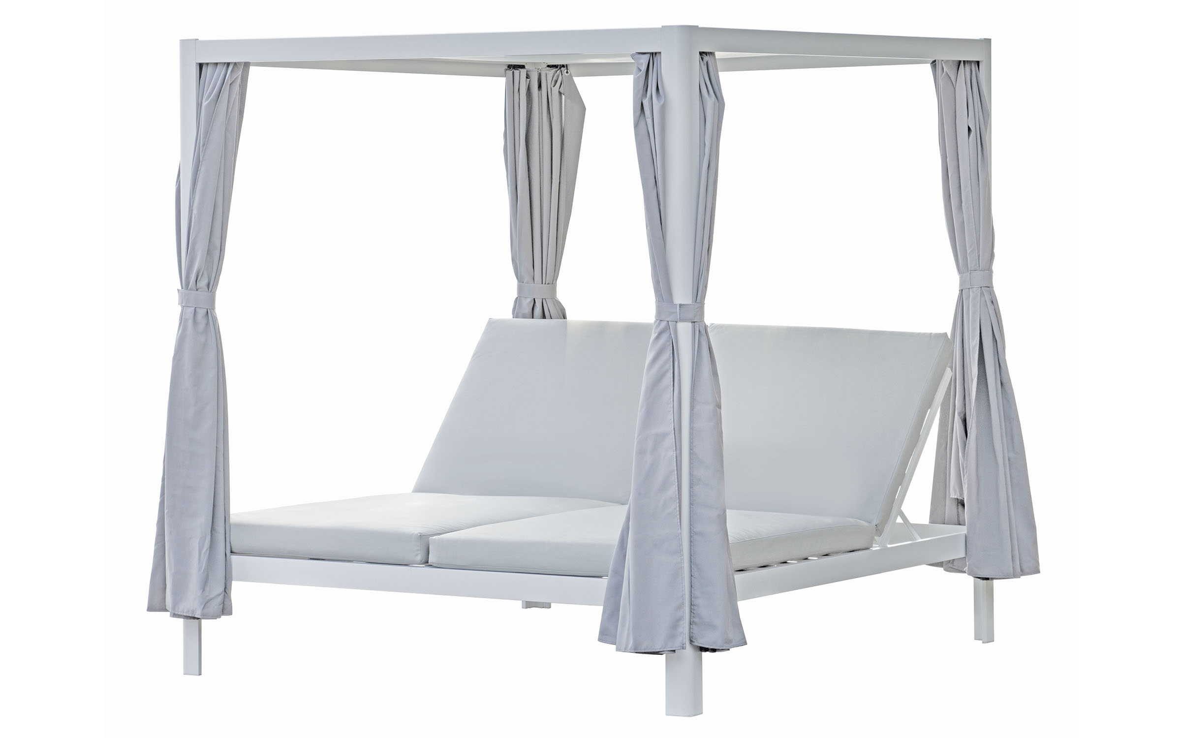 Duża podwójna leżanka ogrodowa dla 2 osób do wspólnego spędzania czasu w letnie wieczory.