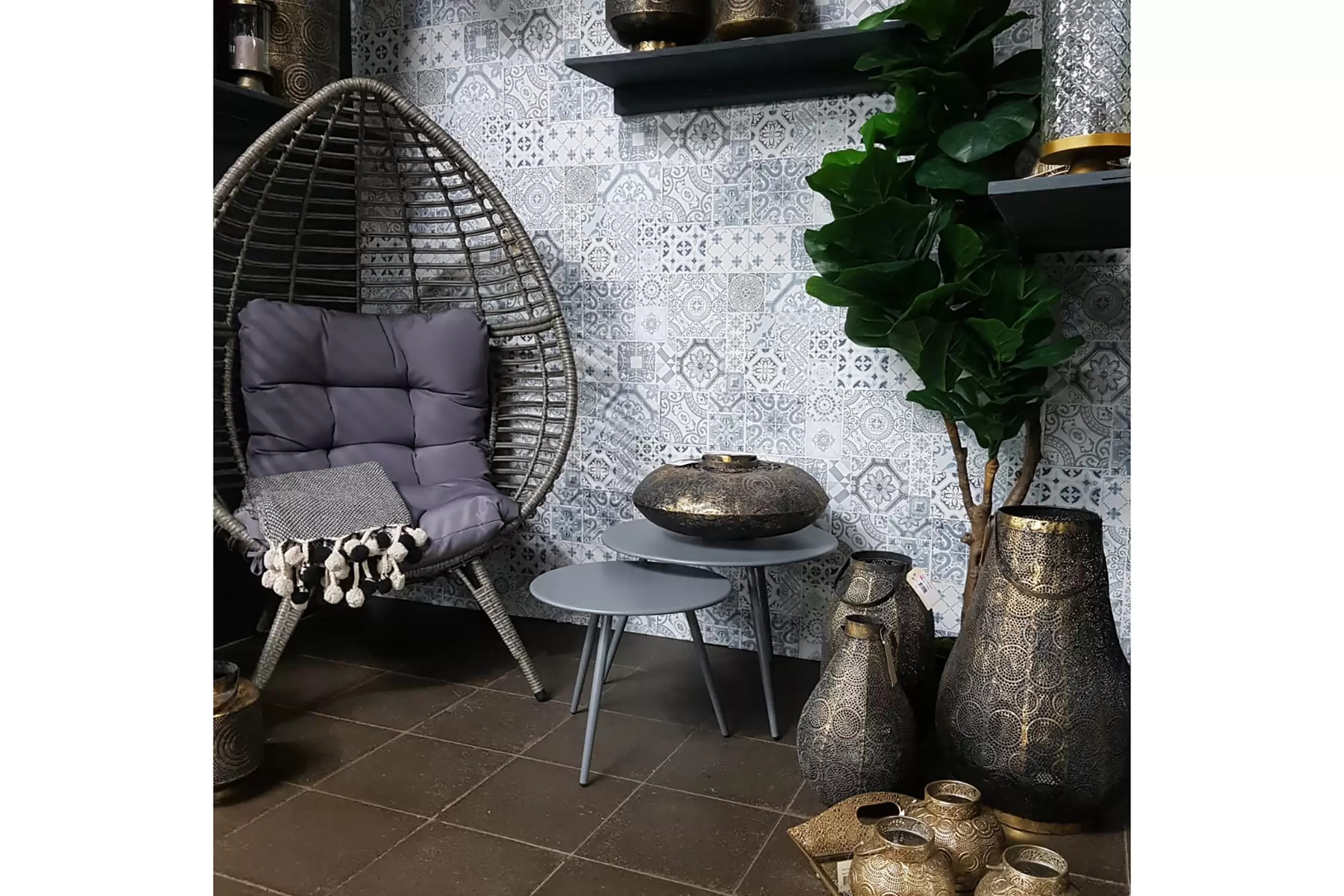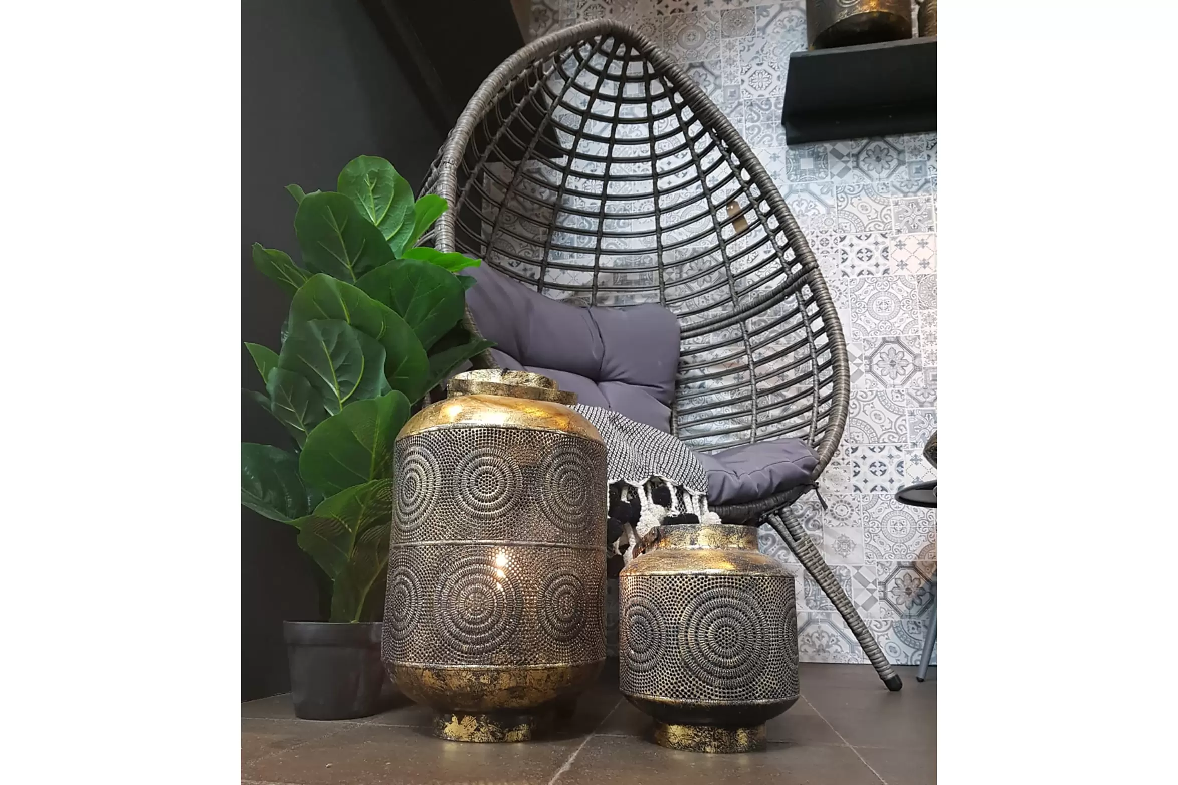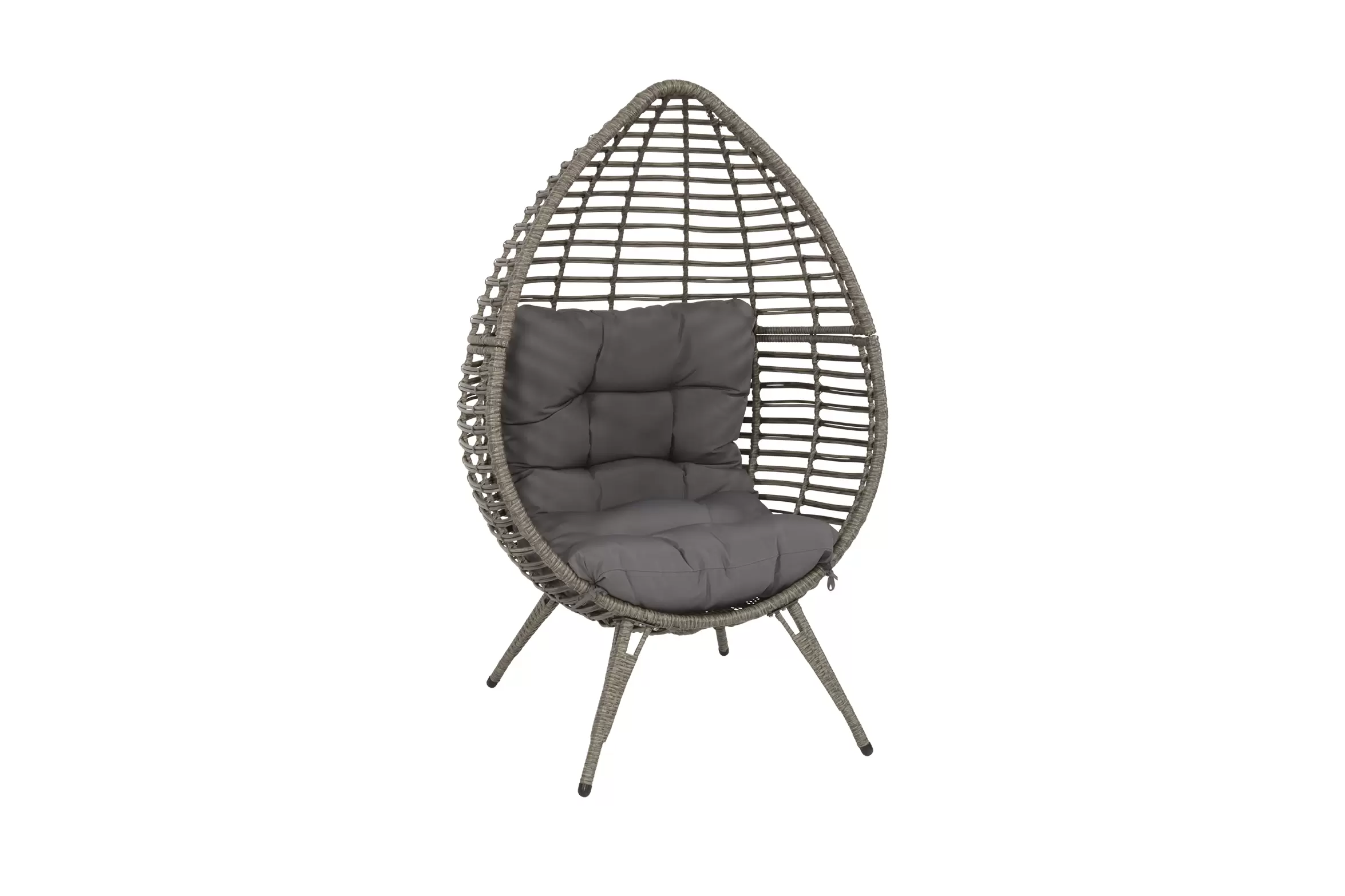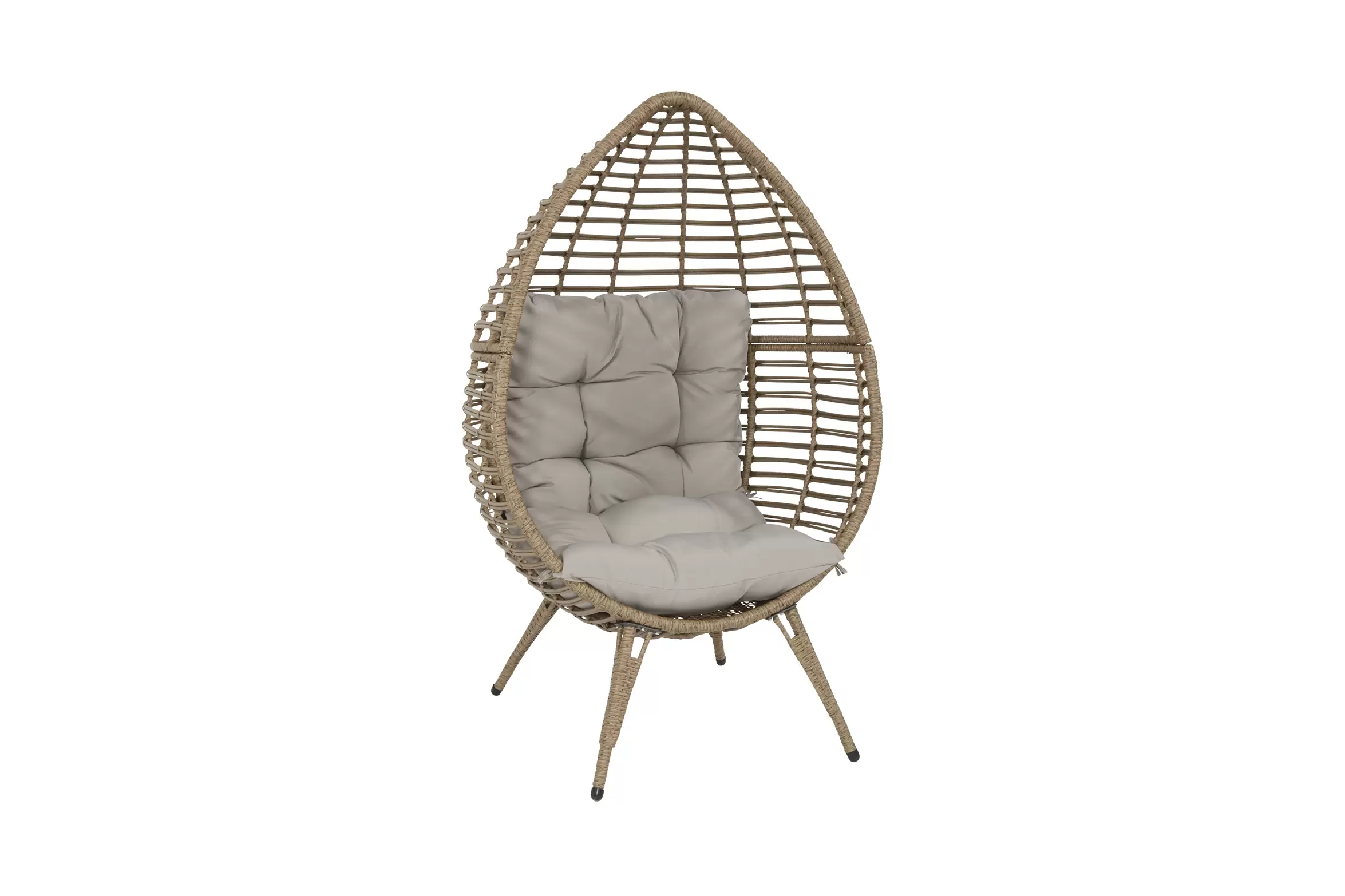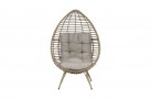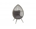Huśtawka 1-osobowa typu kokon na stalowym stelażu. Siedzisko oplecione technorattanem. Wygodna poduszka.