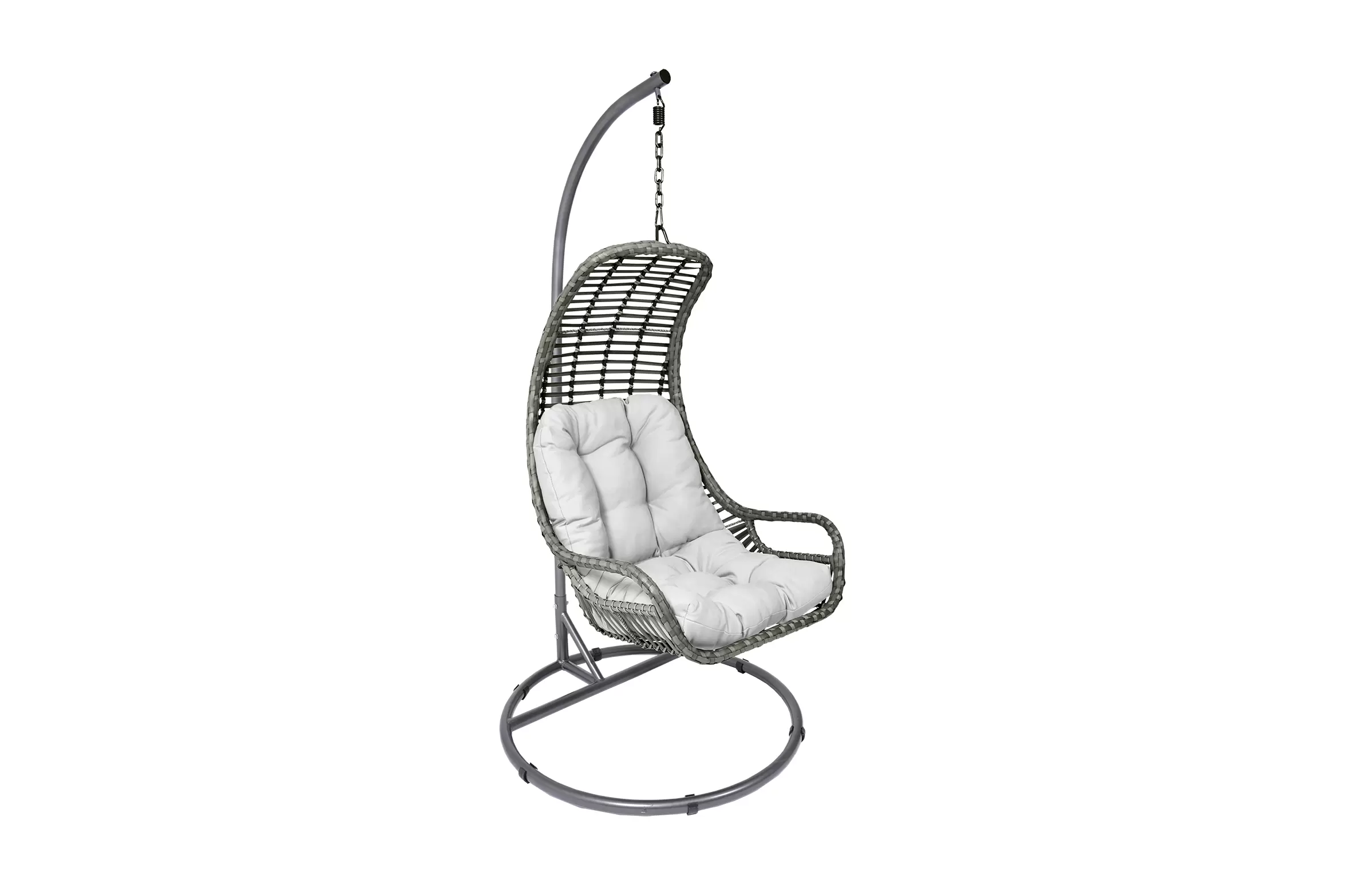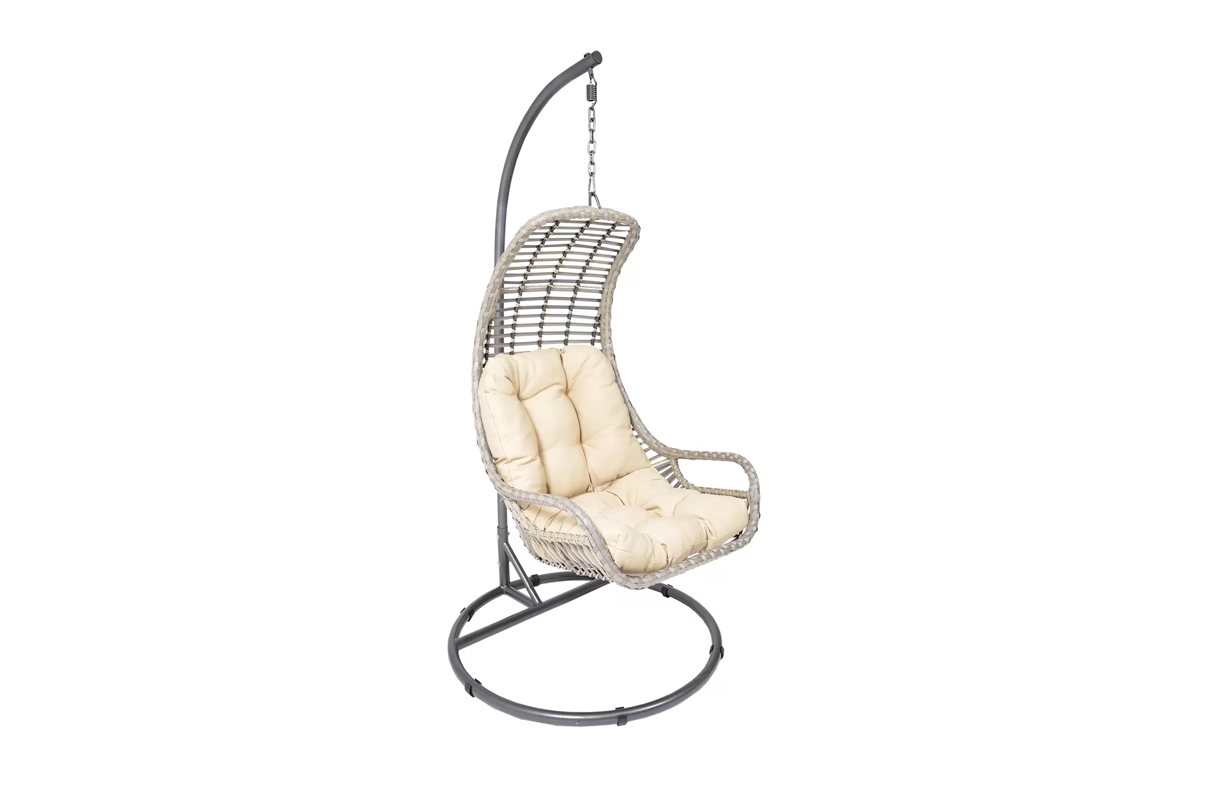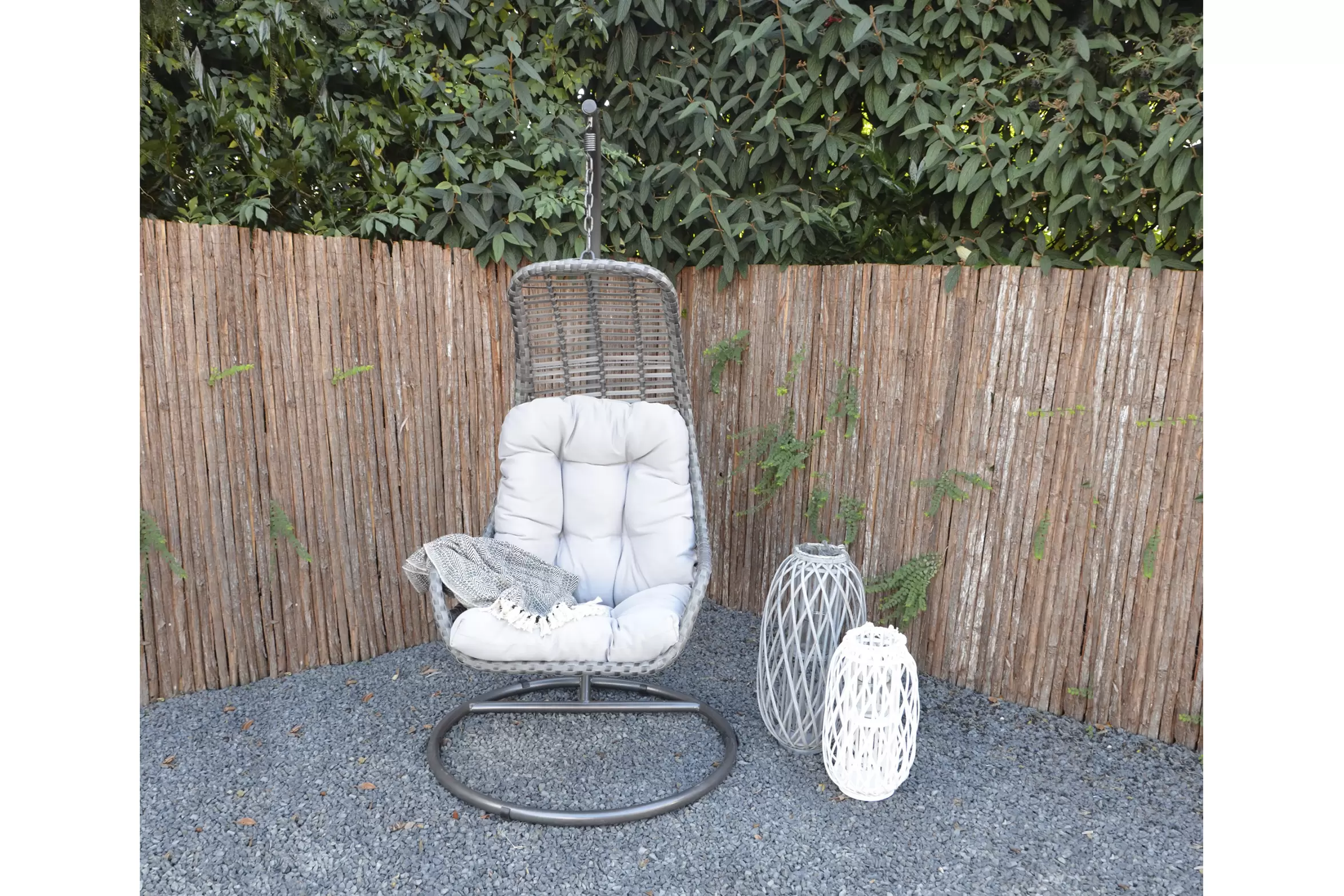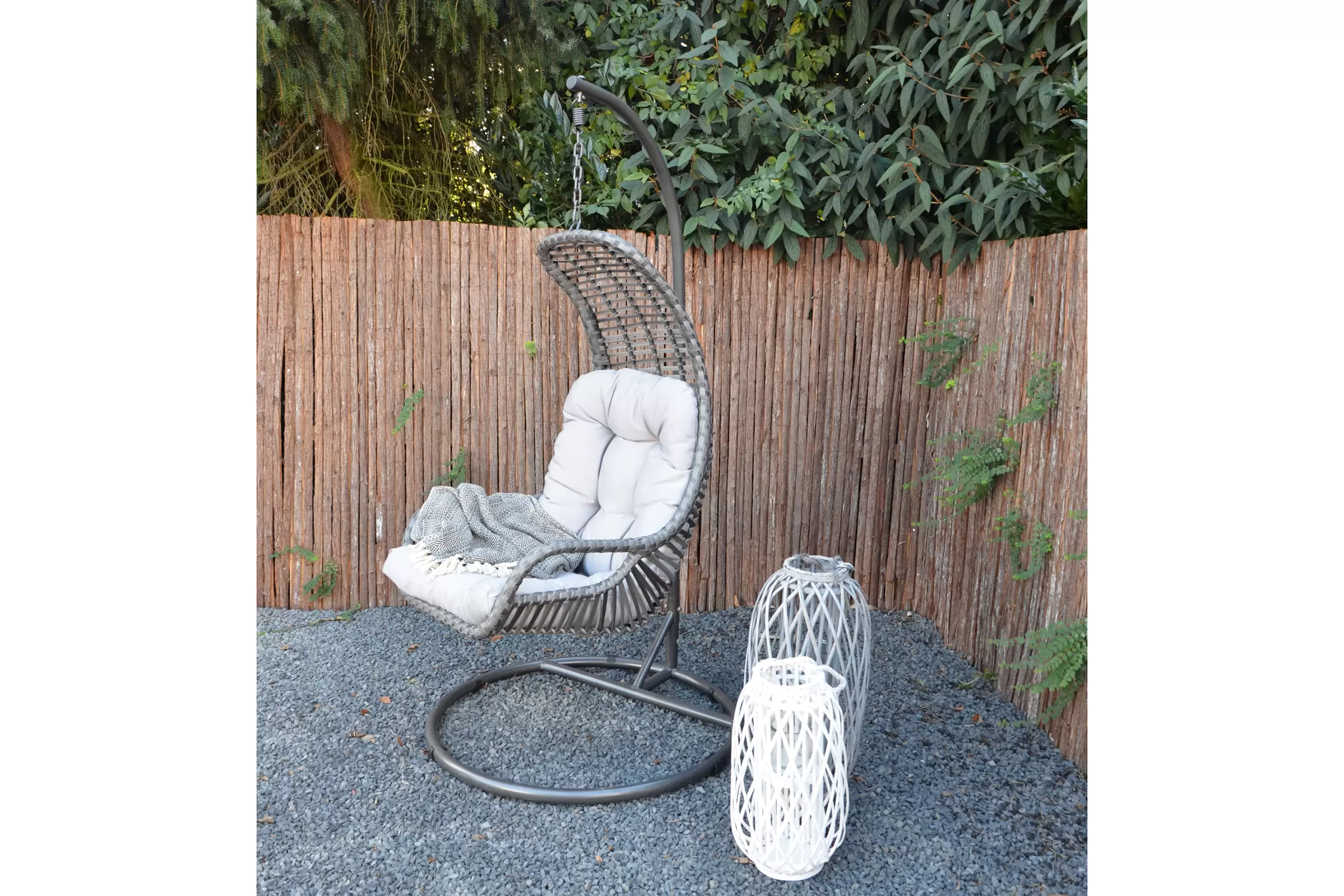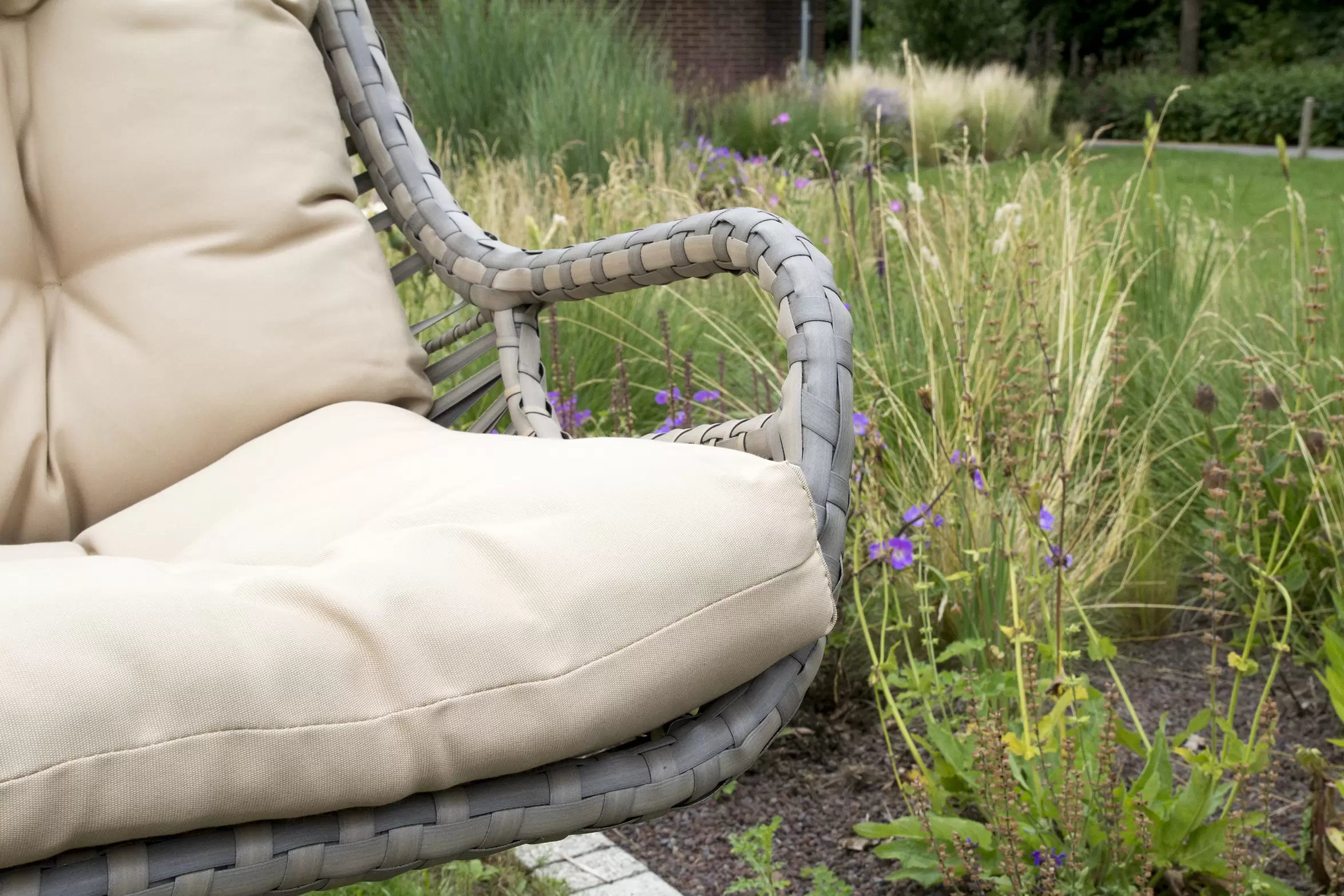 Huśtawka 1-osobowa typu kokon na stalowym stelażu. Siedzisko oplecione technorattanem. Wygodna poduszka.