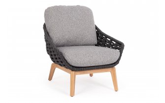 Łózko ogrodowe 2-osobowe z podstawą teakową / plecionka lina polipropylenowa TAMIRES poduszki Olefin Bizzotto
