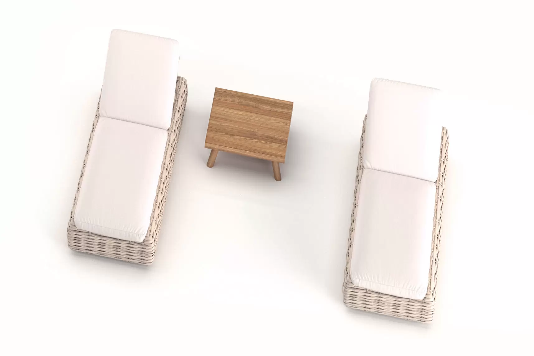 Konstrukcja aluminiowa malowana proszkowo. Całość opleciona technorattanem w kolorze beżowym o szerokości 20 mm. Materac posiada zdejmowane, wodoodporne poszewki z materiału Olefin szwajcarskiej produkcji, odporny na promieniowanie UV. Producent zaleca chronić materac przed intensywnym nasłonecznieniem.