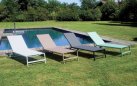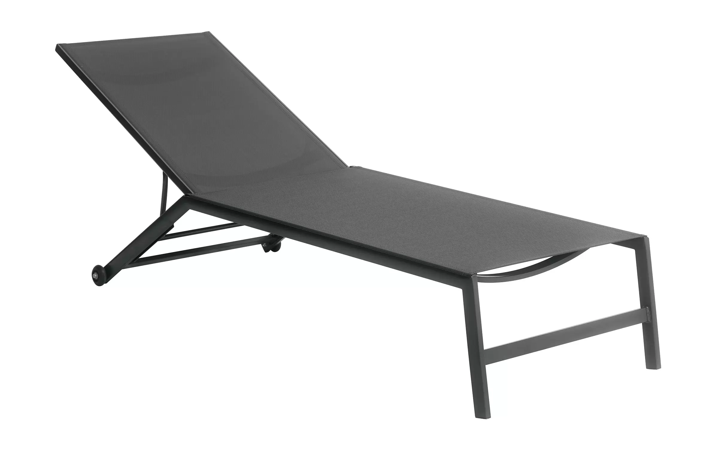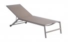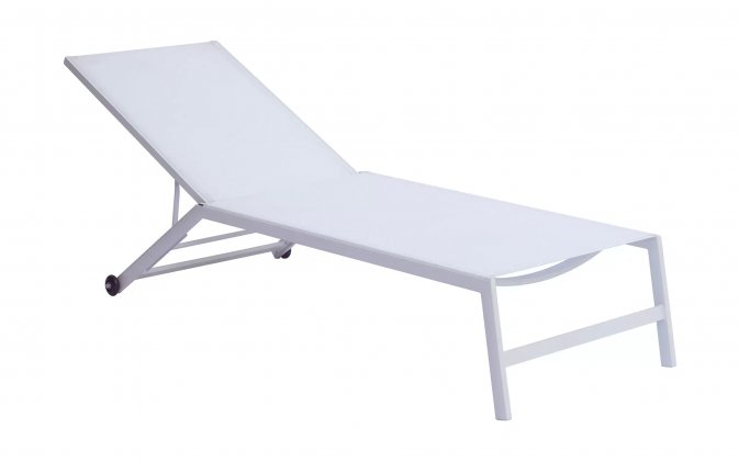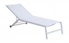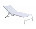 Leżak o konstrukcji aluminiowej dostępny w 4 kolorach z kółkami. Siedzisko z tekstyliny o gramaturze 600 gr.
