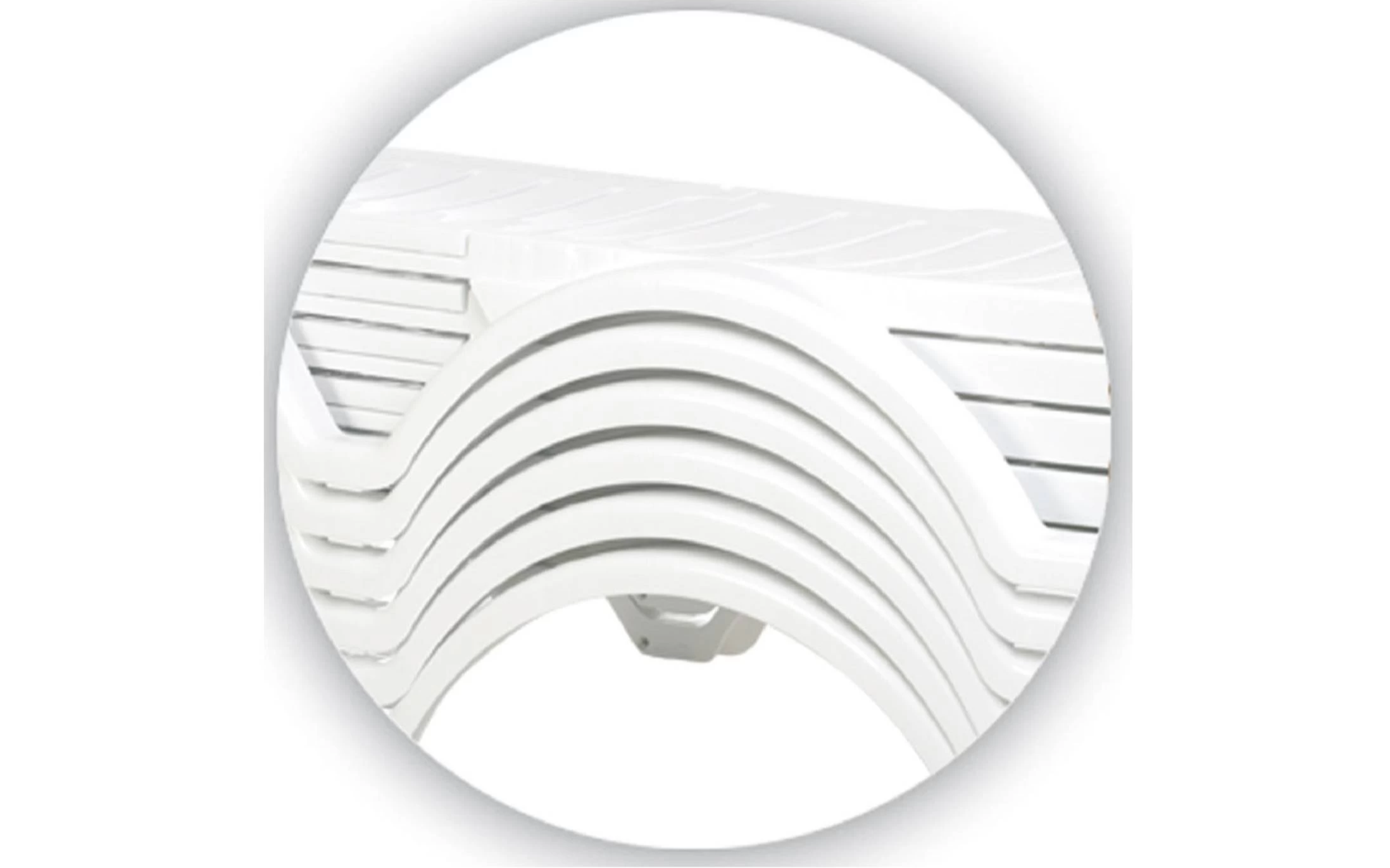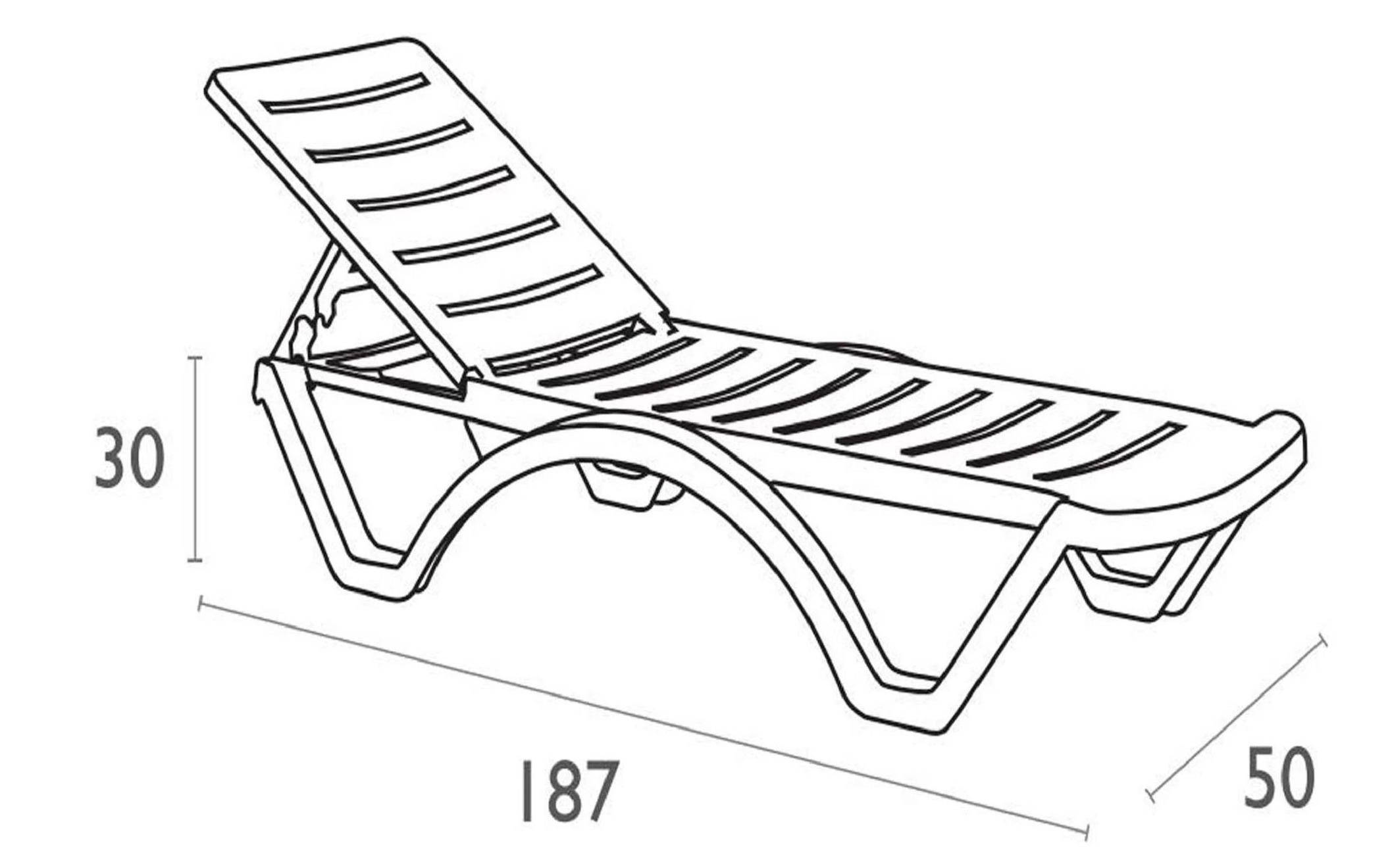 Oparcie można regulować w pięciu pozycjach, co pozwala na dobranie wygodnej pozycji. Szerokie nóżki zapewniają dobrą stabilność bez przechylania. Ponadto dwa niewidoczne koła zapewniają łatwy transport, dzięki czemu można łatwo przestawiać leżak! Siedziska są wykonane z tworzywa sztucznego odporne na warunki atmosferyczne. Leżak BAHAMA można układać w stos.