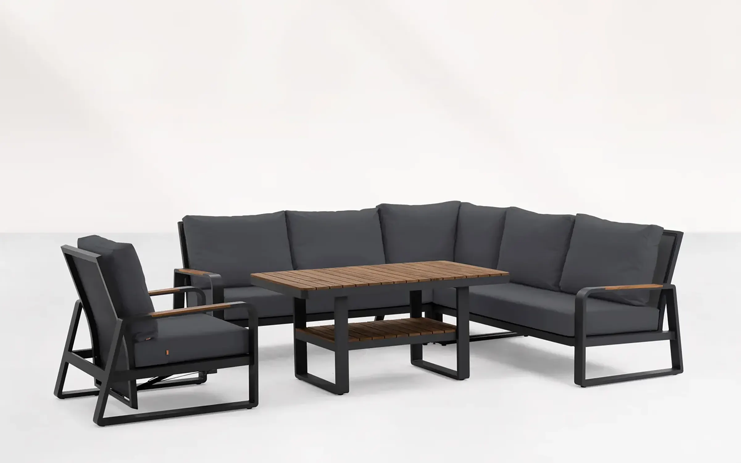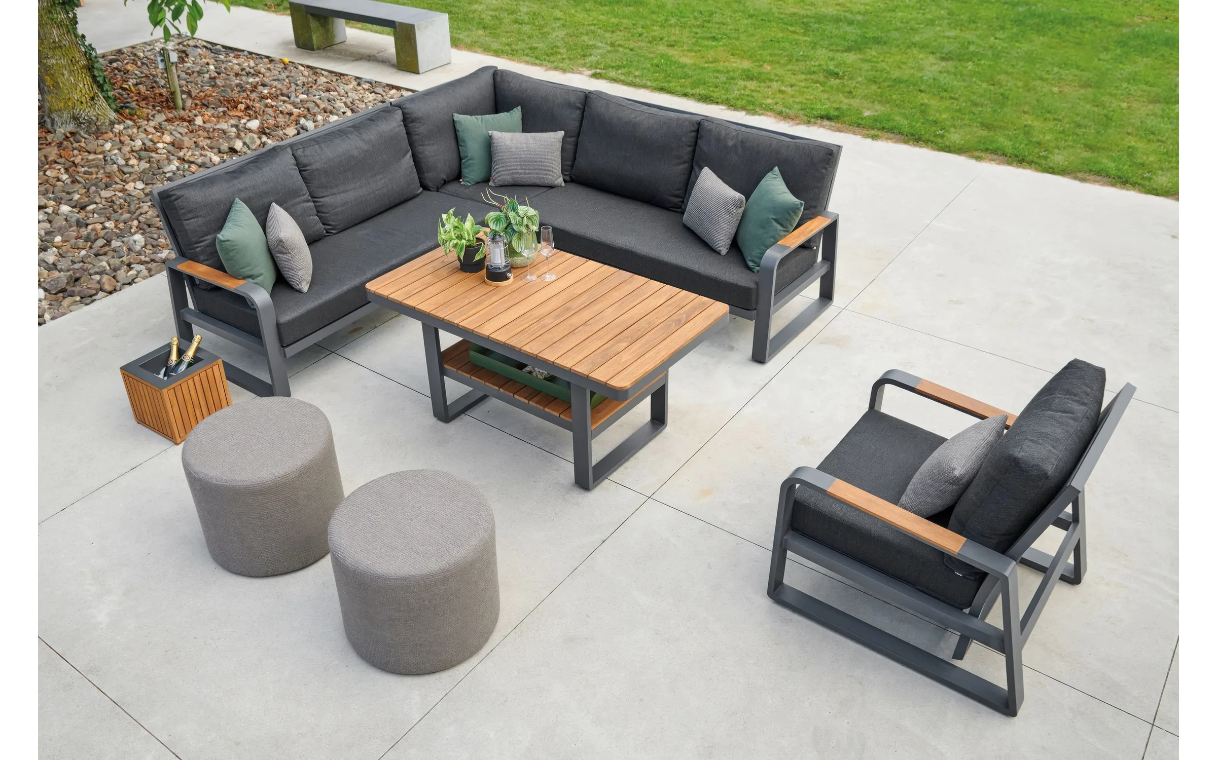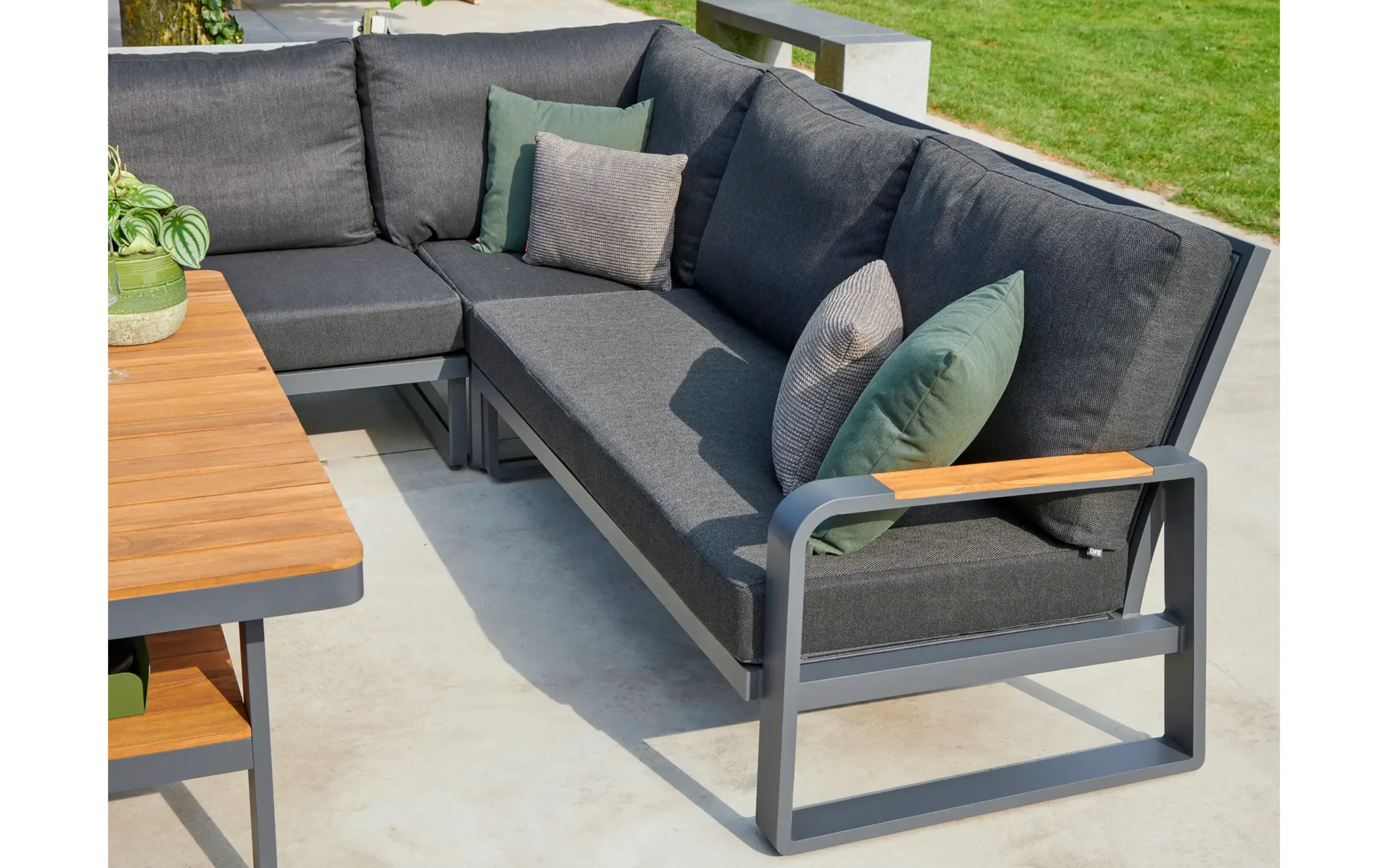 Aluminiowy narożnik ogrodowy wypoczynkowy z akcentami teak MONTANA
