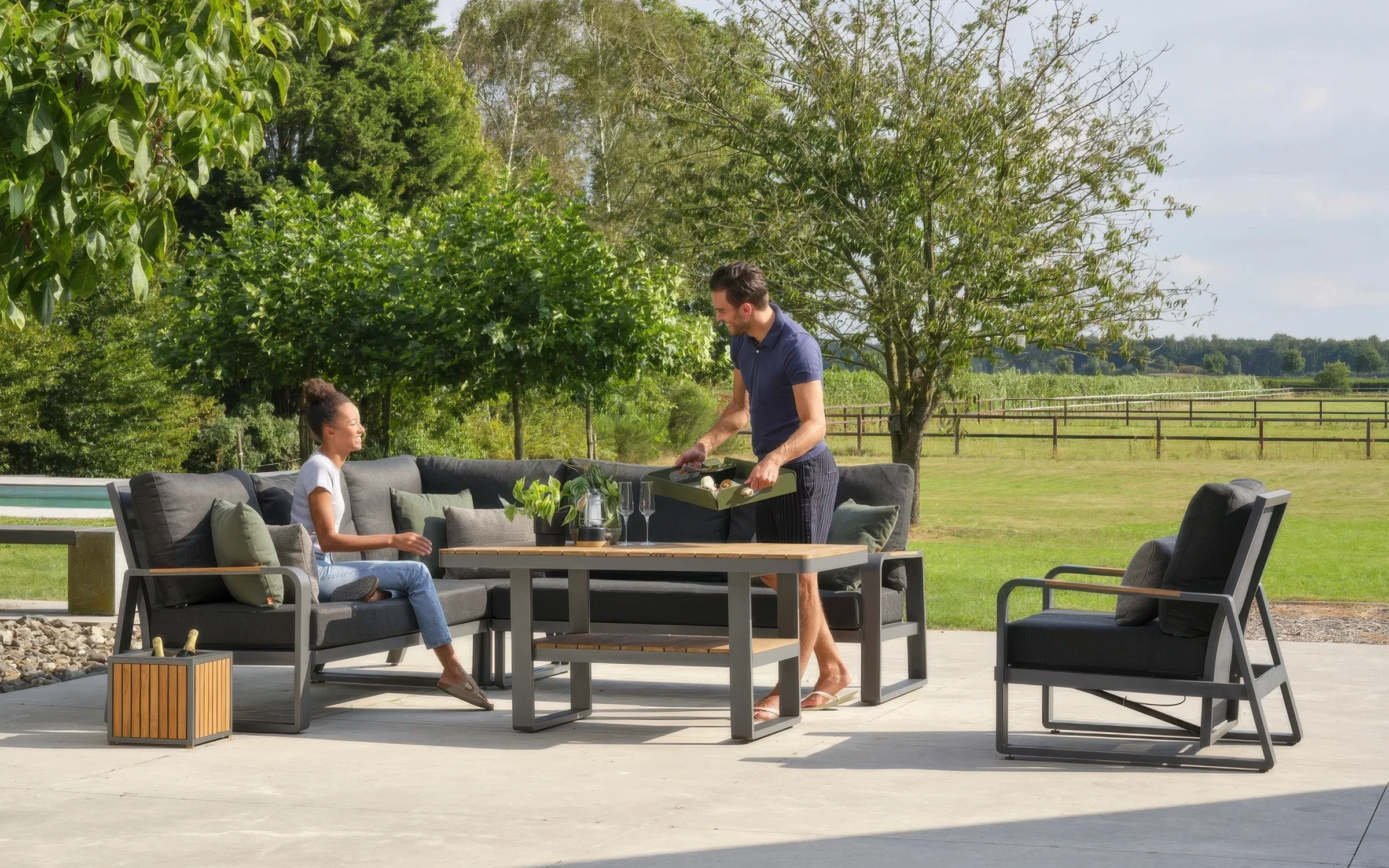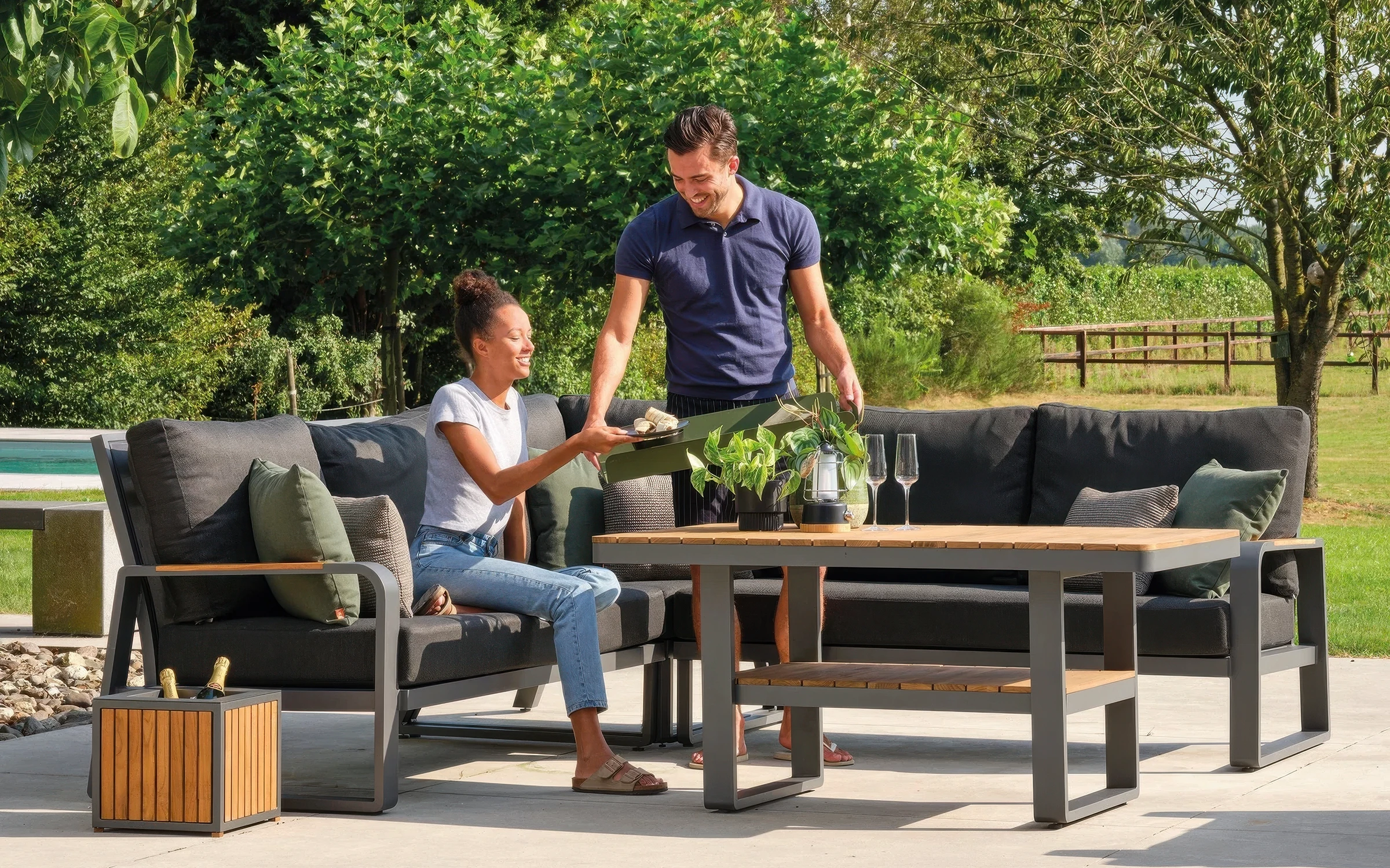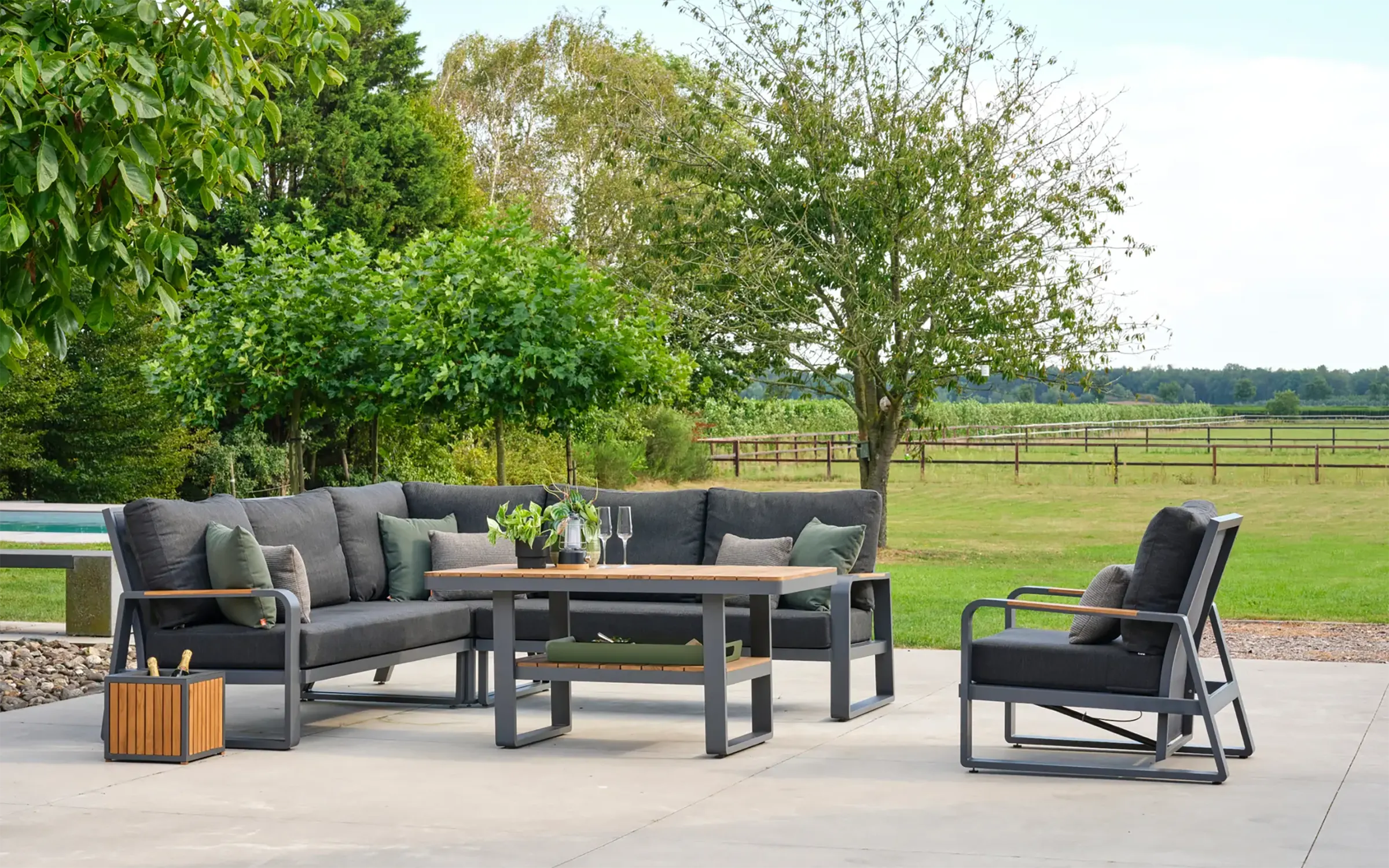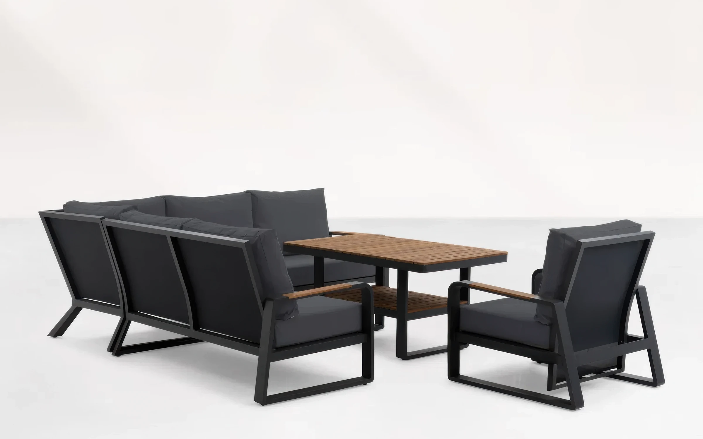 Aluminiowy narożnik ogrodowy wypoczynkowy z akcentami teak MONTANA