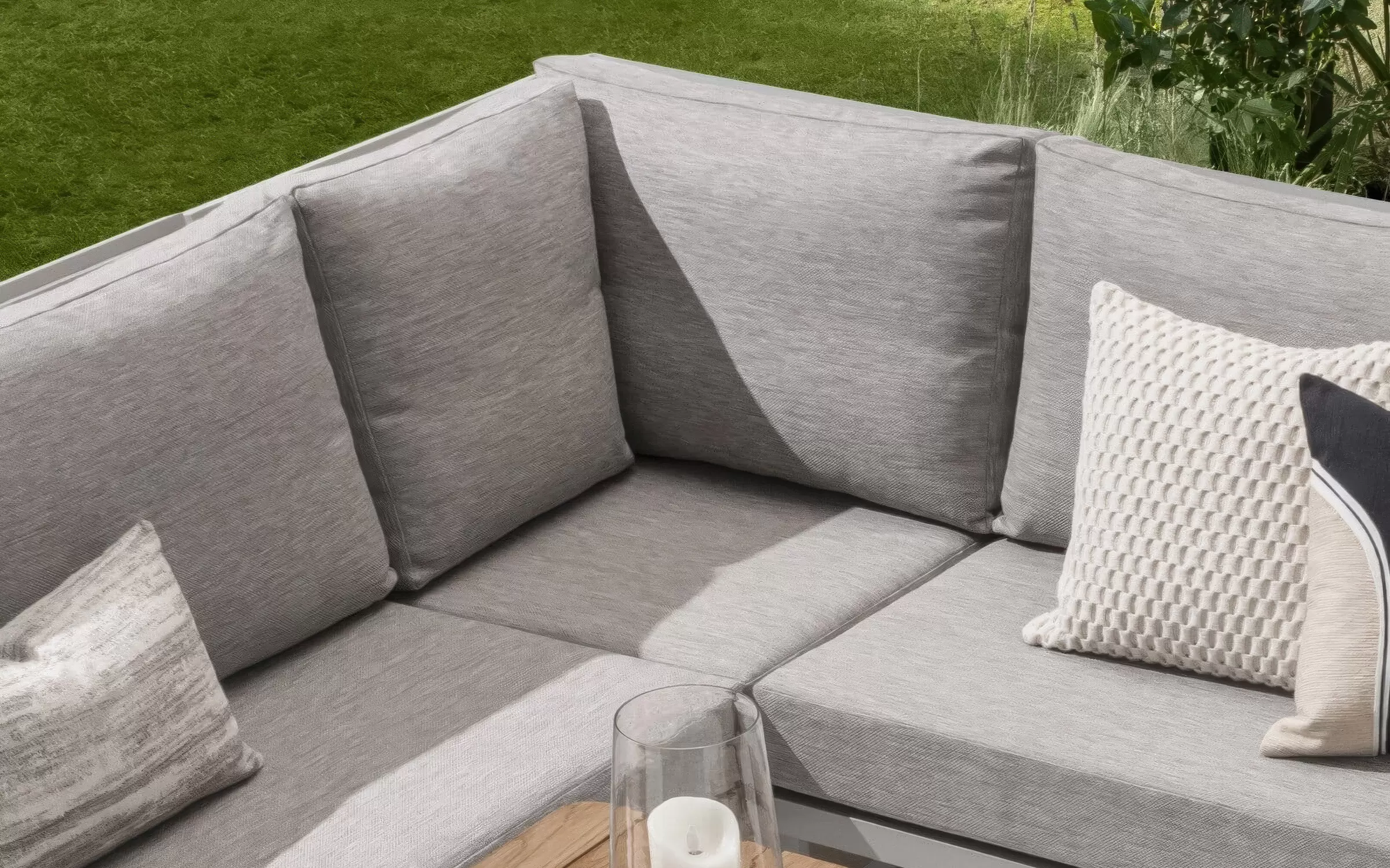 Pokrowce na poduszki są wykonane z tkaniny Comforma, która składa się z nici olefinowych. Materiał ten jest przyjemny w dotyku i przypomina tkaniny stosowane we wnętrzach, ale jednocześnie charakteryzuje się właściwościami, które umożliwiają jego użytkowanie na zewnątrz w każdych warunkach pogodowych. Pokrowce można prać w pralce w temperaturze 30 stopni, używając niewielkiej ilości detergentu.