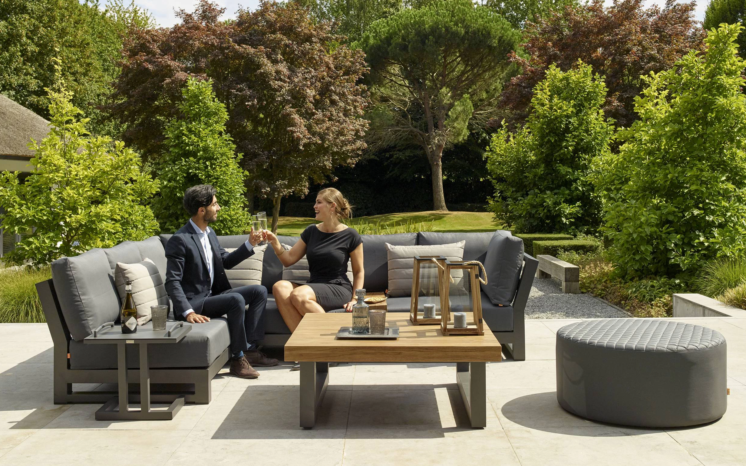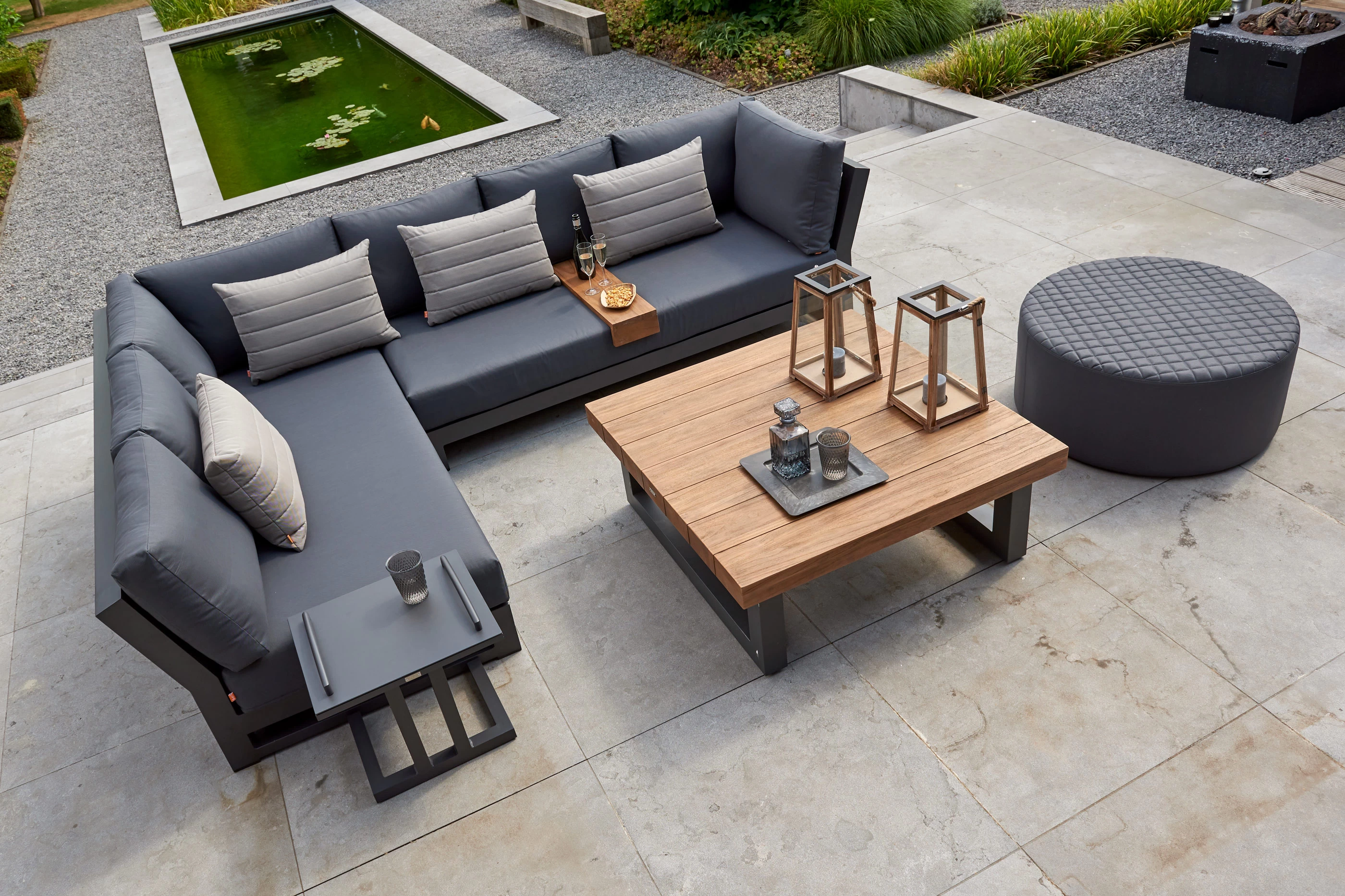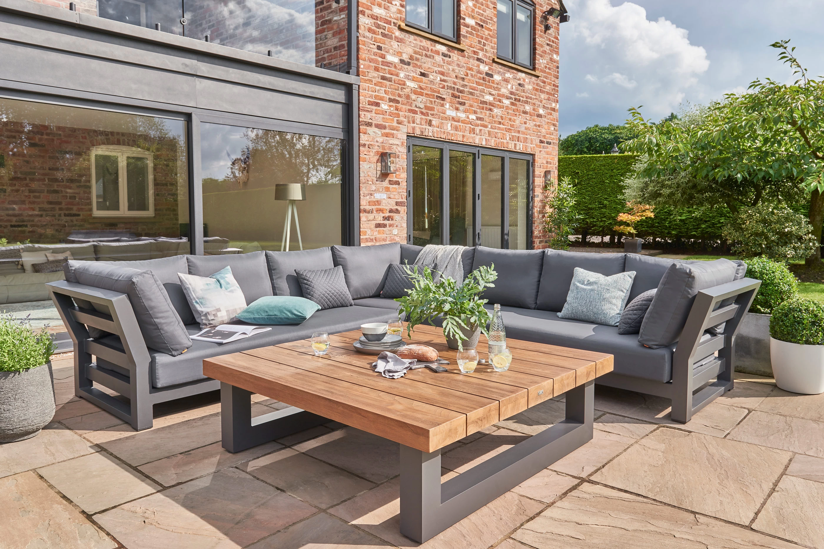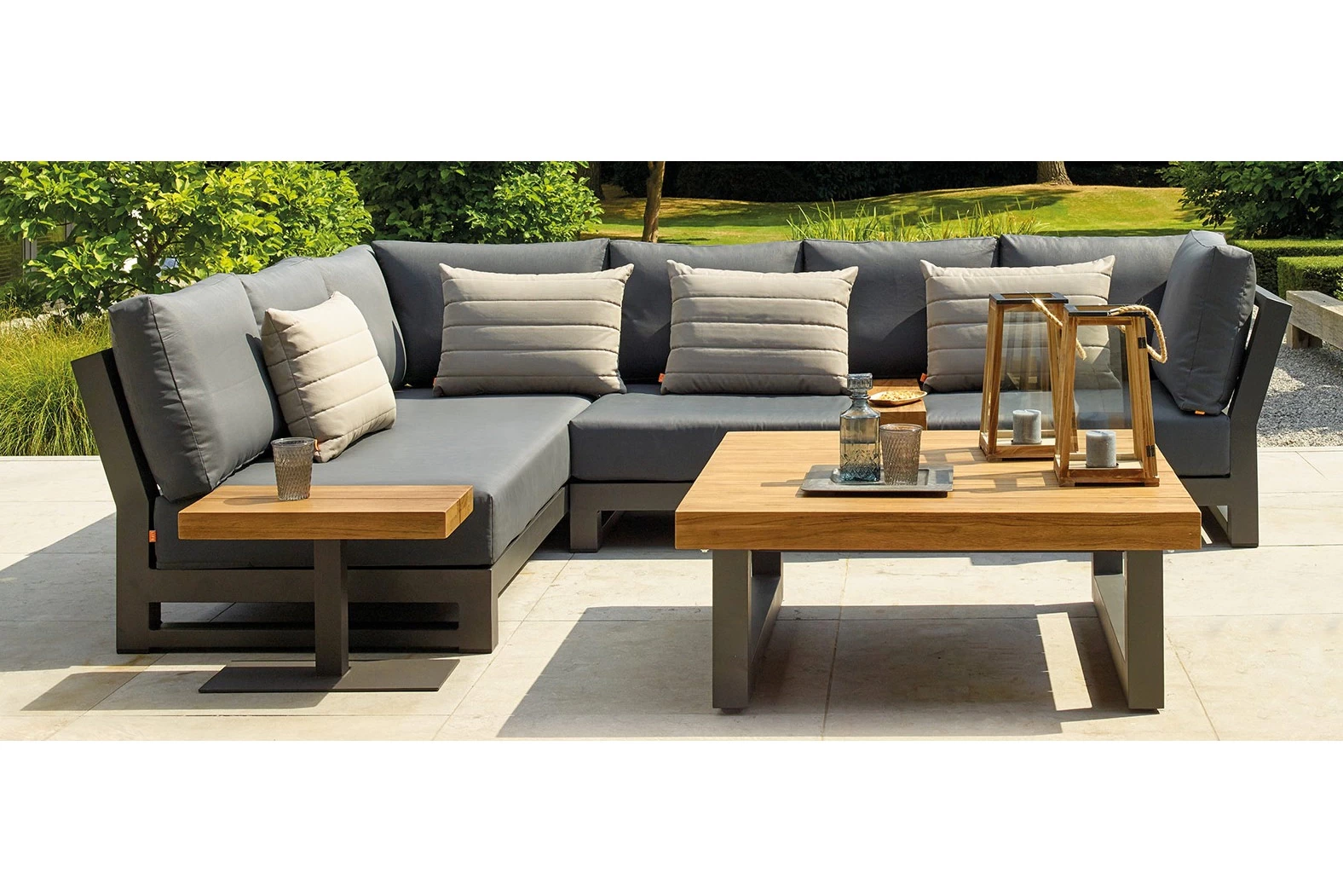 NEVADA Narożnik aluminiowy ze stolikiem blat teak
